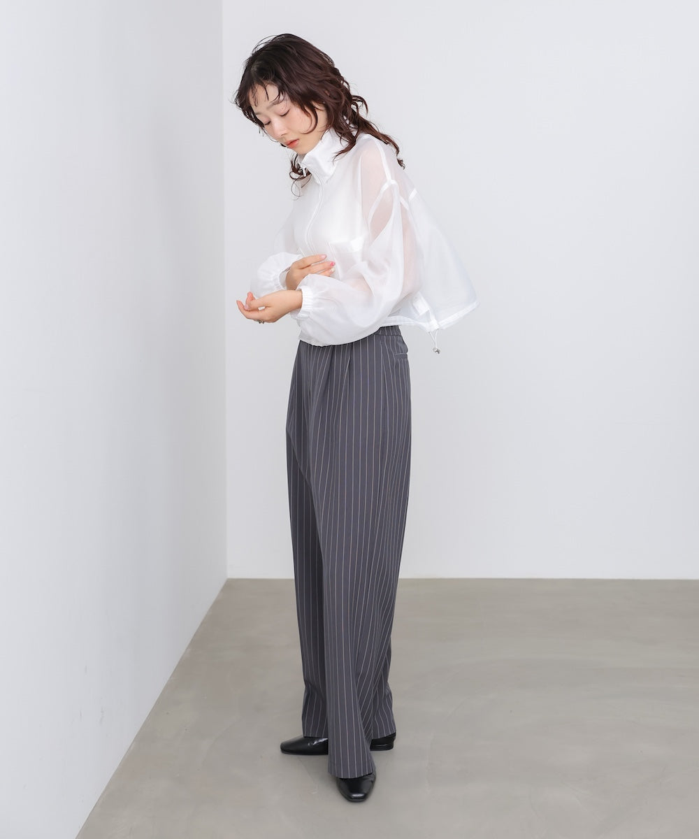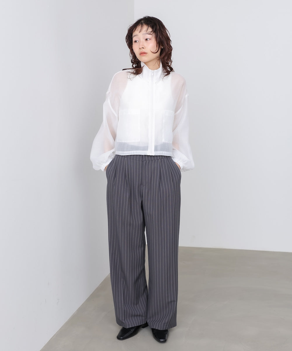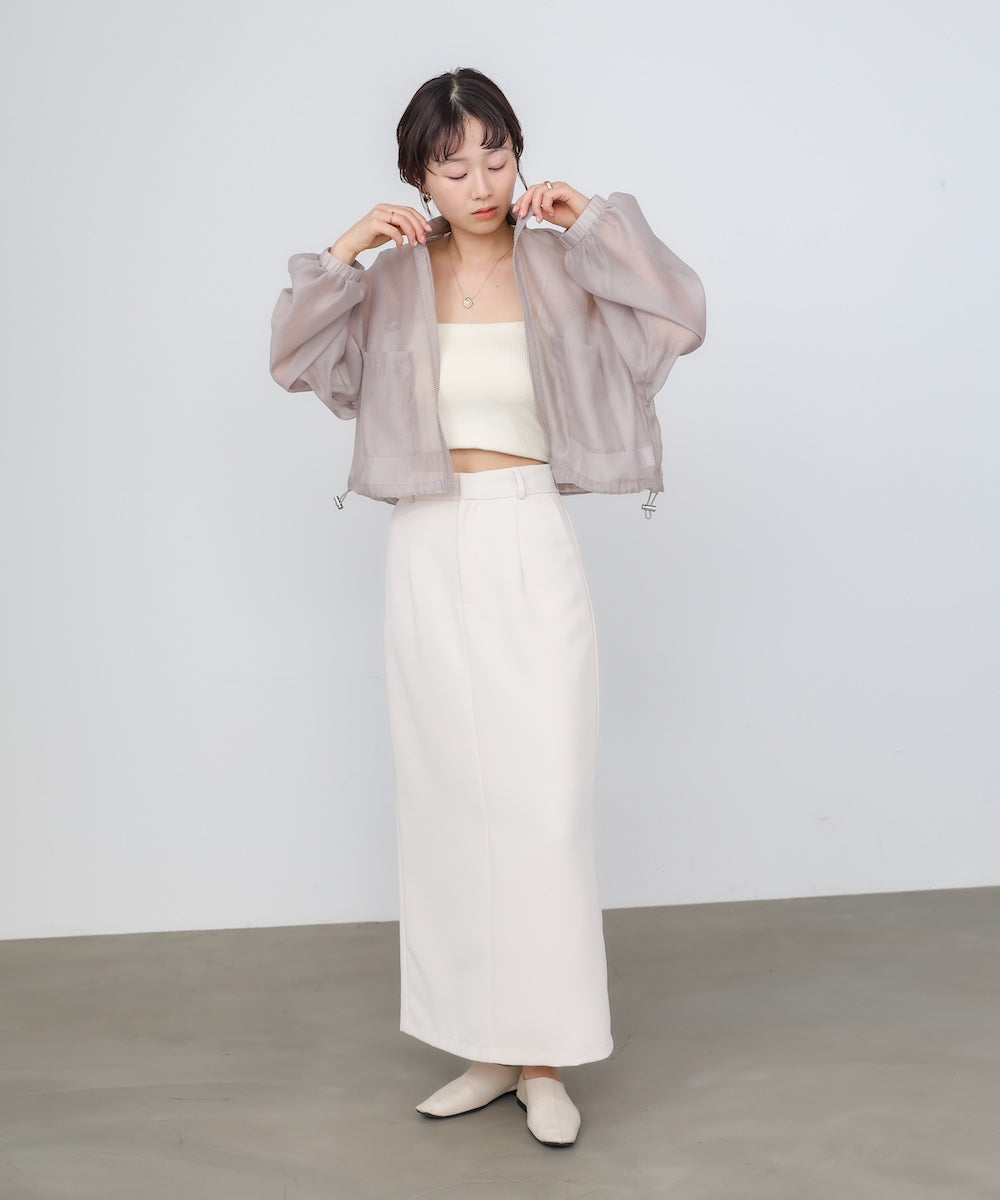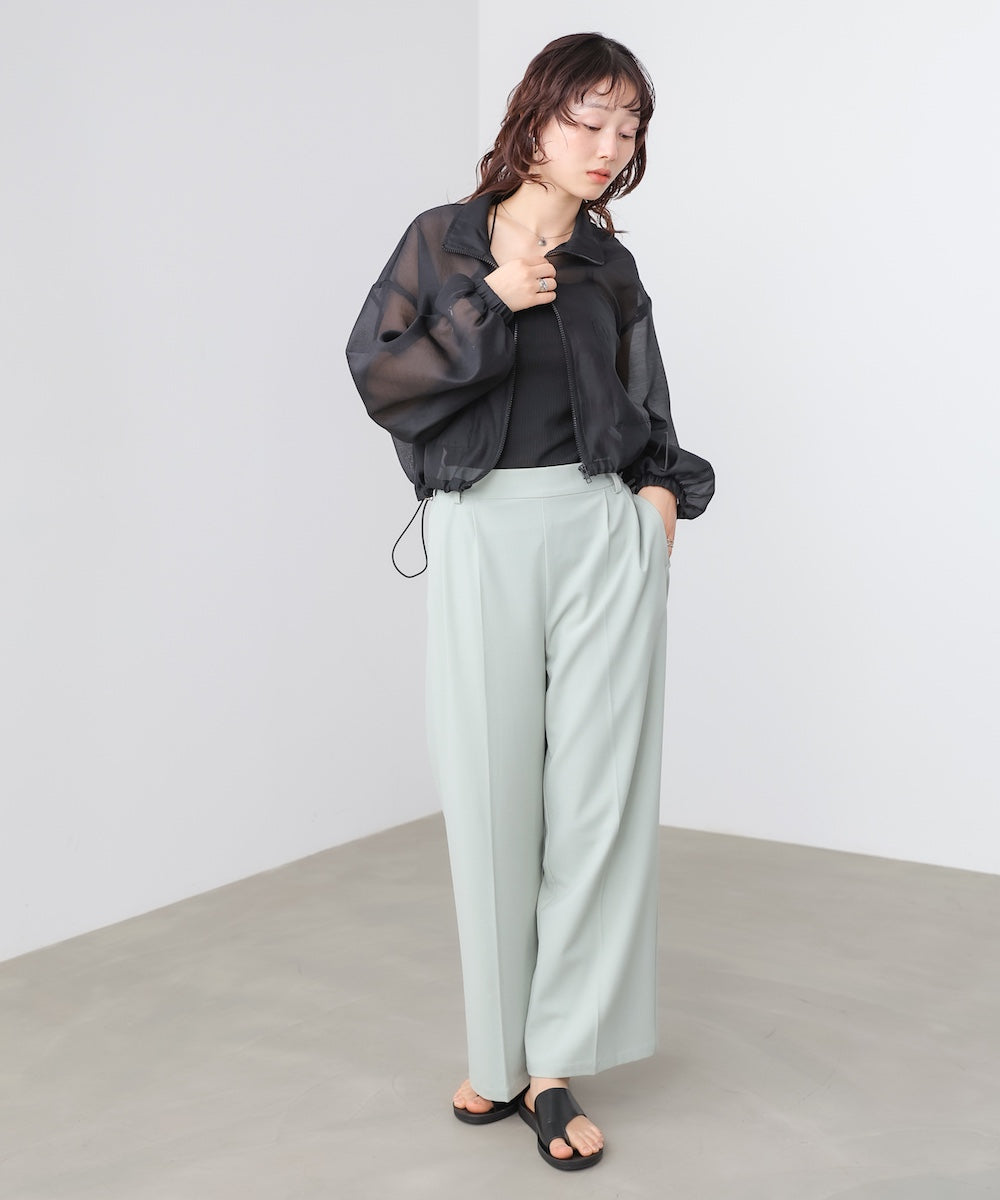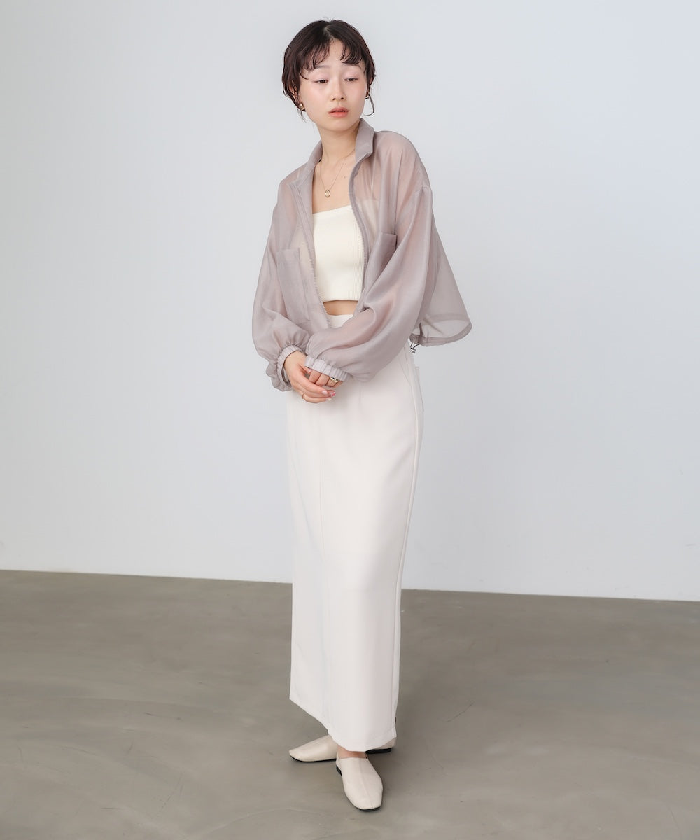 軽やかな透け感が魅力の、スタンド襟シアーブルゾン。ほんのりシアーな素材が抜け感を演出し、羽織るだけで旬なスタイルに仕上がる1枚です。コンパクトな丈感でバランスが取りやすく、ワンピースにもパンツにも好相性。アイボリーは柔らかく女性らしく、グレージュはニュアンス感たっぷりに、ブラックはシックで大人っぽい印象に。