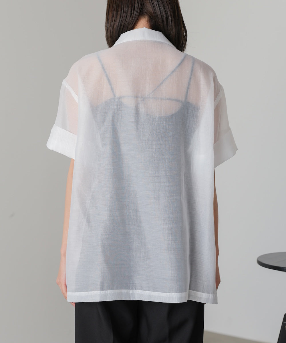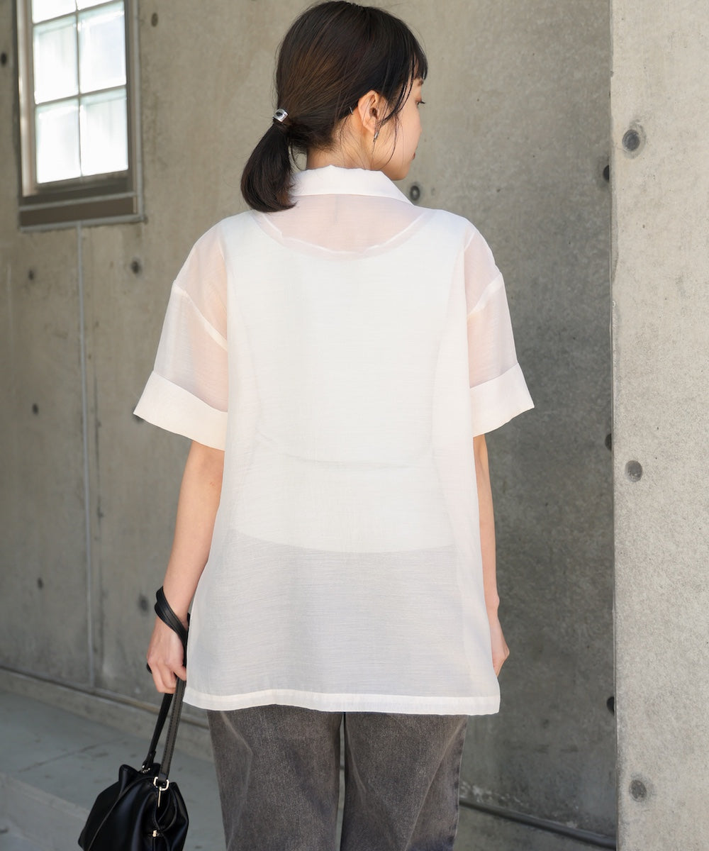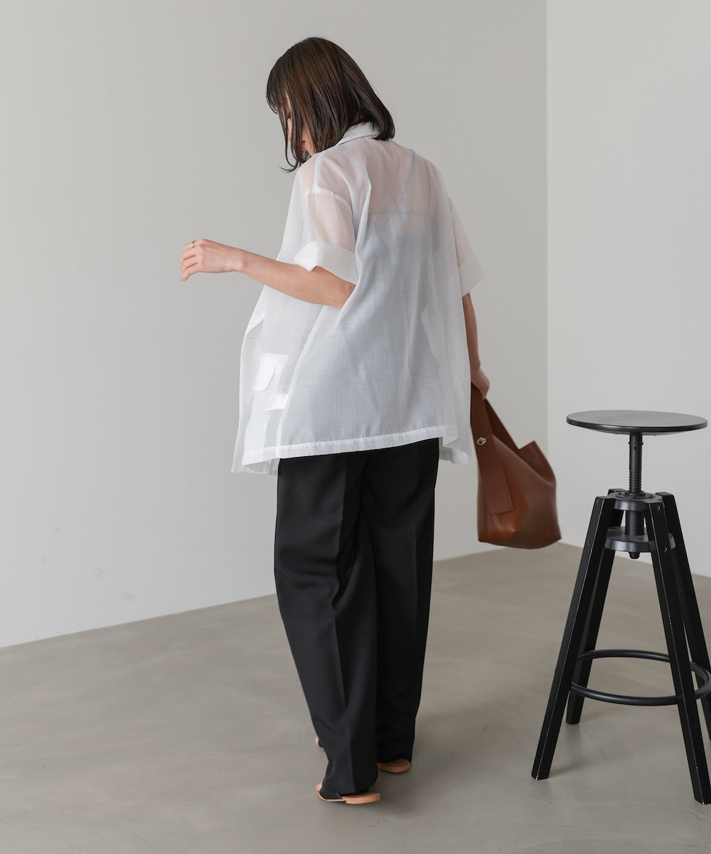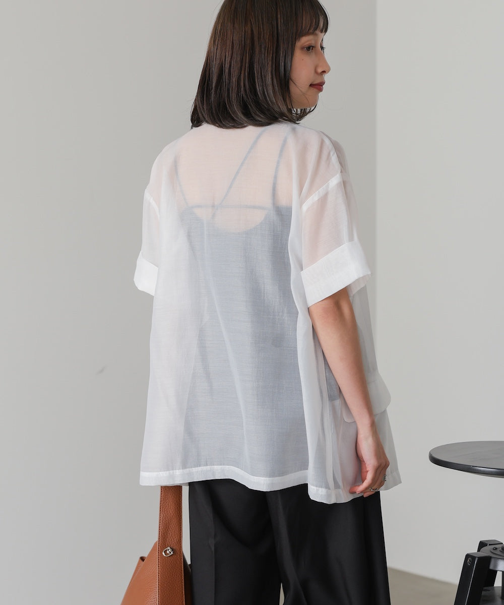 ポリエステル100%の軽やかでさらりとしたシアー素材を使用。通気性が良く、夏でも快適に羽織れる涼しげな着心地です。シワになりにくく、デイリー使いしやすいのも嬉しいポイント。
