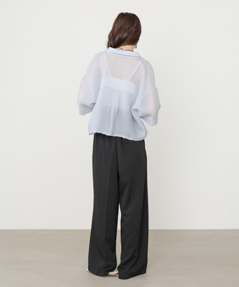 さらっと軽やかな素材感で、夏でも快適な履き心地。程よい落ち感とストレッチ性があり、動きやすさも◎