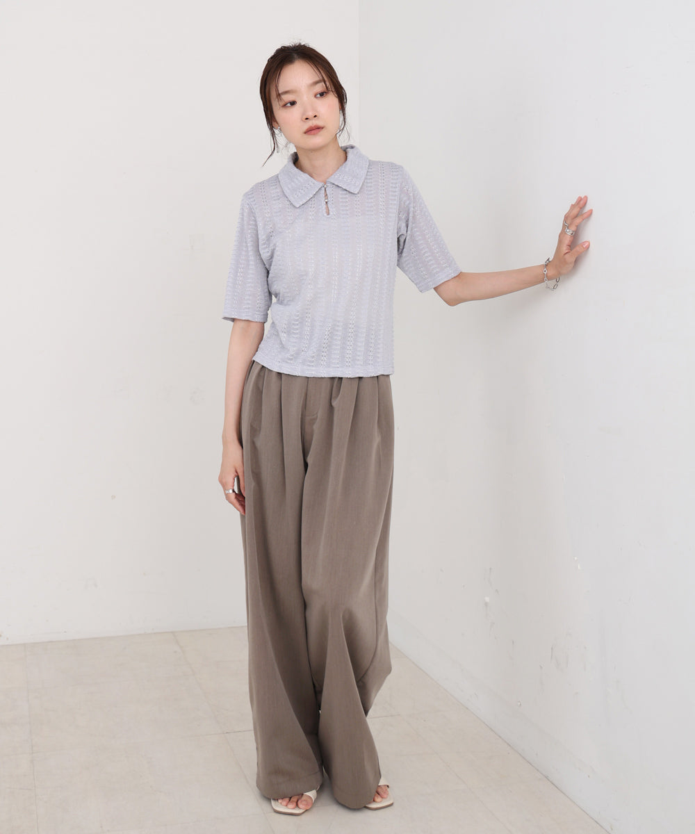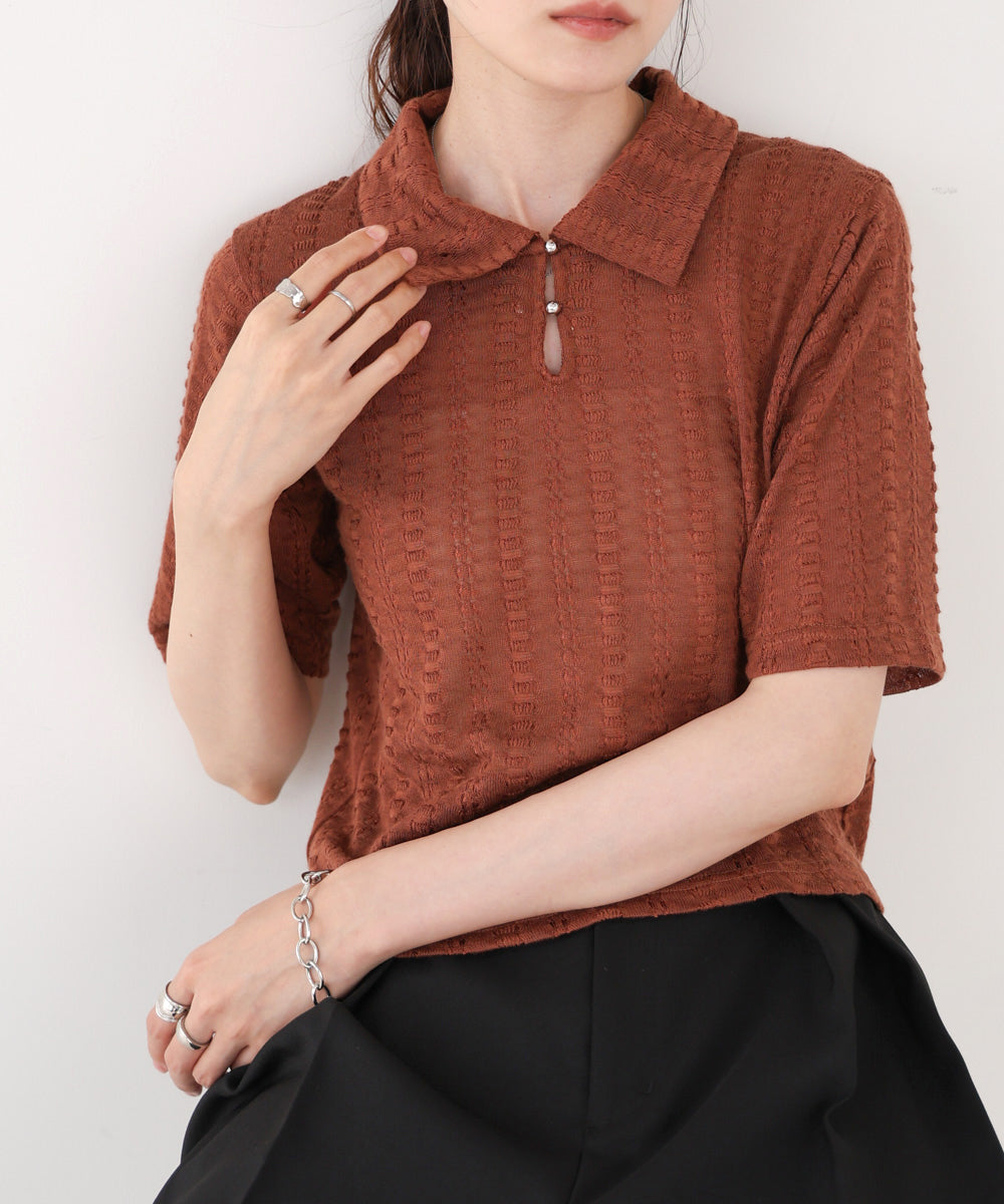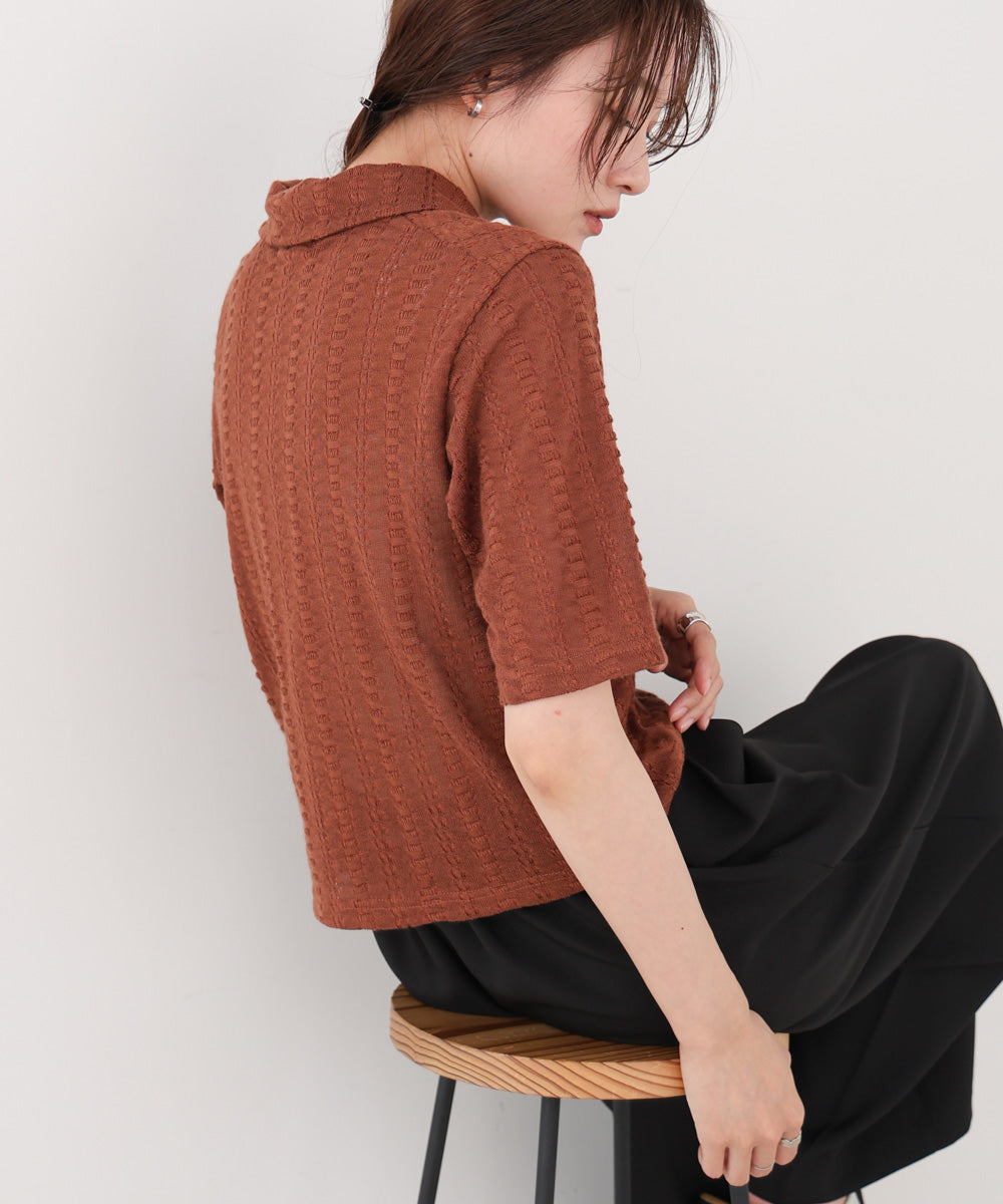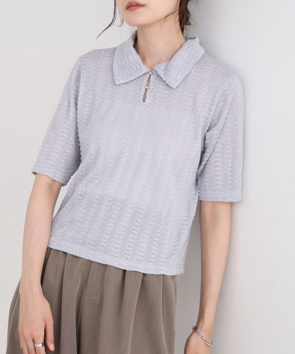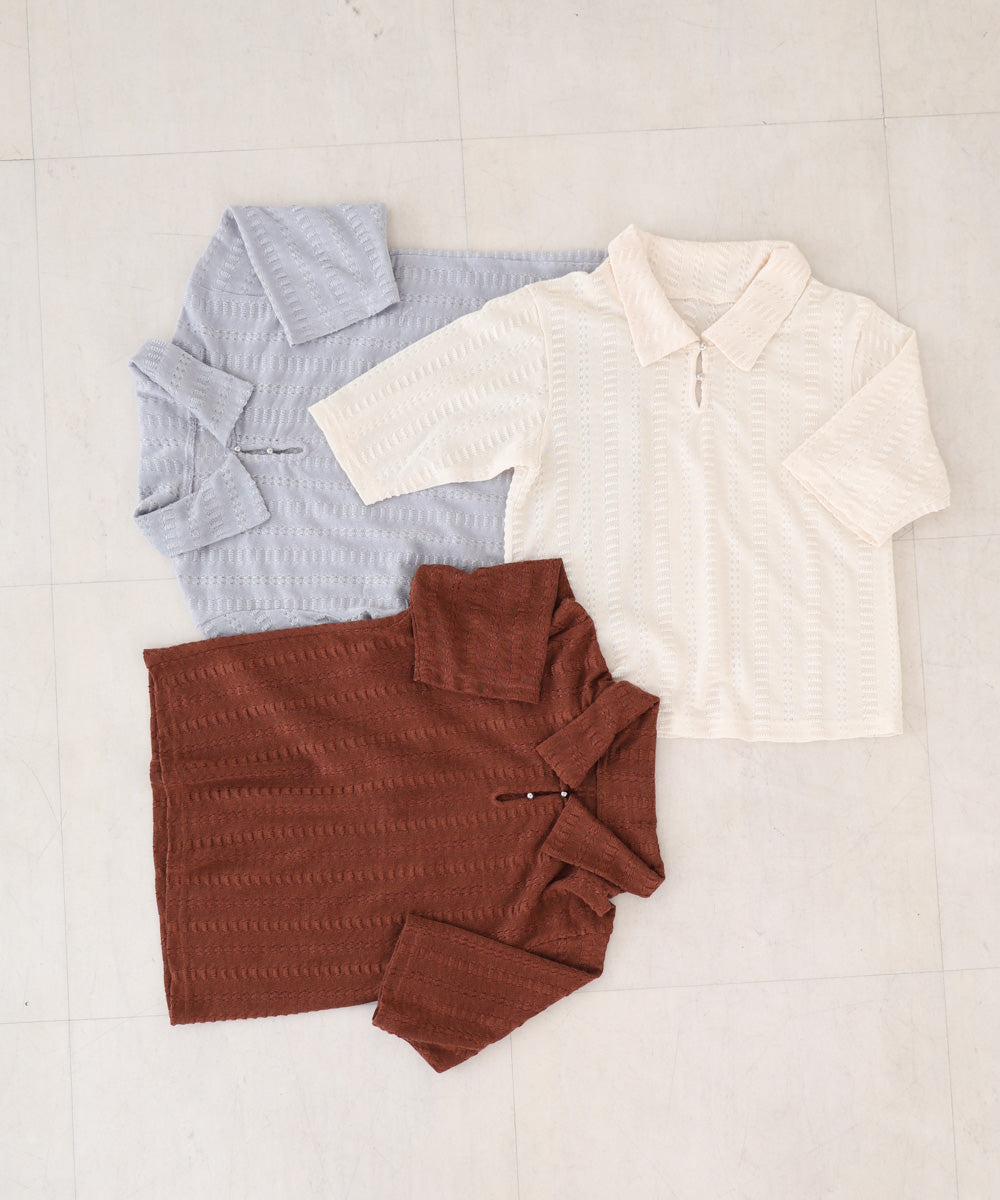 繊細なカットレースが女性らしさを引き立てつつ、襟付きデザインとフロントボタンが上品な印象をプラス。首元のボタンは3つ並びで、開け閉めで雰囲気の変化も楽しめます。また、縦にラインが施されているので自然なスタイルアップがかないます。オフィスカジュアルにもお出かけコーデにもどちらにも取り入れていただけるデザインに仕上がりました。