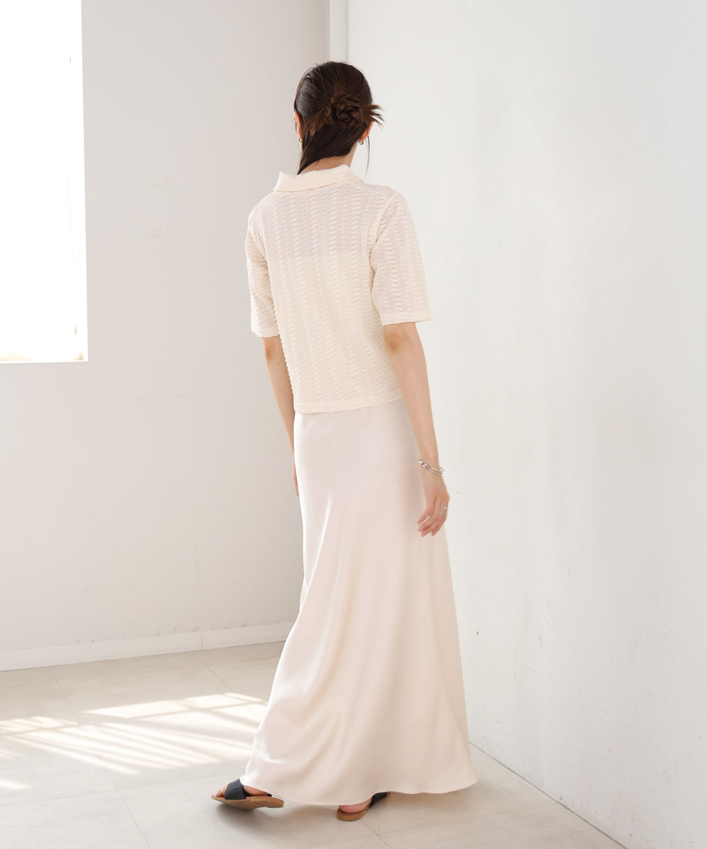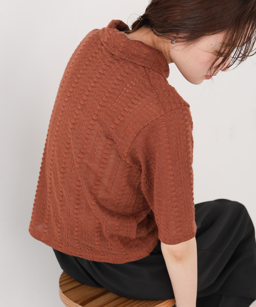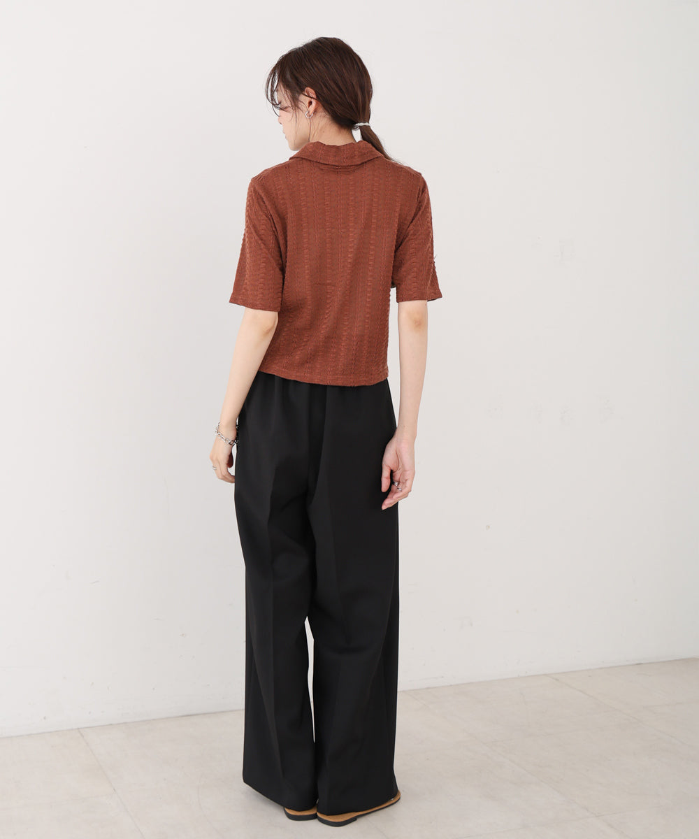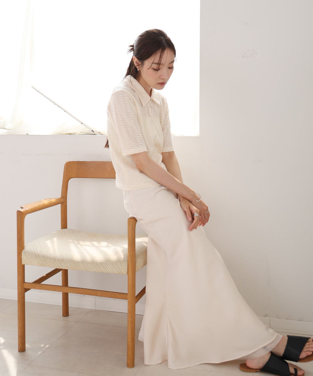繊細なカットレースが女性らしさを引き立てつつ、襟付きデザインとフロントボタンが上品な印象をプラス。首元のボタンは3つ並びで、開け閉めで雰囲気の変化も楽しめます。また、縦にラインが施されているので自然なスタイルアップがかないます。オフィスカジュアルにもお出かけコーデにもどちらにも取り入れていただけるデザインに仕上がりました。