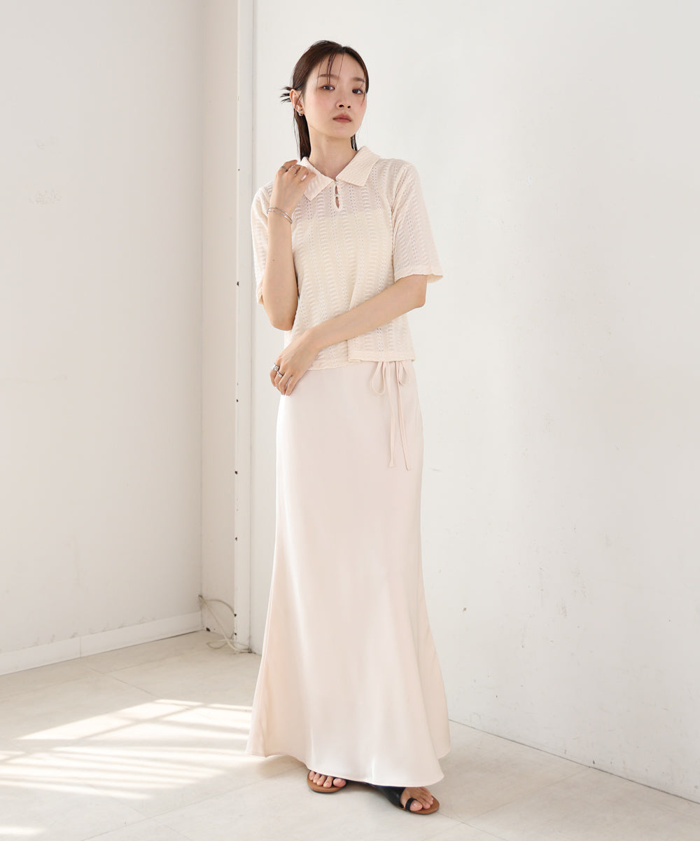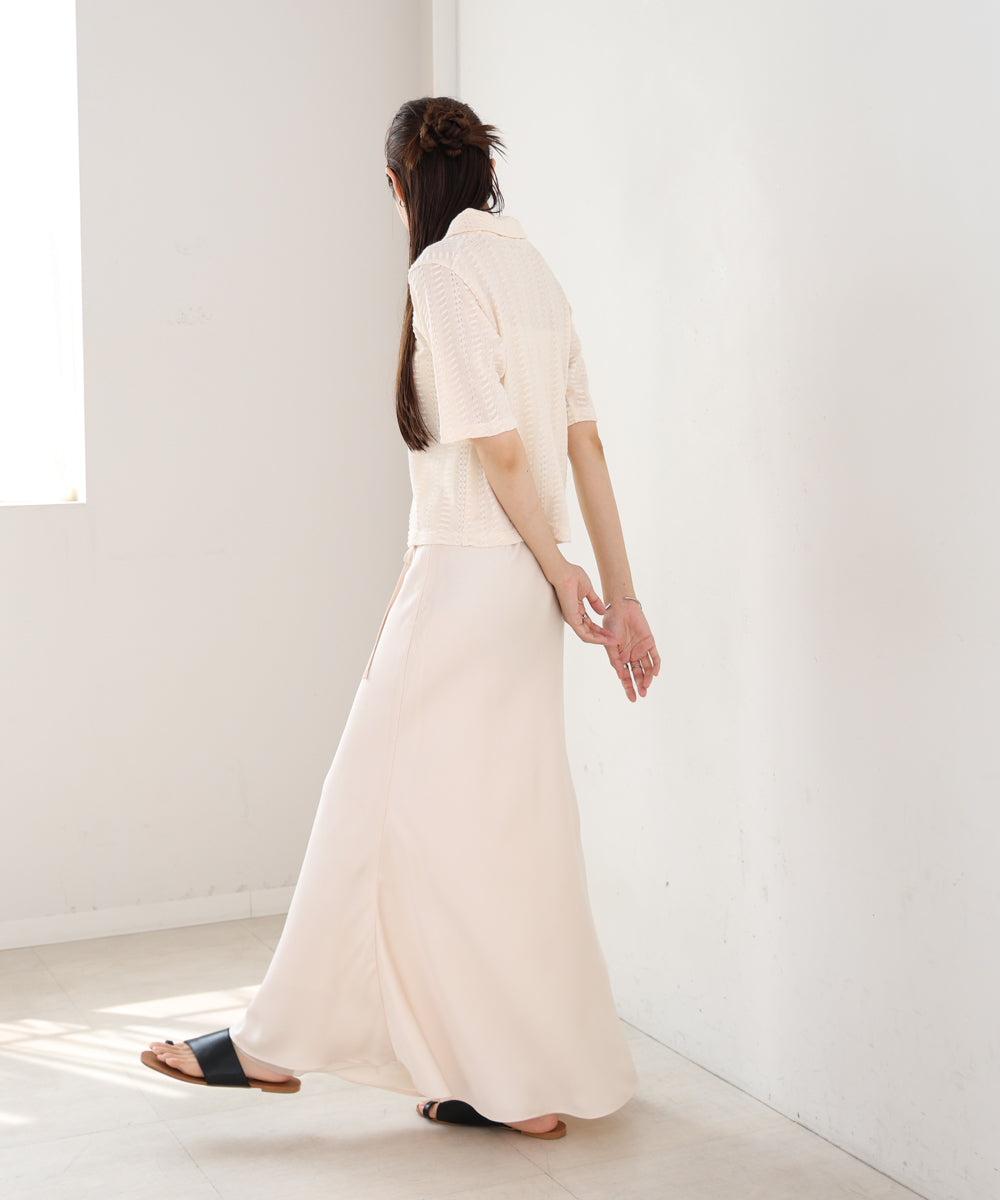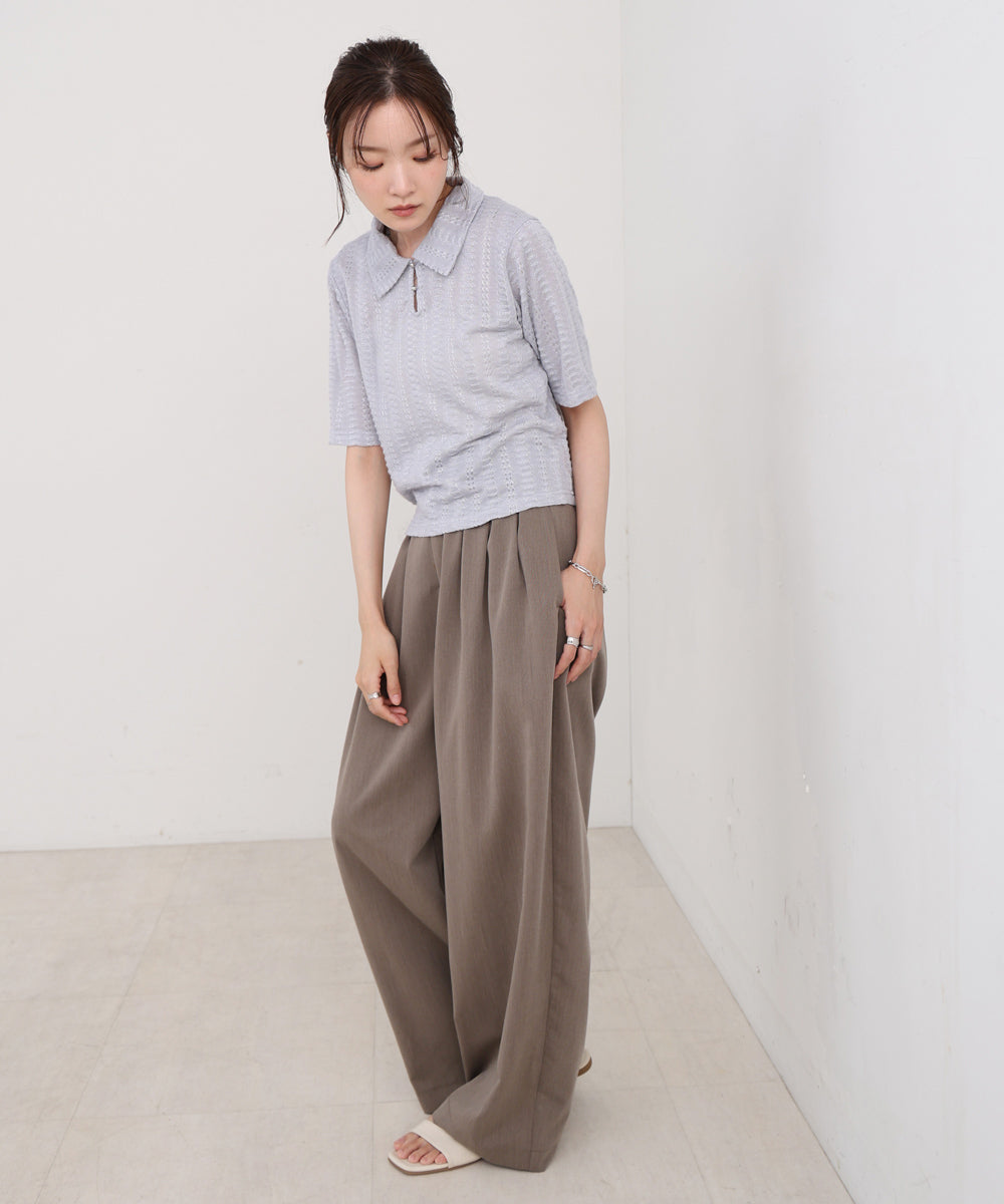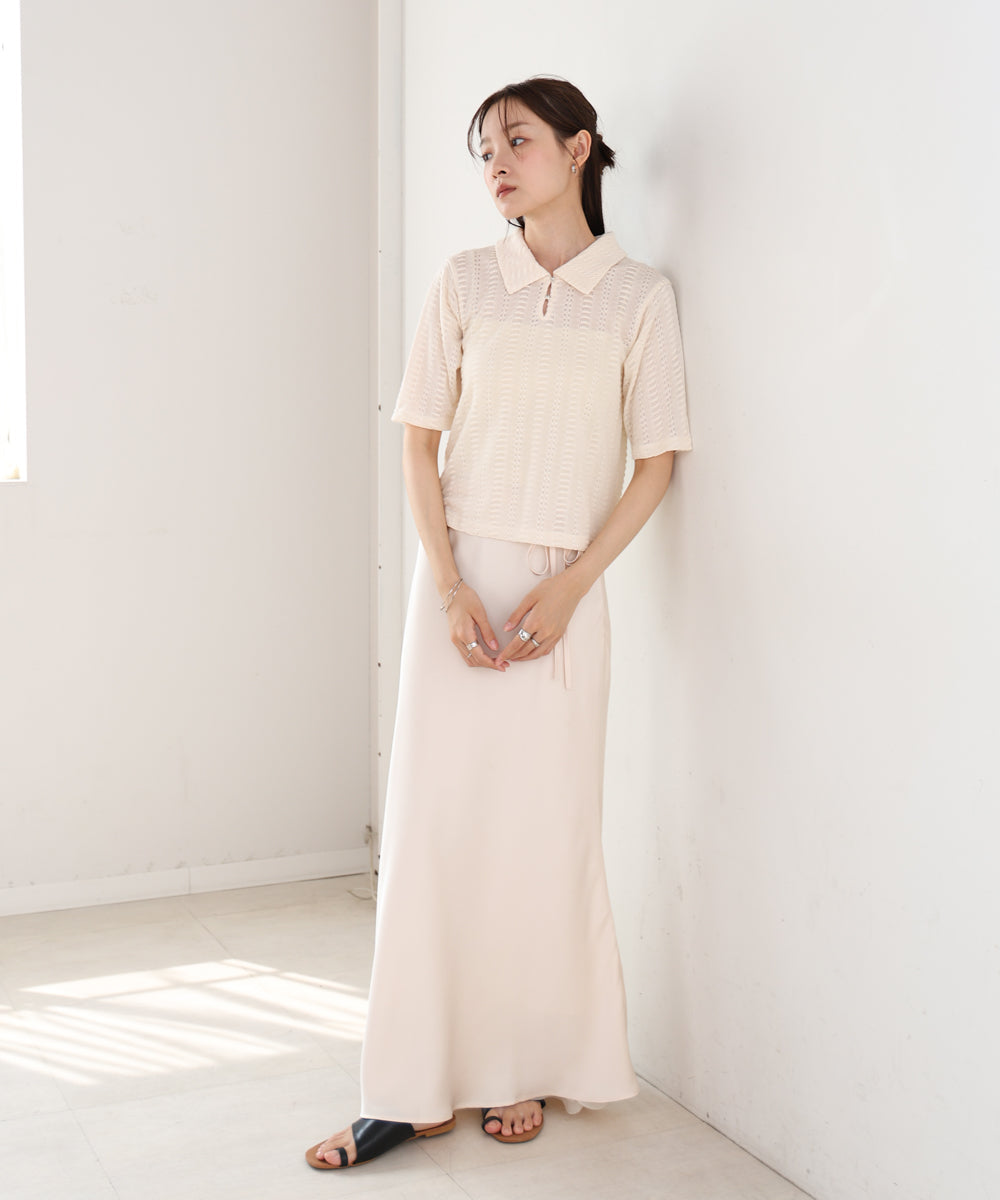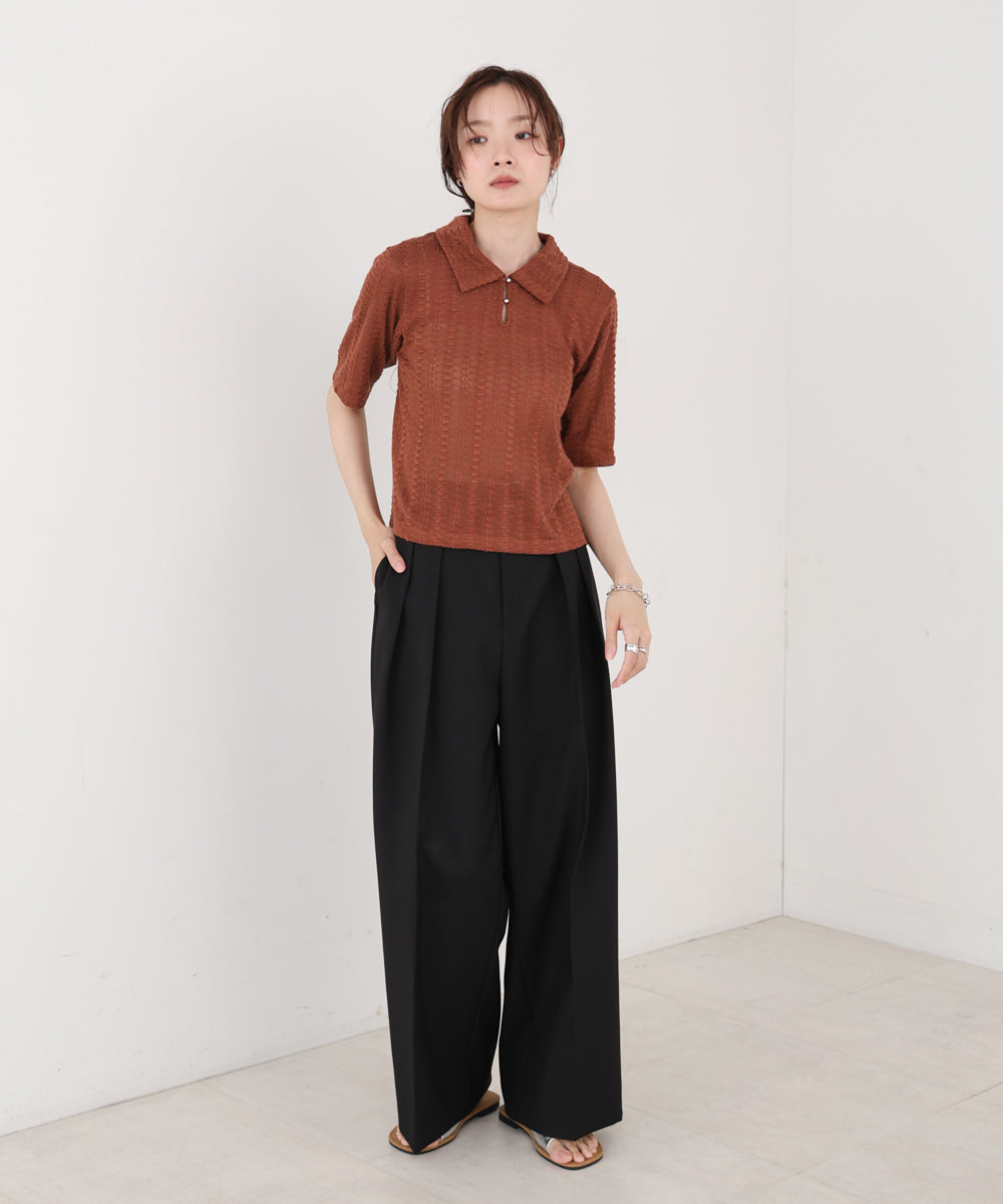 繊細なカットレースが女性らしさを引き立てつつ、襟付きデザインとフロントボタンが上品な印象をプラス。首元のボタンは3つ並びで、開け閉めで雰囲気の変化も楽しめます。また、縦にラインが施されているので自然なスタイルアップがかないます。オフィスカジュアルにもお出かけコーデにもどちらにも取り入れていただけるデザインに仕上がりました。