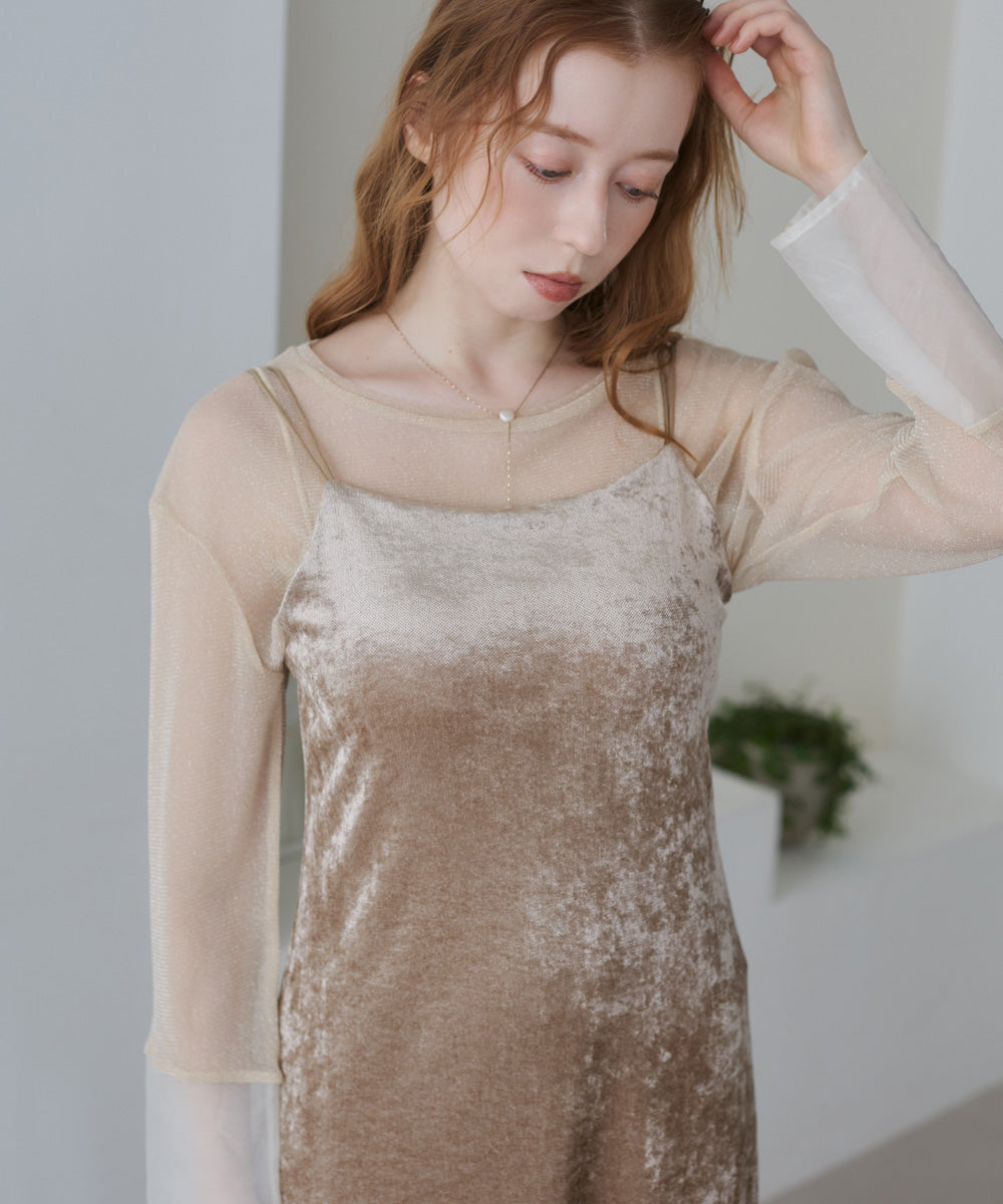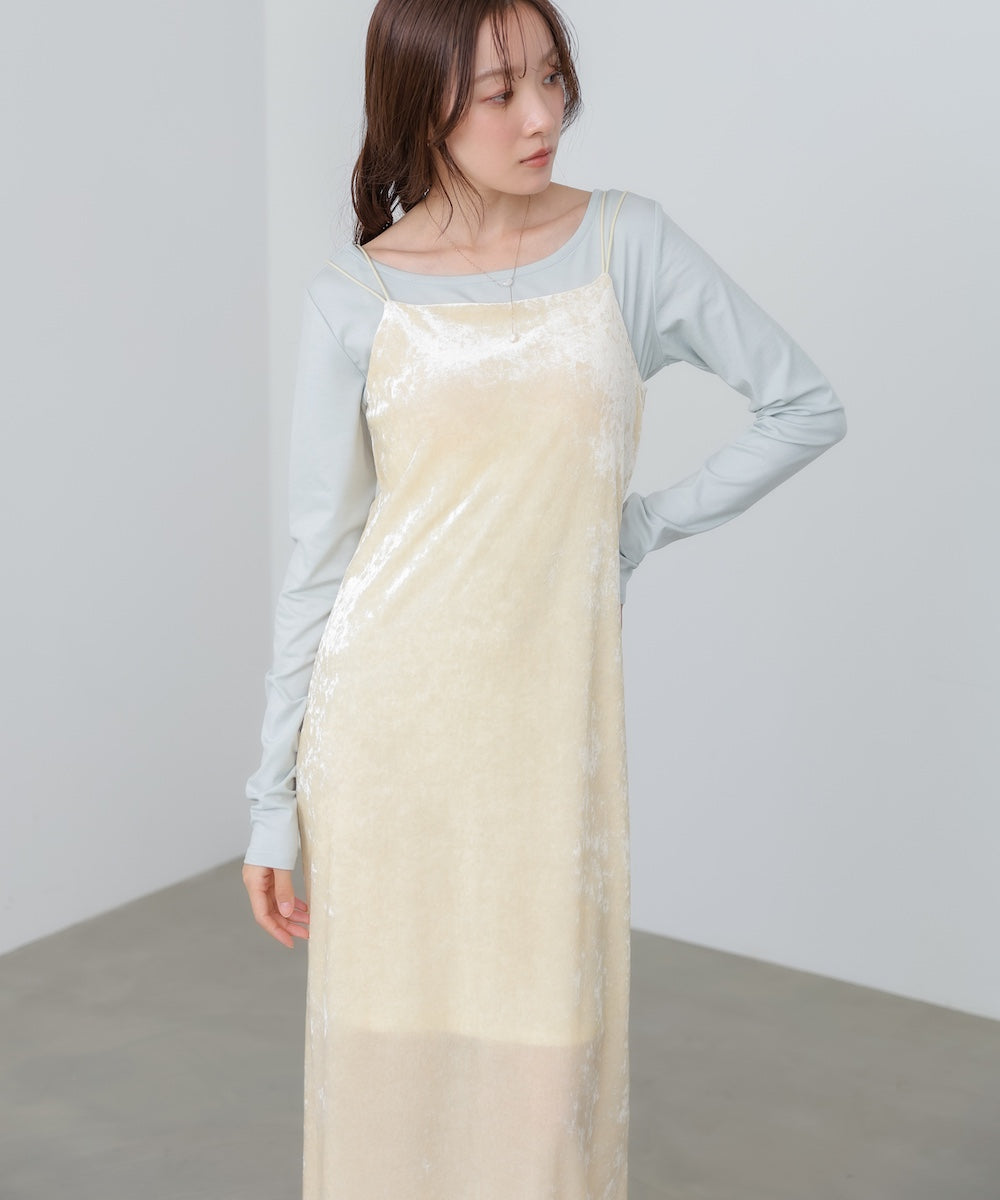 【S・Mサイズ展開】シアーベロアカップ付きキャミワンピース