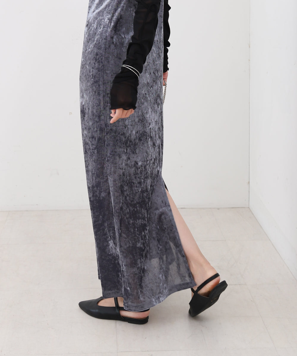 Mサイズを着用しました。くるぶし下までのベーシックなロング丈です!裾に少し透け感があるので、ロングたけでも重くならず抜け感が出ました。シンプルで重ね着がしやすく重宝しそうです!