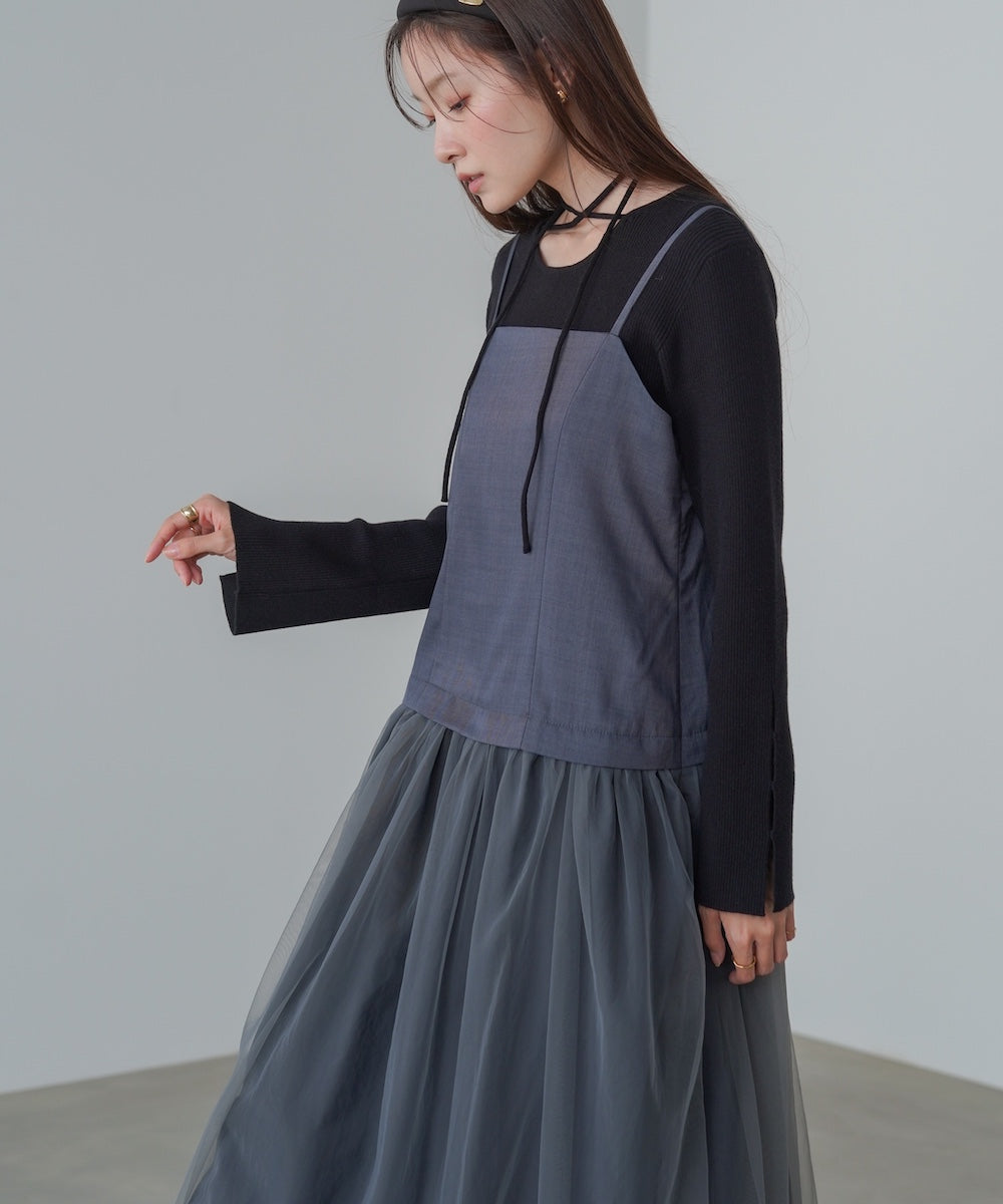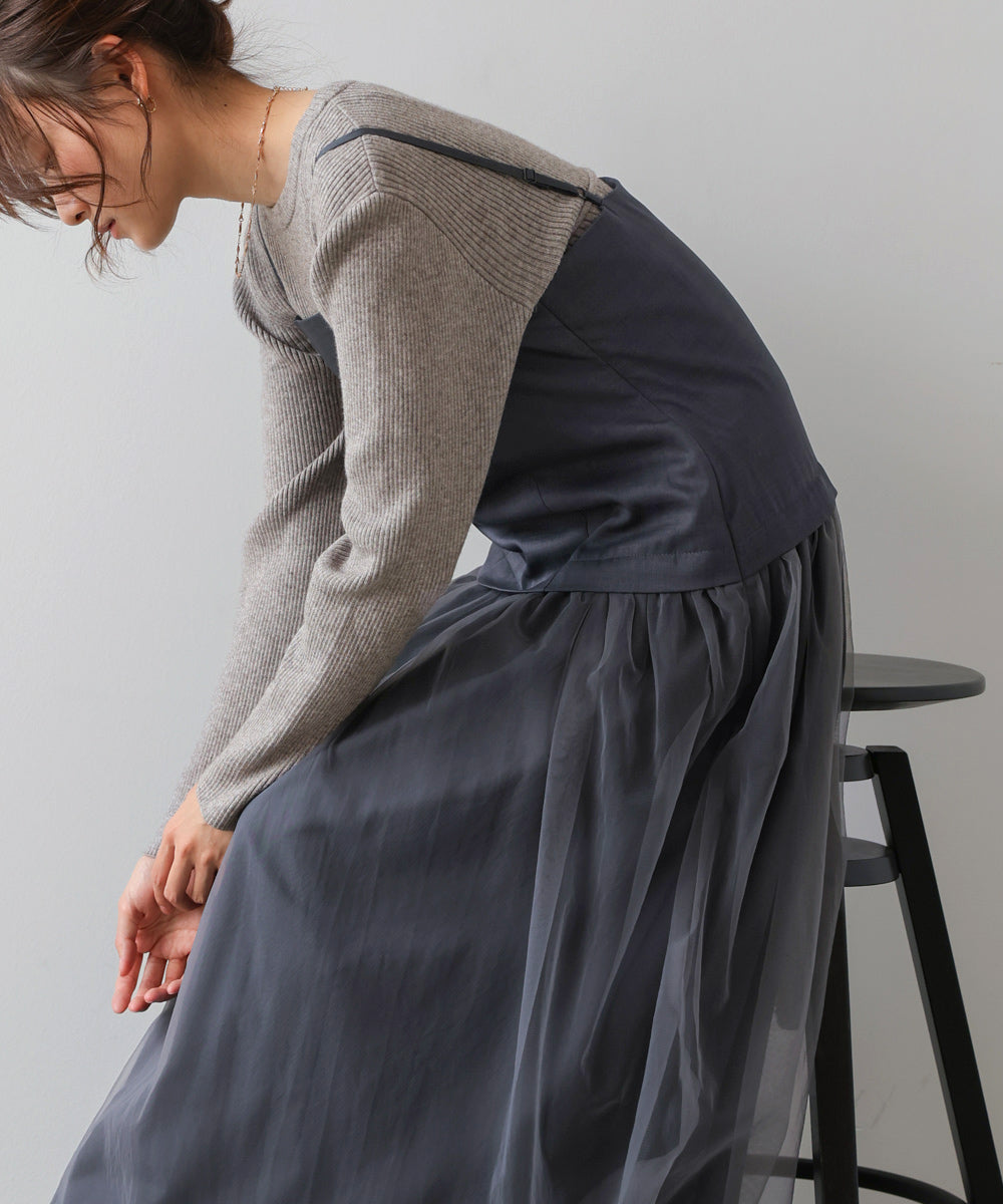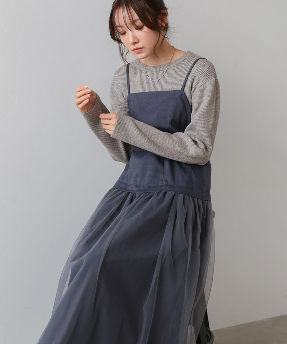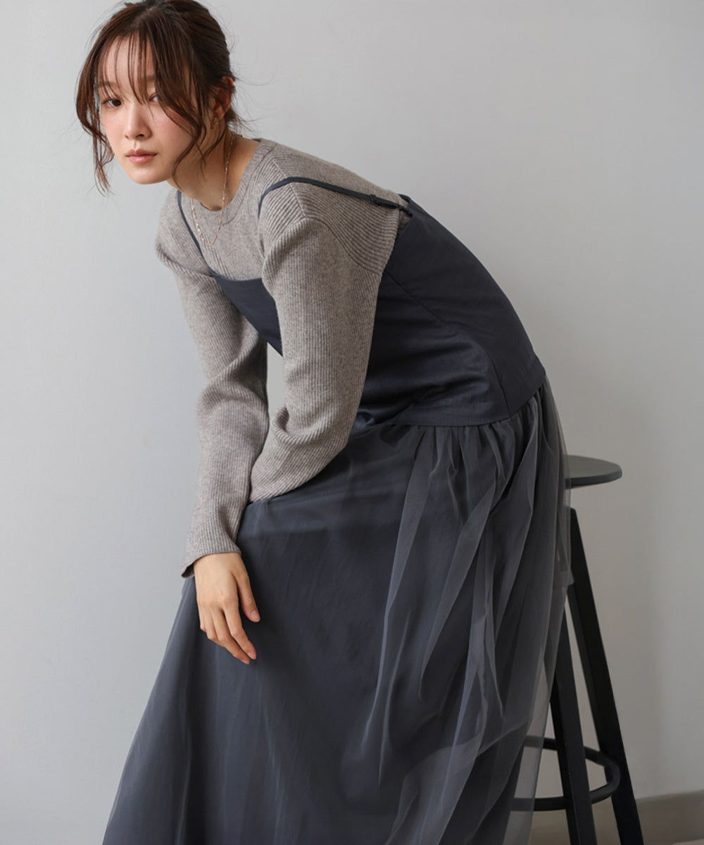 【S・M・Lサイズ】アシンメトリーフリルニットワンピース