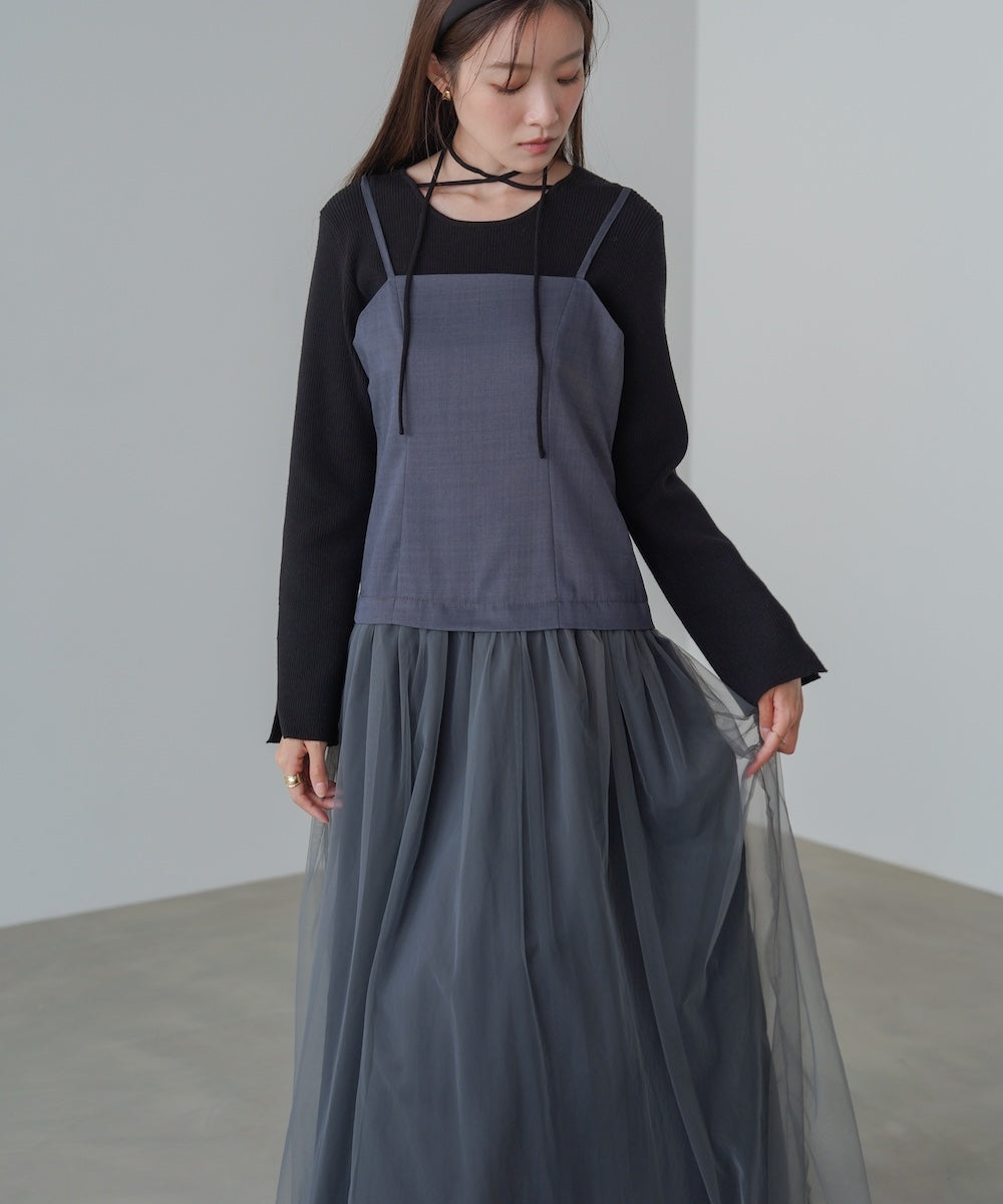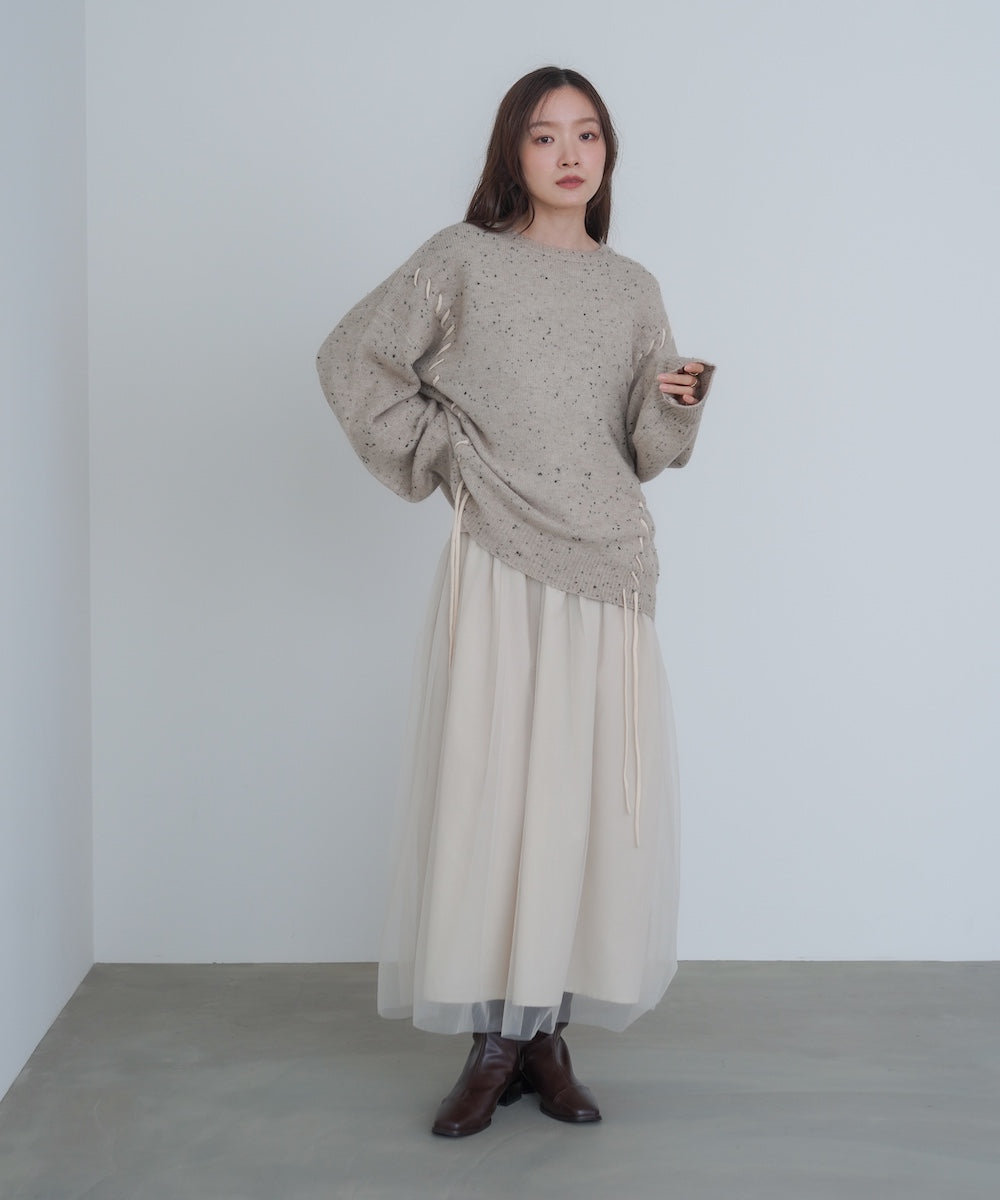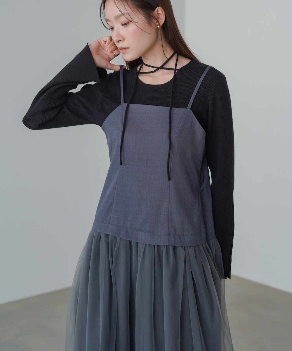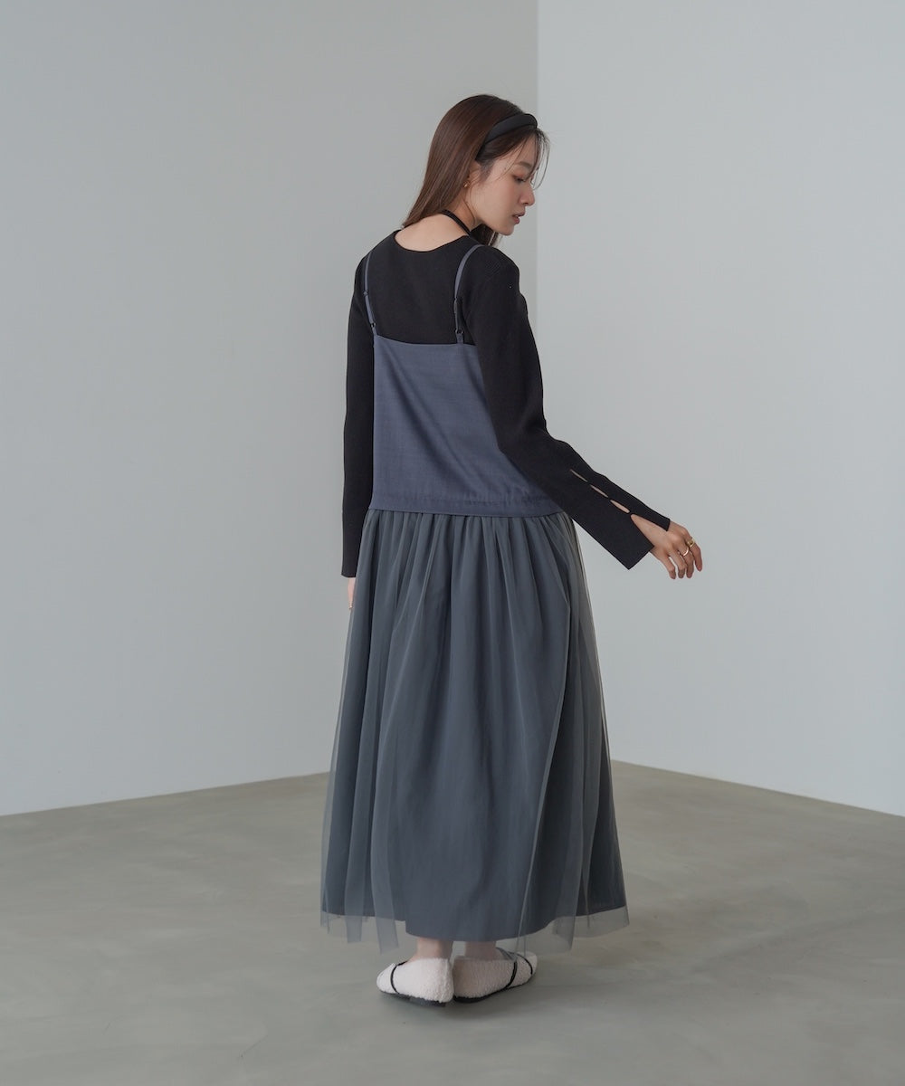 【S・M・Lサイズ】アシンメトリーフリルニットワンピース