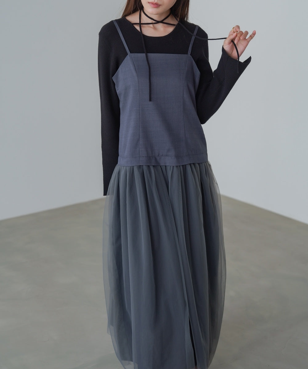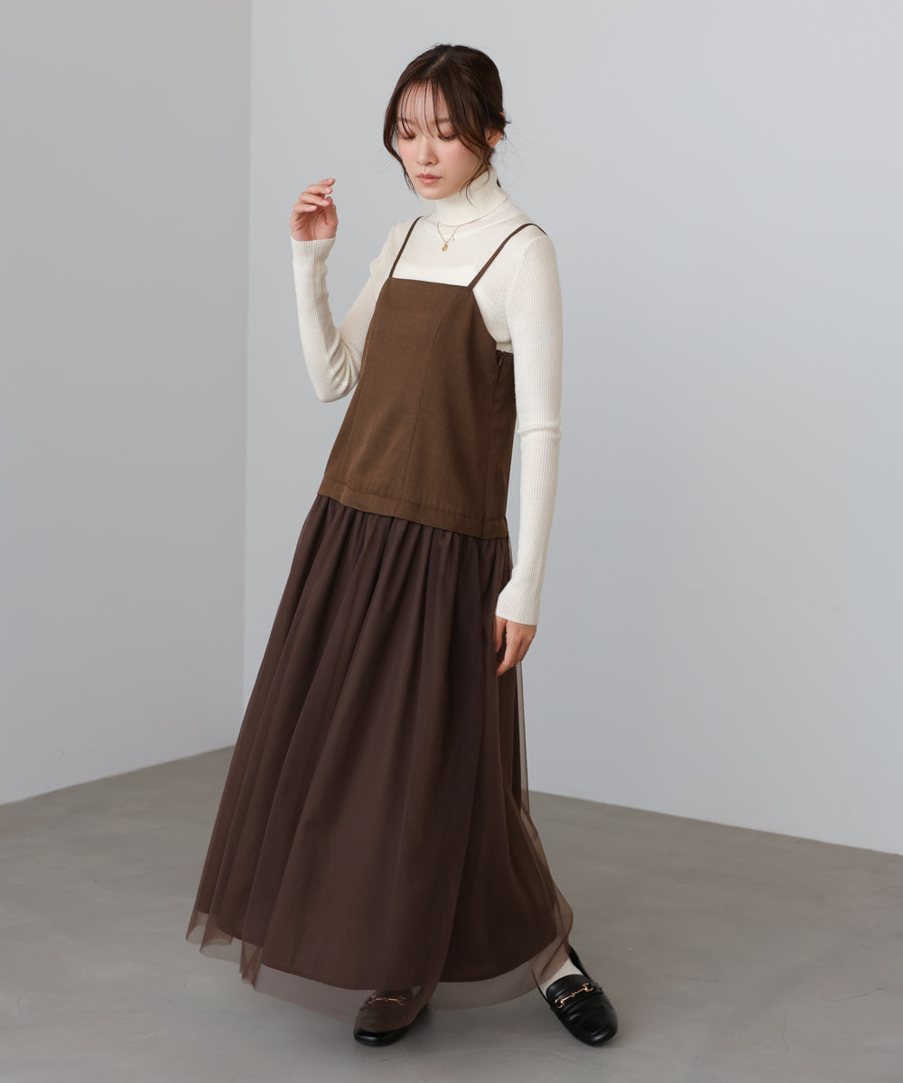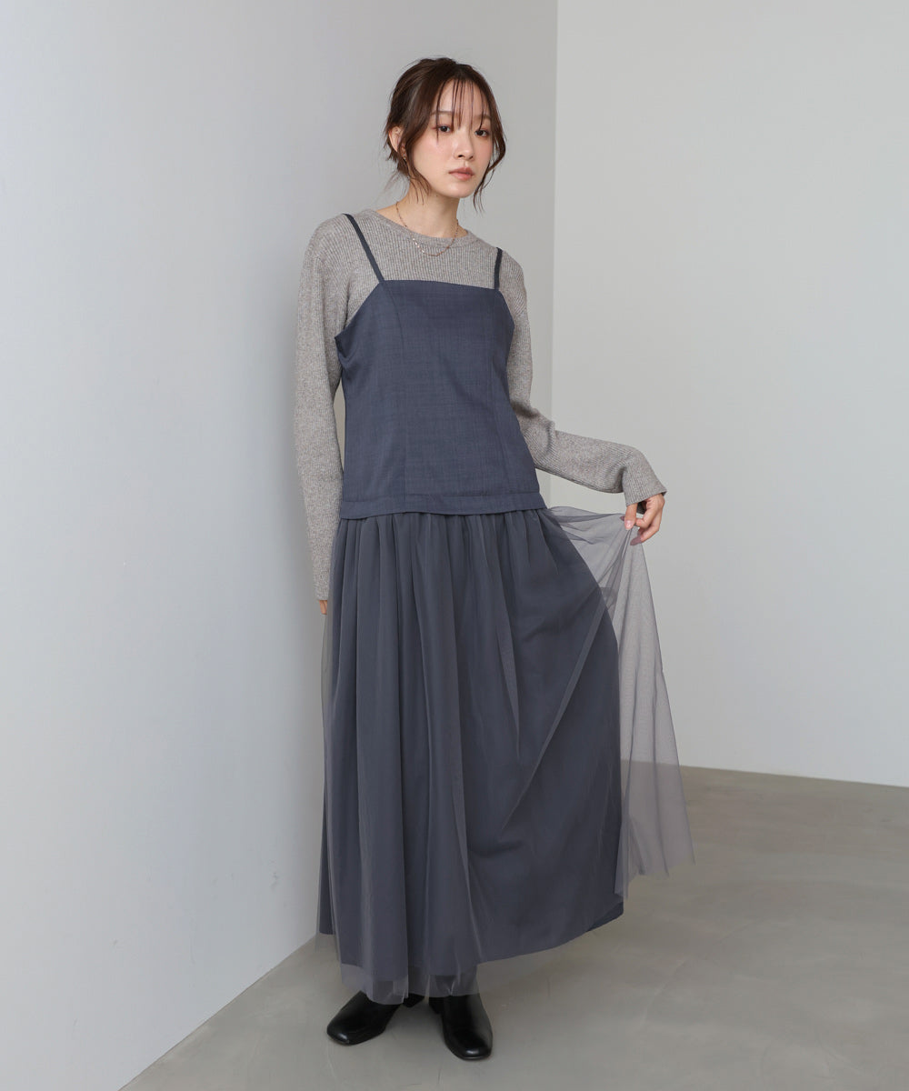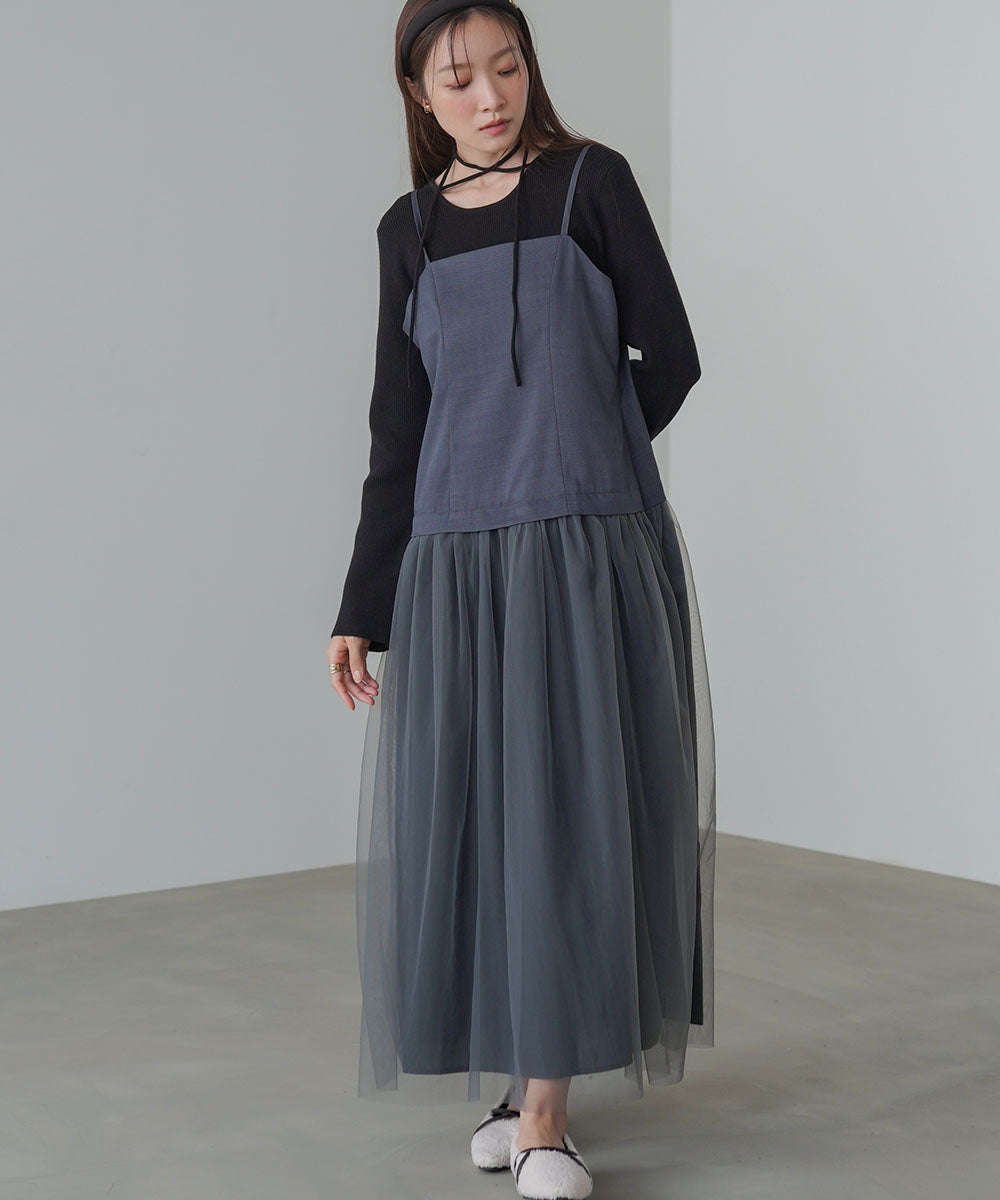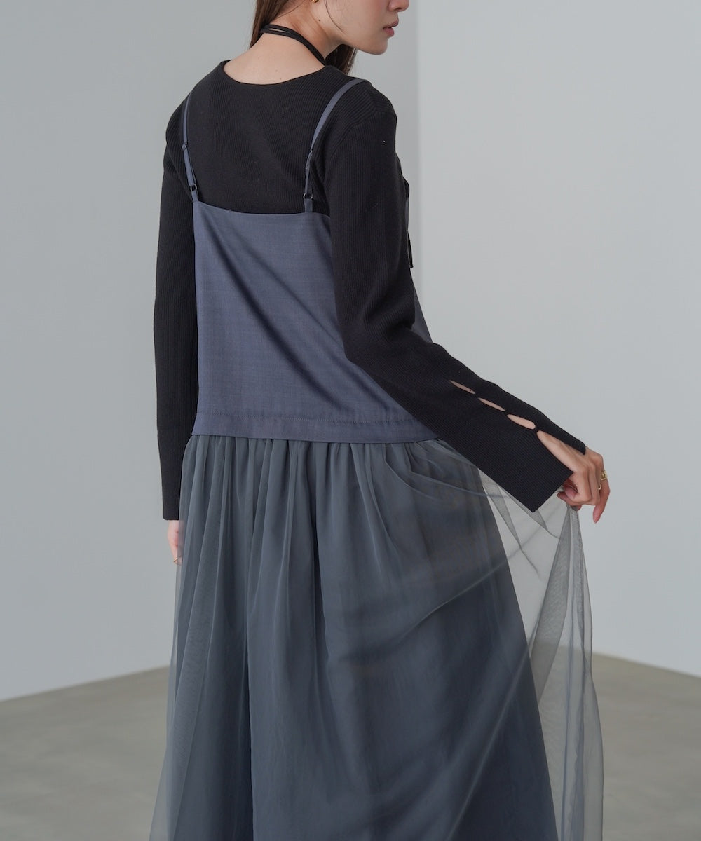 【S・M・Lサイズ】アシンメトリーフリルニットワンピース
