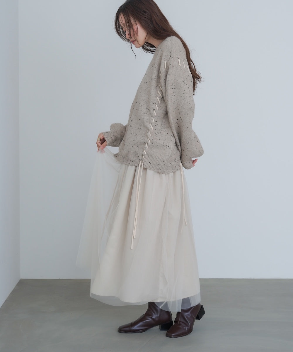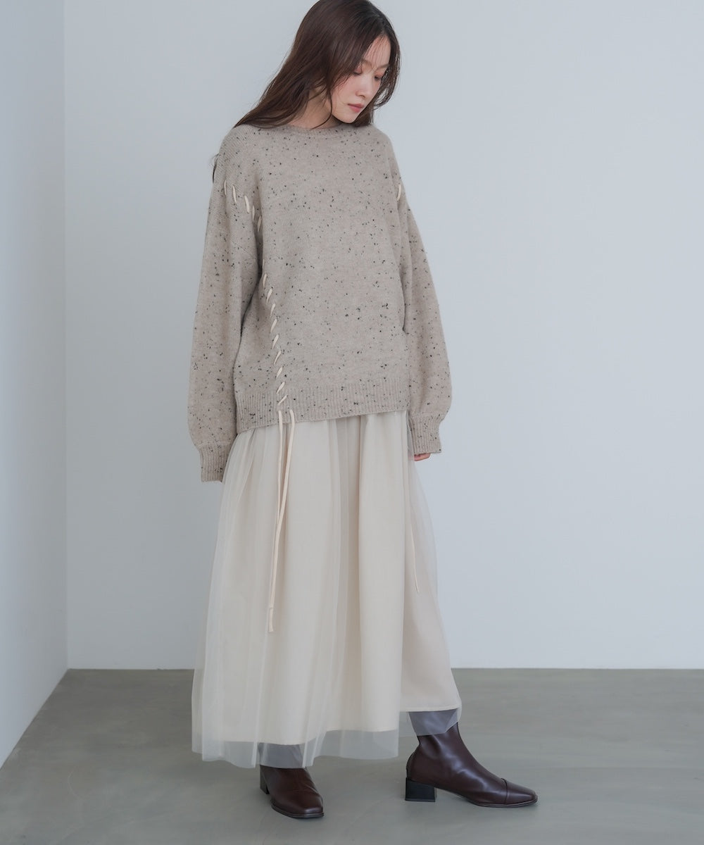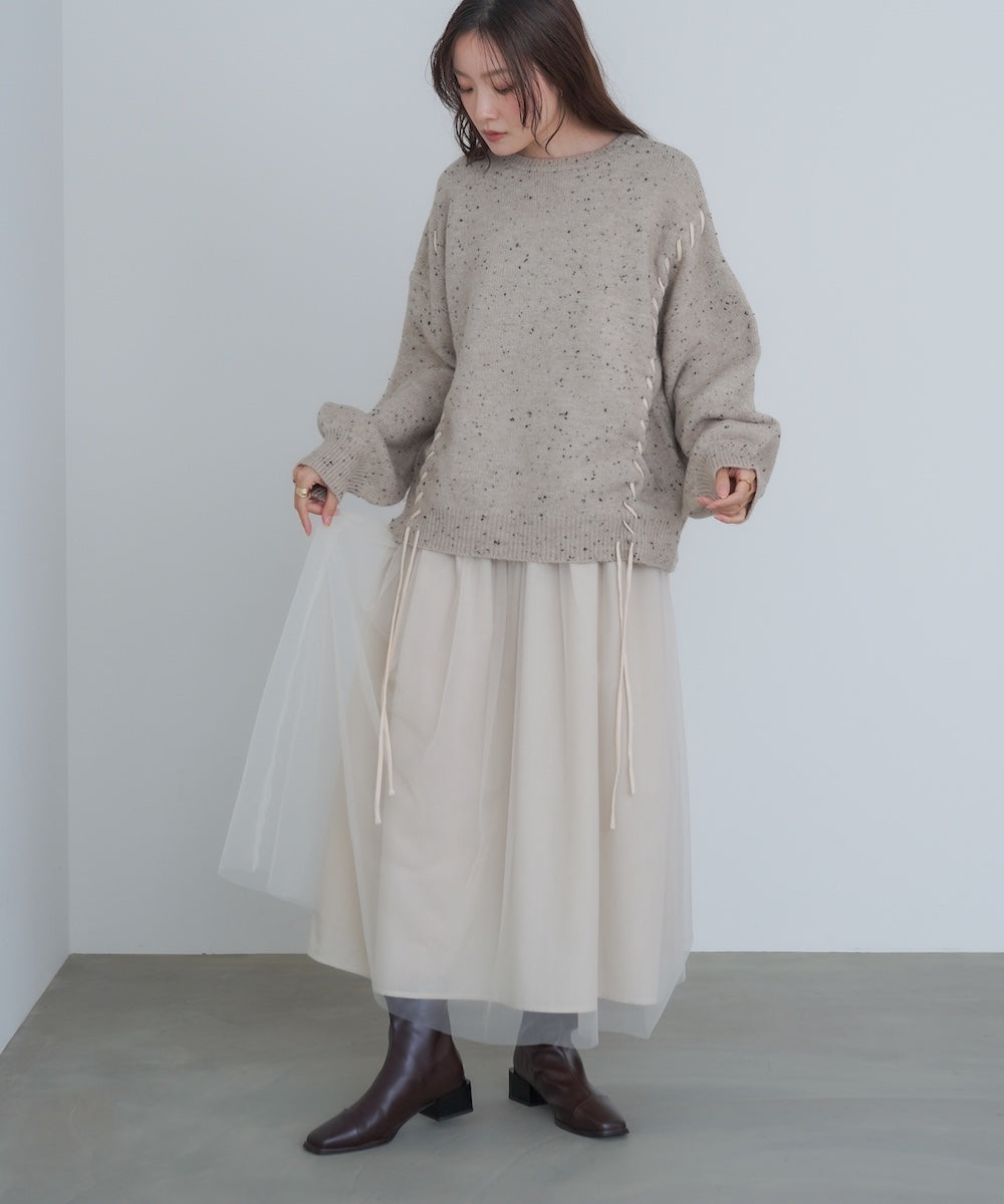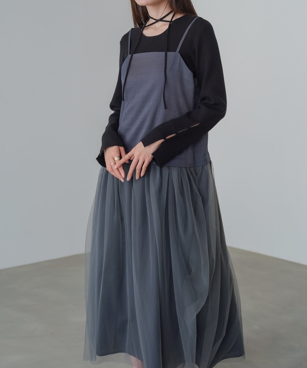 【S・M・Lサイズ】アシンメトリーフリルニットワンピース