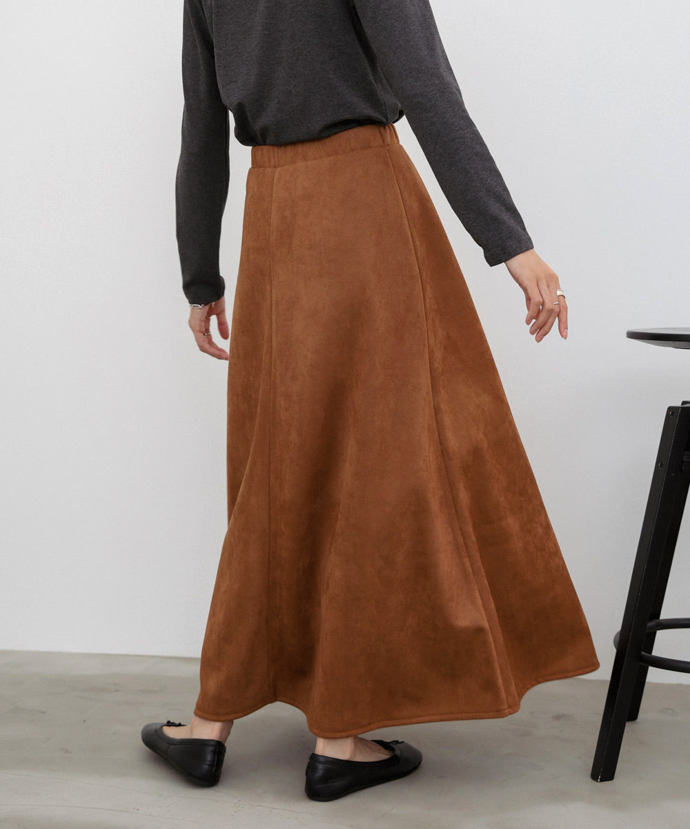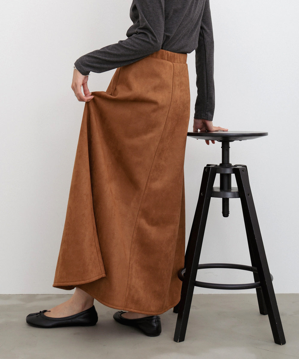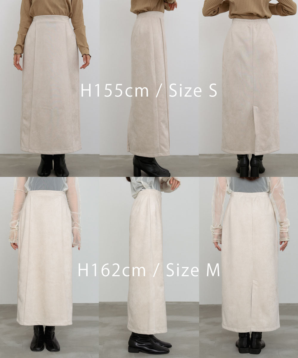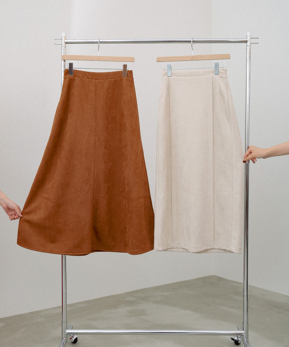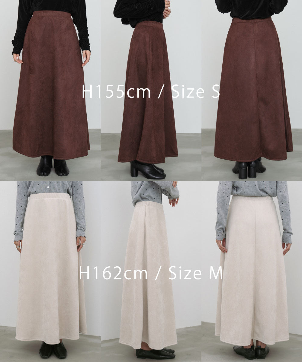 お好きなシルエットを選べるスウェードロングスカートが登場しました!シンプルなデザインになっているので上に、ニットやカットソー、ベストなどどんな形のトップスを持ってきても合うのがポイントです。タイトスカートはカジュアルな一面が、フレアスカートはガーリーな一面が含まれたスカートになっています。表面部分はきちんと感がしっかりとあるのでオンオフ問わずにお使いいただけます。サイズもS/M/Lと幅広くご用意しました。