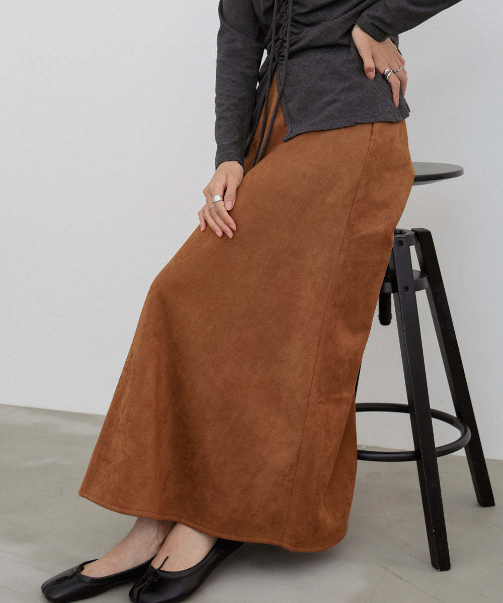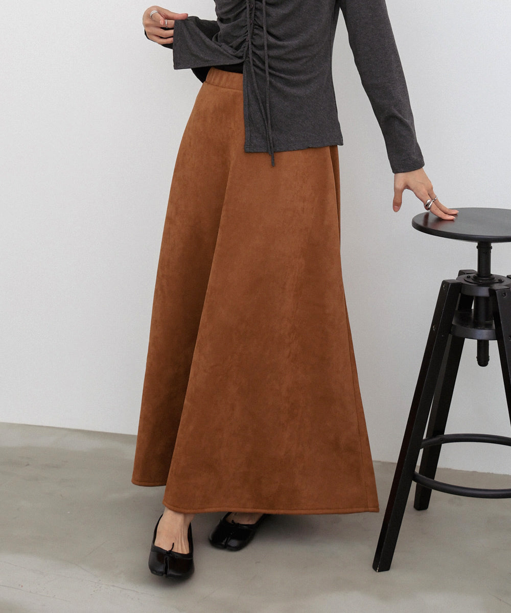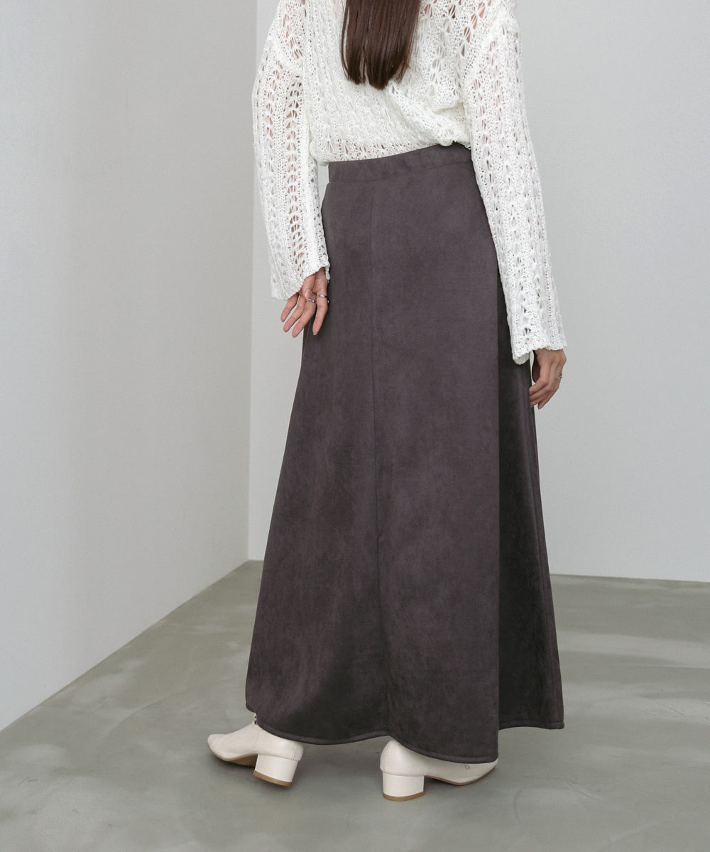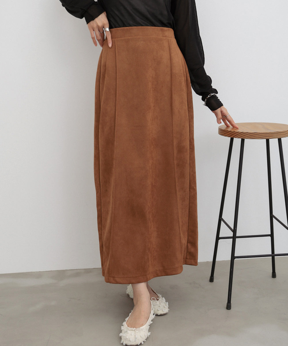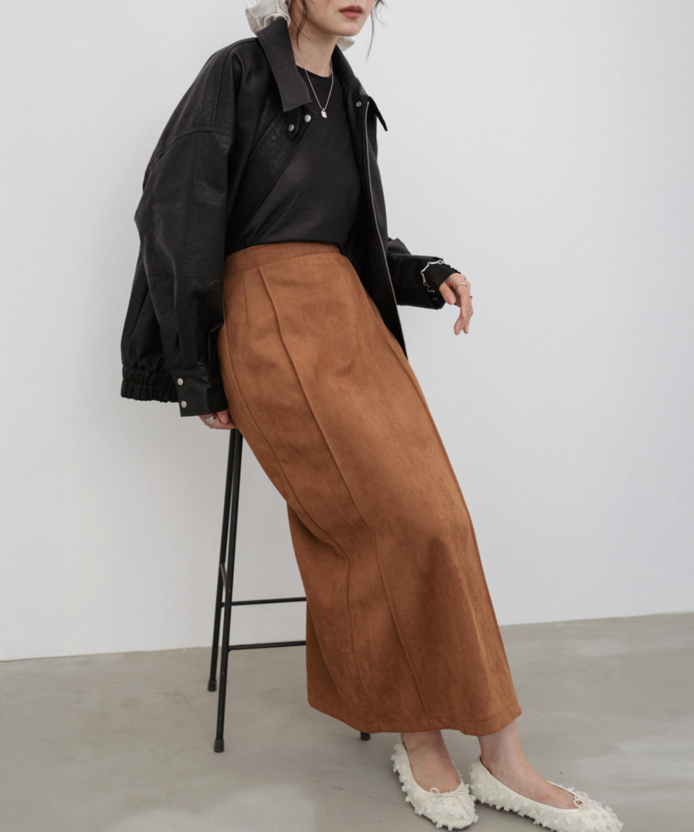 お好きなシルエットを選べるスウェードロングスカートが登場しました!シンプルなデザインになっているので上に、ニットやカットソー、ベストなどどんな形のトップスを持ってきても合うのがポイントです。タイトスカートはカジュアルな一面が、フレアスカートはガーリーな一面が含まれたスカートになっています。表面部分はきちんと感がしっかりとあるのでオンオフ問わずにお使いいただけます。サイズもS/M/Lと幅広くご用意しました。