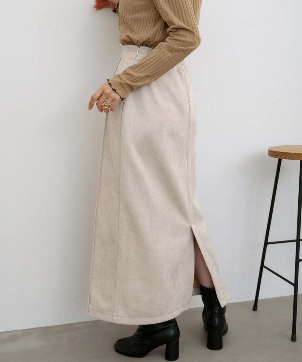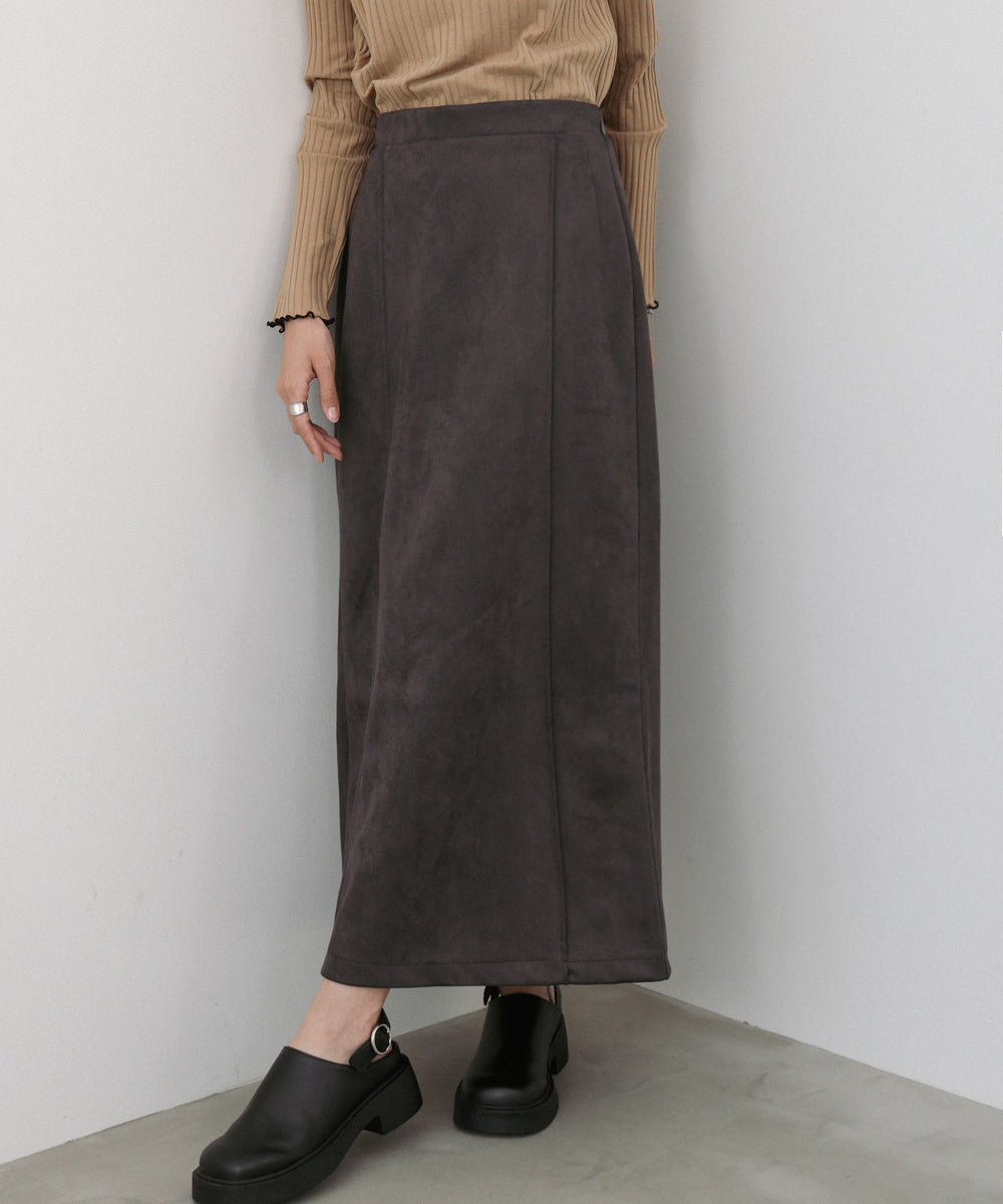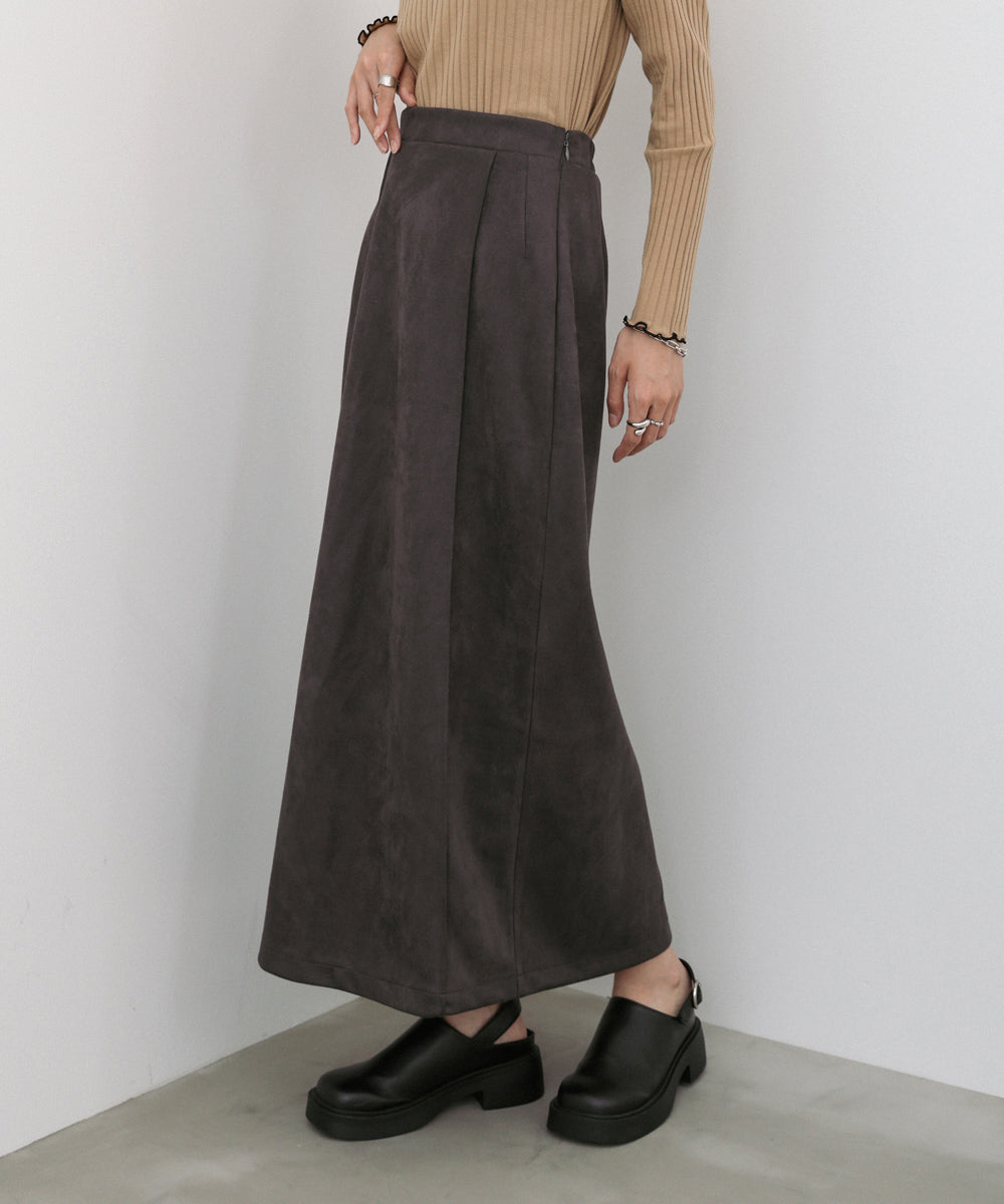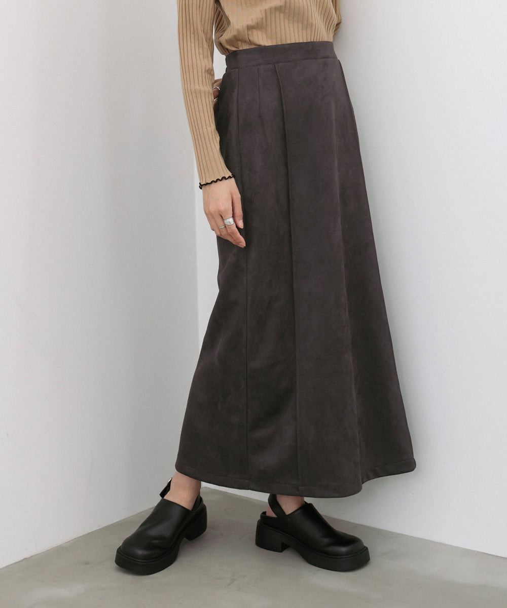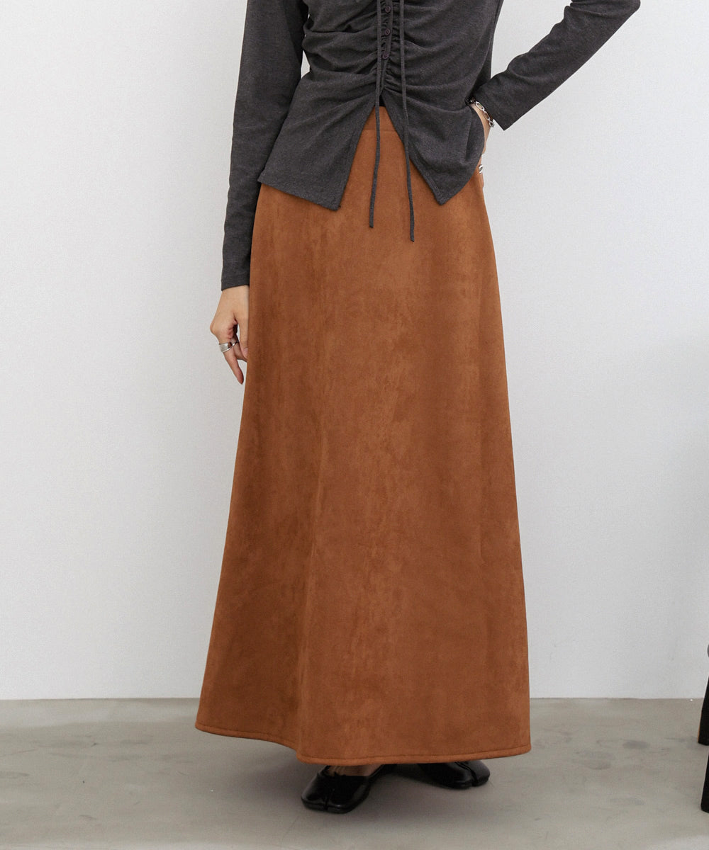 お好きなシルエットを選べるスウェードロングスカートが登場しました!シンプルなデザインになっているので上に、ニットやカットソー、ベストなどどんな形のトップスを持ってきても合うのがポイントです。タイトスカートはカジュアルな一面が、フレアスカートはガーリーな一面が含まれたスカートになっています。表面部分はきちんと感がしっかりとあるのでオンオフ問わずにお使いいただけます。サイズもS/M/Lと幅広くご用意しました。