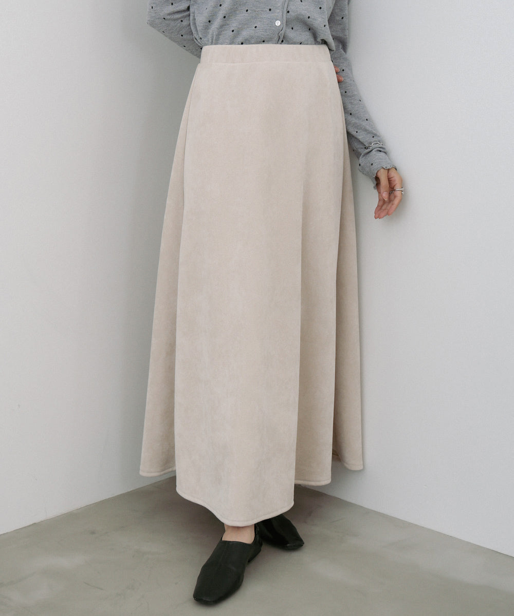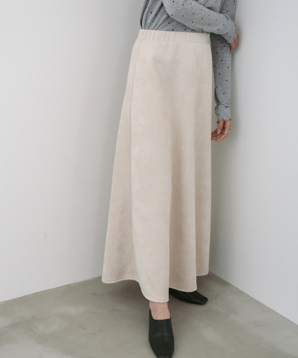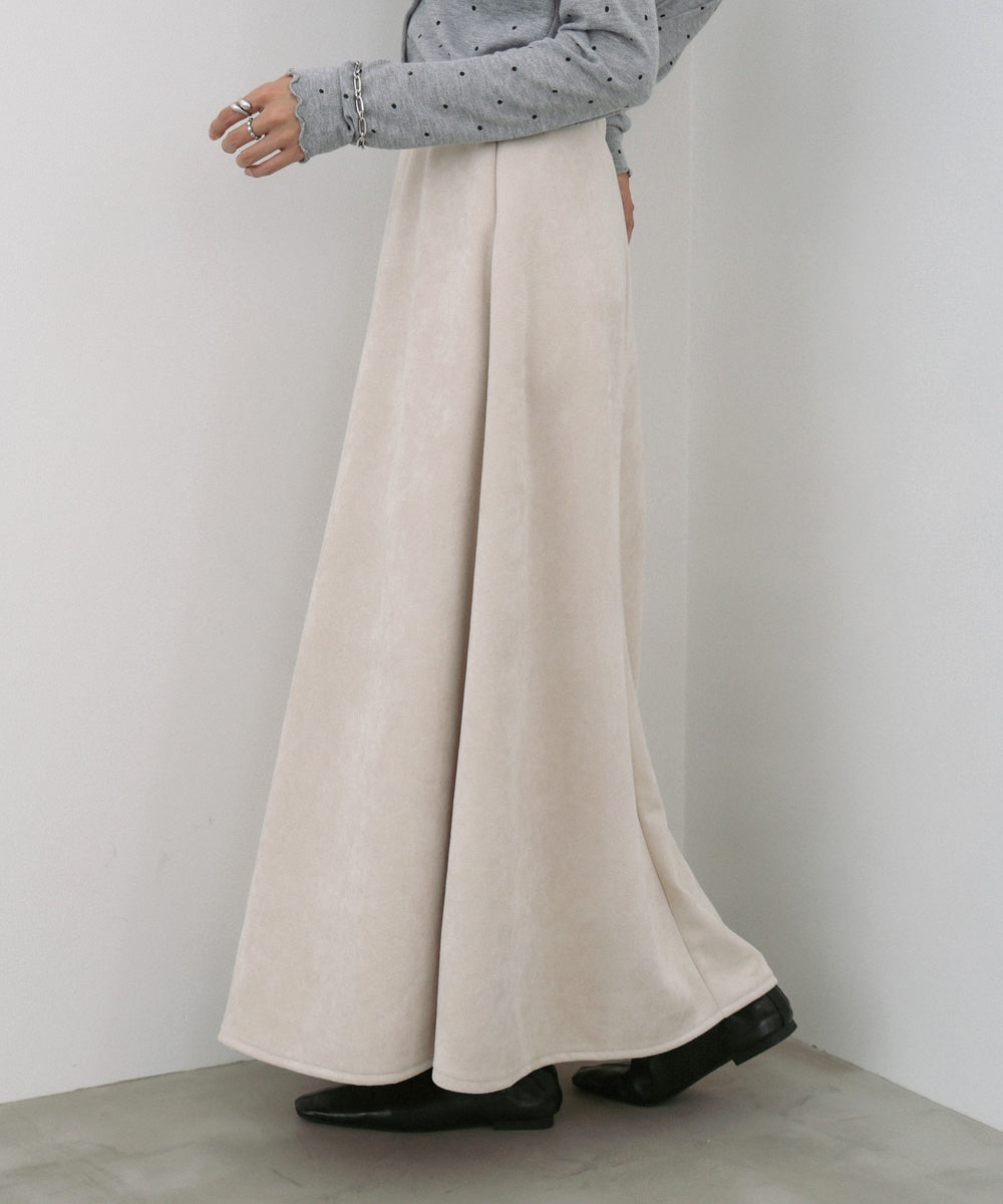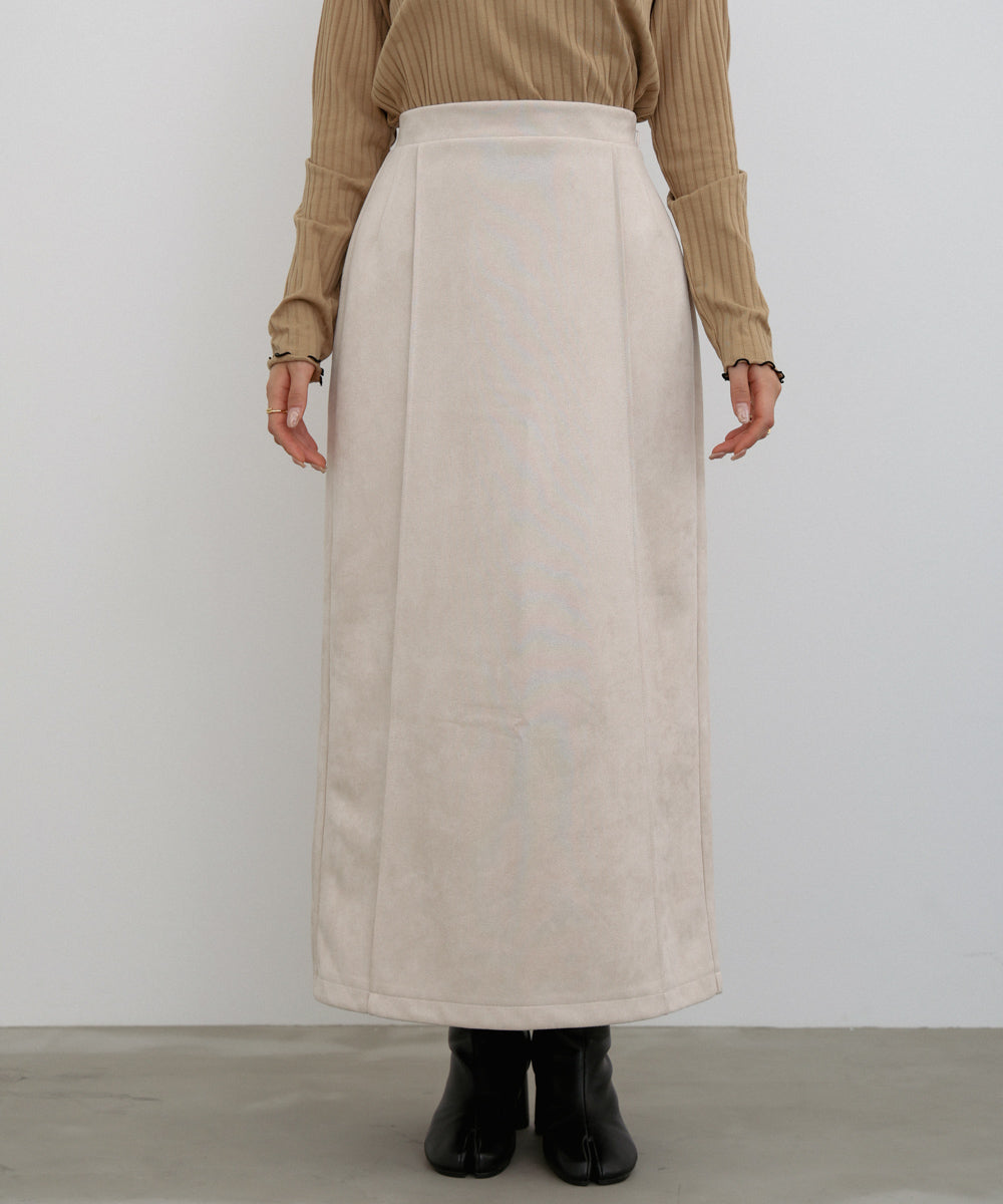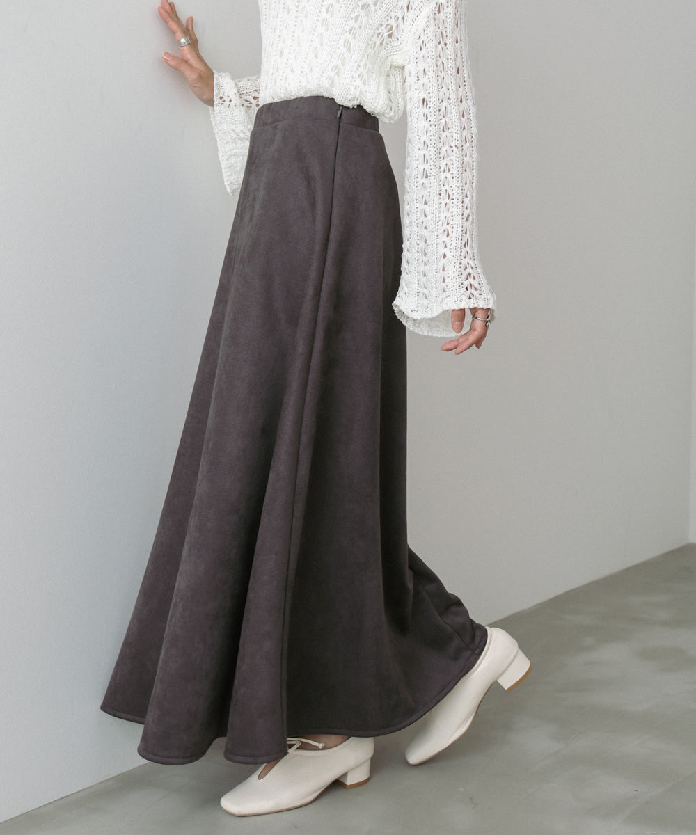 お好きなシルエットを選べるスウェードロングスカートが登場しました!シンプルなデザインになっているので上に、ニットやカットソー、ベストなどどんな形のトップスを持ってきても合うのがポイントです。タイトスカートはカジュアルな一面が、フレアスカートはガーリーな一面が含まれたスカートになっています。表面部分はきちんと感がしっかりとあるのでオンオフ問わずにお使いいただけます。サイズもS/M/Lと幅広くご用意しました。