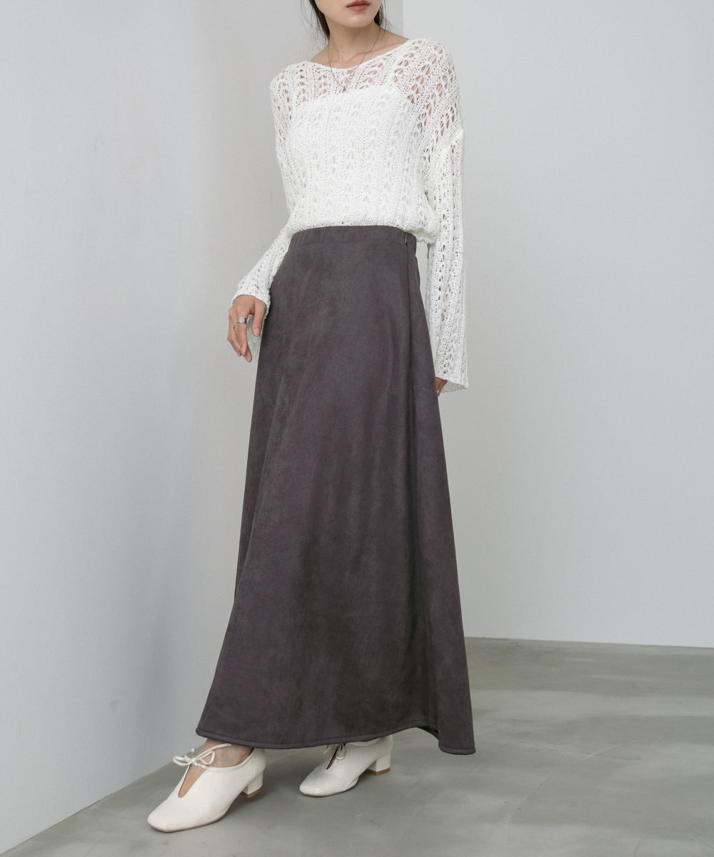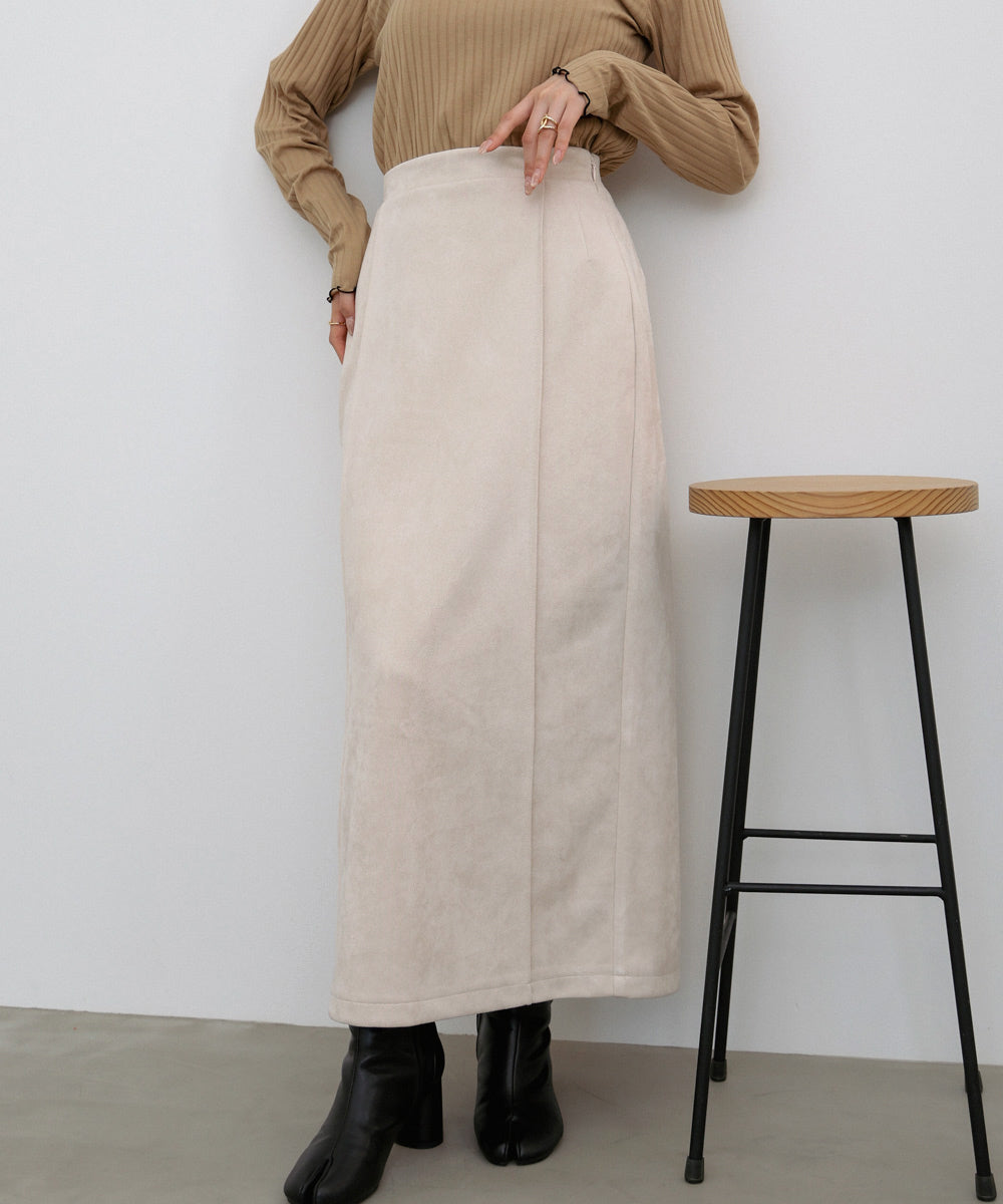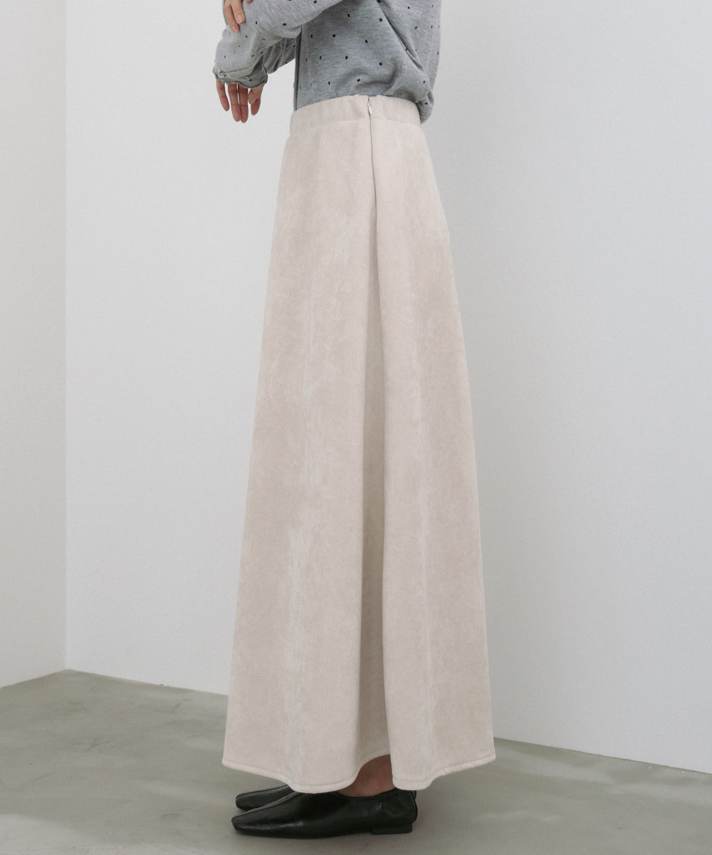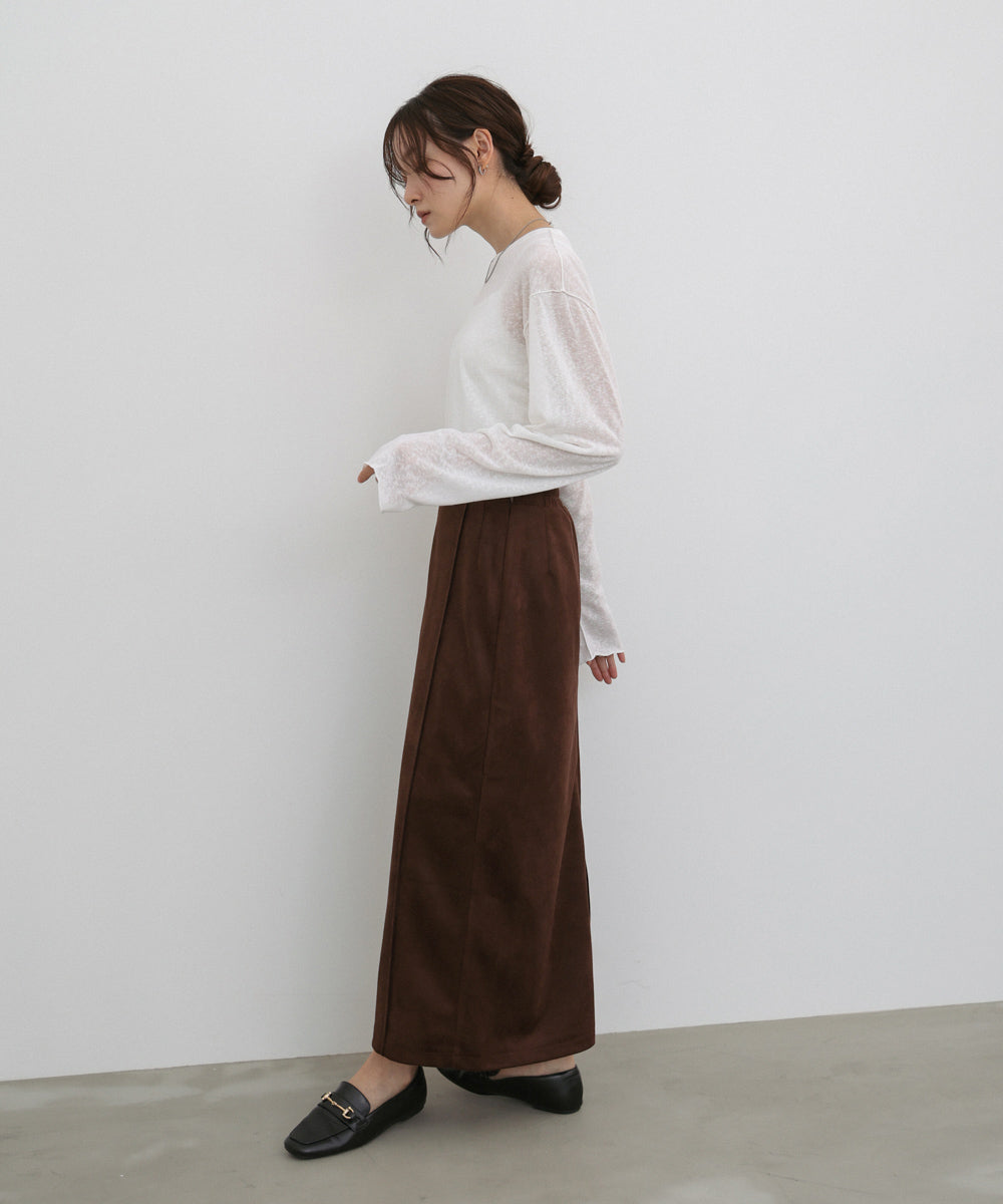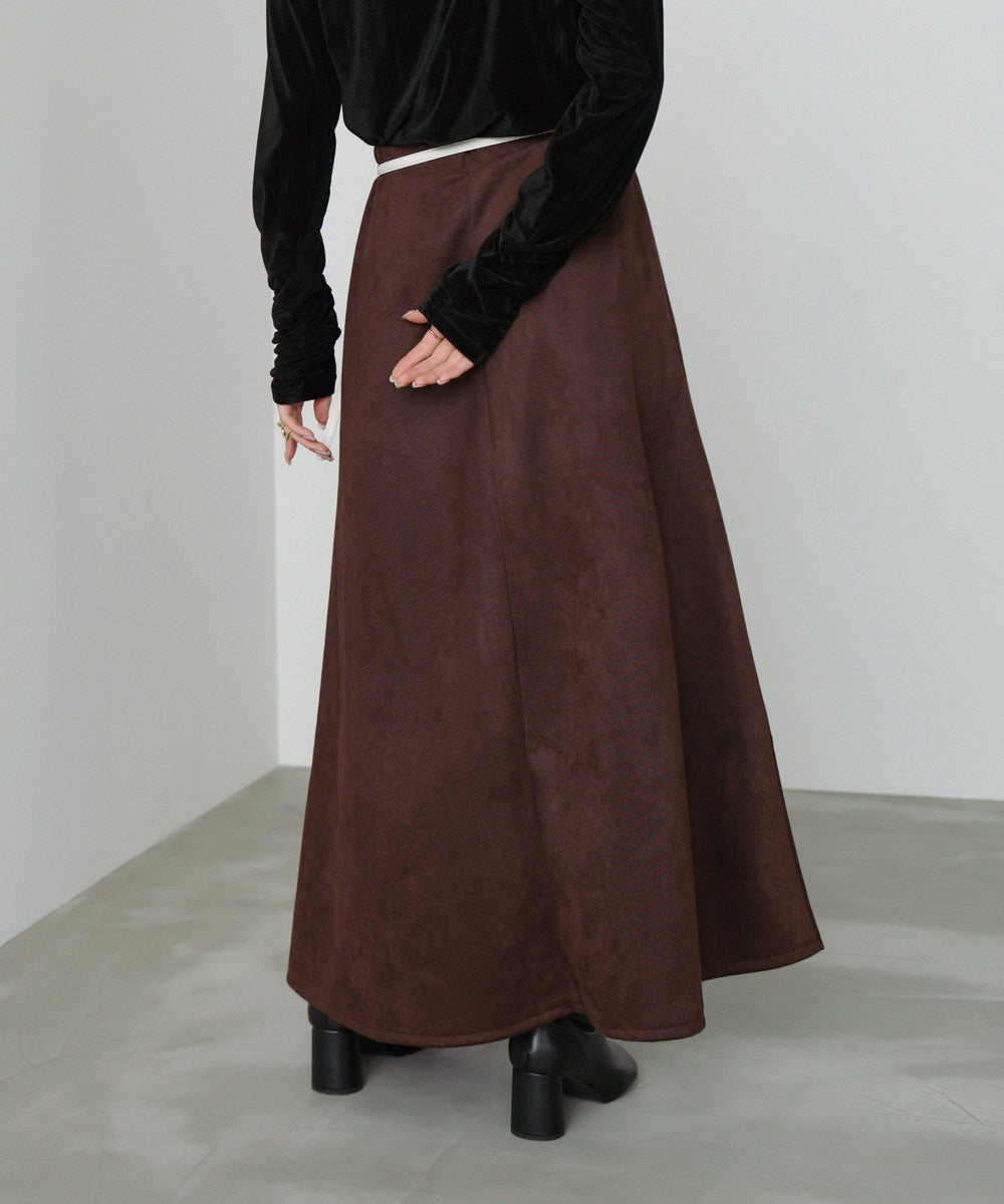 お好きなシルエットを選べるスウェードロングスカートが登場しました!シンプルなデザインになっているので上に、ニットやカットソー、ベストなどどんな形のトップスを持ってきても合うのがポイントです。タイトスカートはカジュアルな一面が、フレアスカートはガーリーな一面が含まれたスカートになっています。表面部分はきちんと感がしっかりとあるのでオンオフ問わずにお使いいただけます。サイズもS/M/Lと幅広くご用意しました。