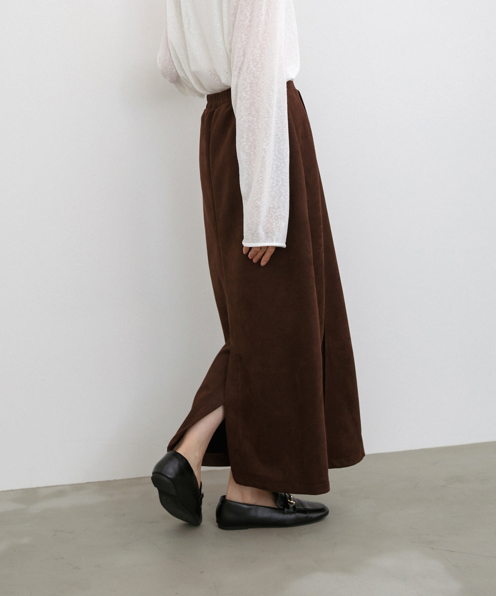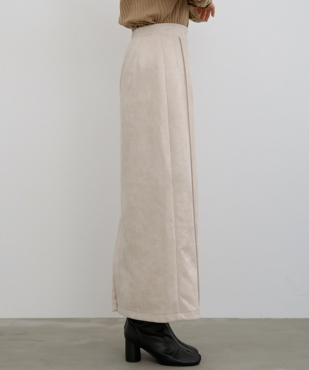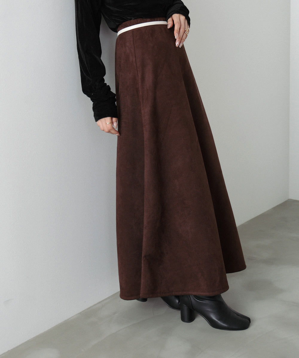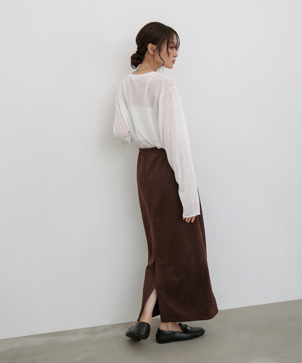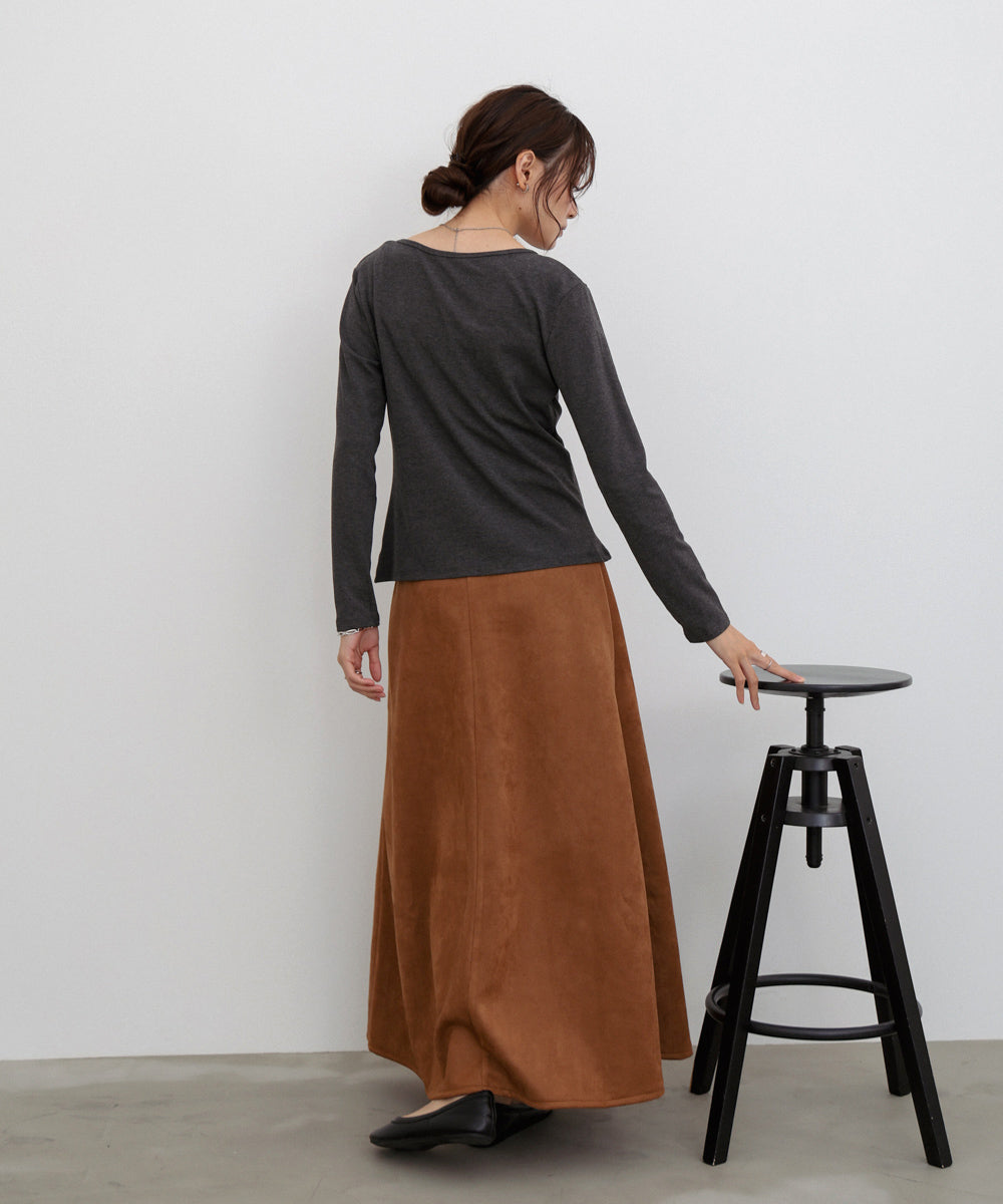 お好きなシルエットを選べるスウェードロングスカートが登場しました!シンプルなデザインになっているので上に、ニットやカットソー、ベストなどどんな形のトップスを持ってきても合うのがポイントです。タイトスカートはカジュアルな一面が、フレアスカートはガーリーな一面が含まれたスカートになっています。表面部分はきちんと感がしっかりとあるのでオンオフ問わずにお使いいただけます。サイズもS/M/Lと幅広くご用意しました。