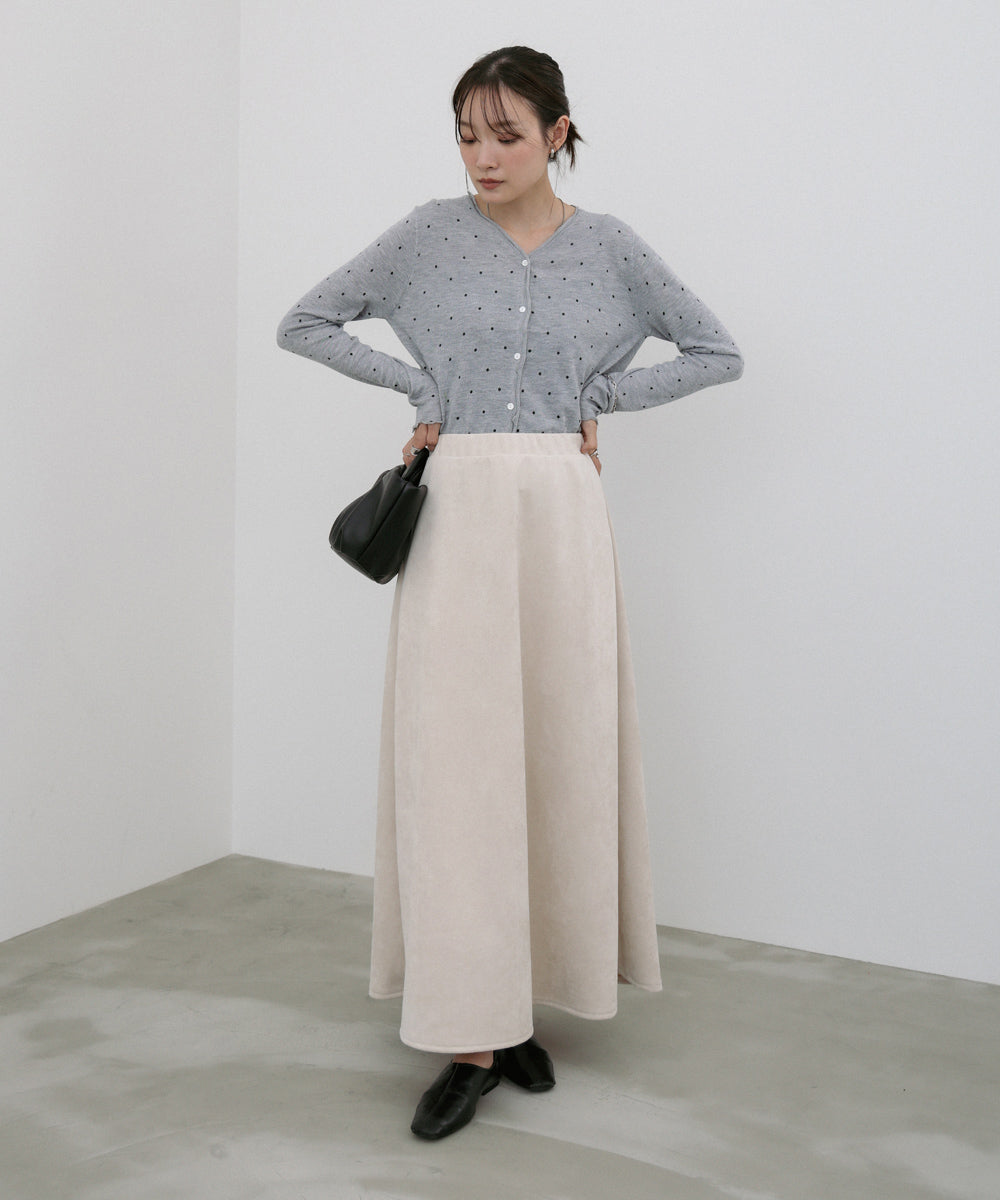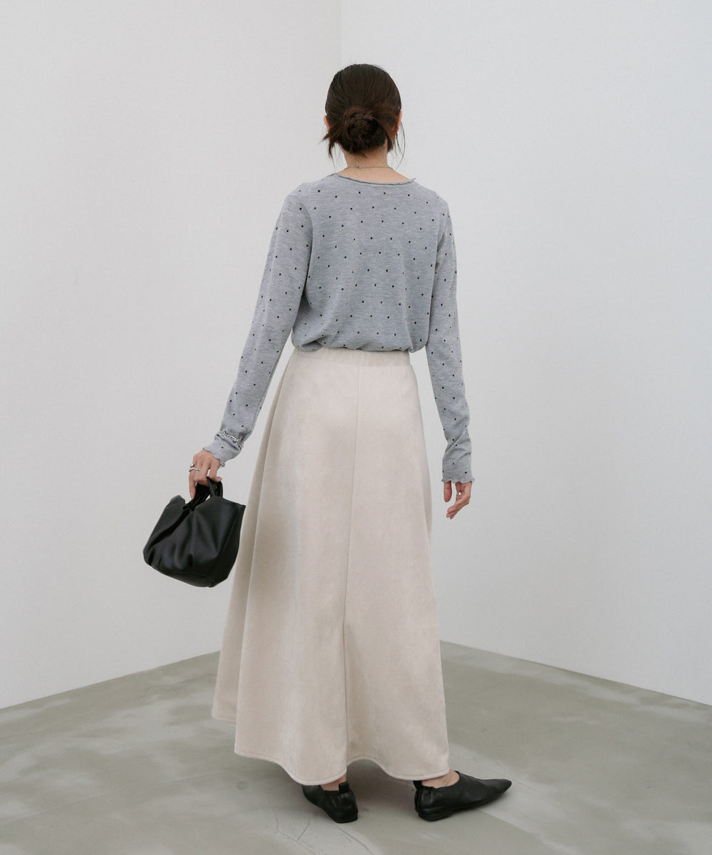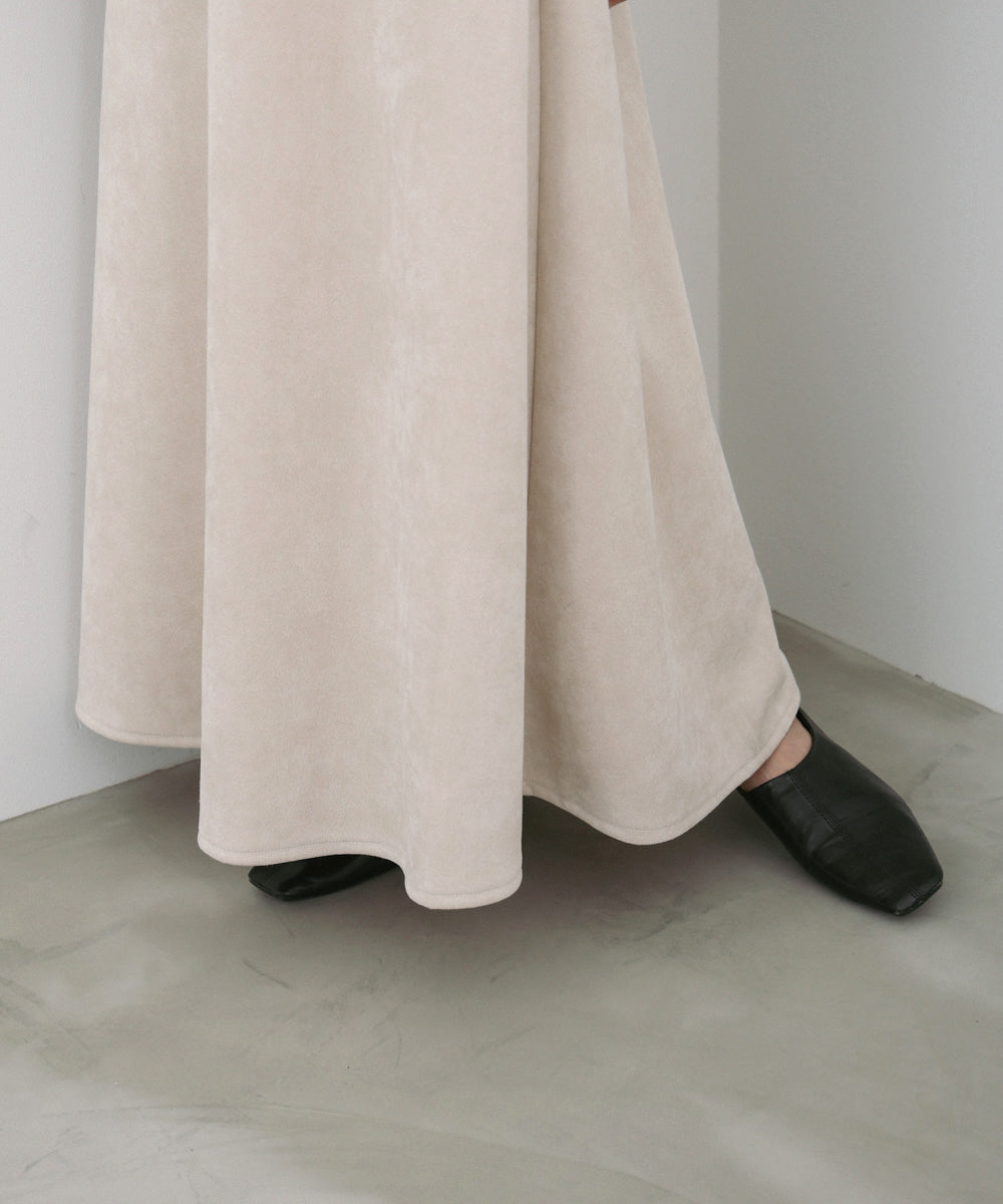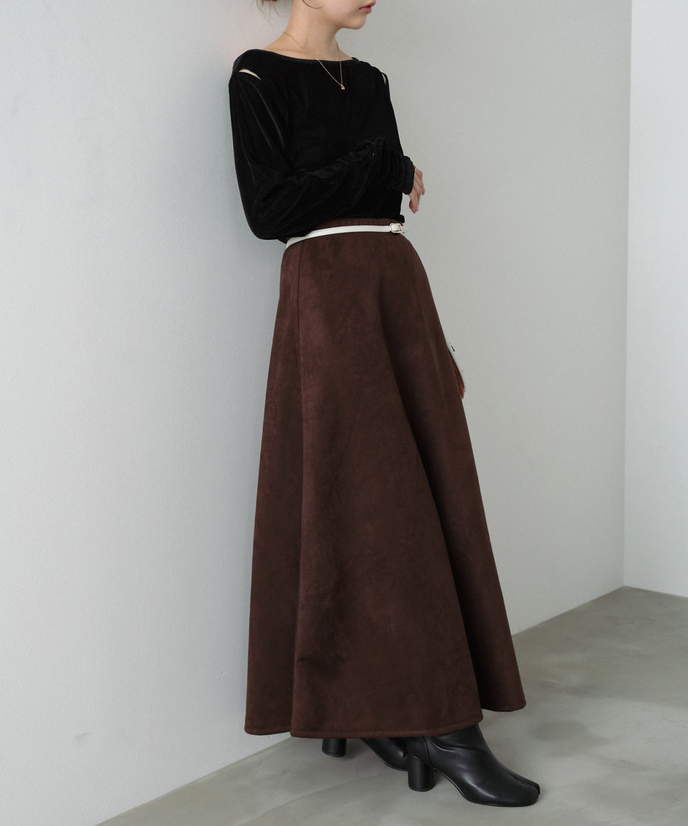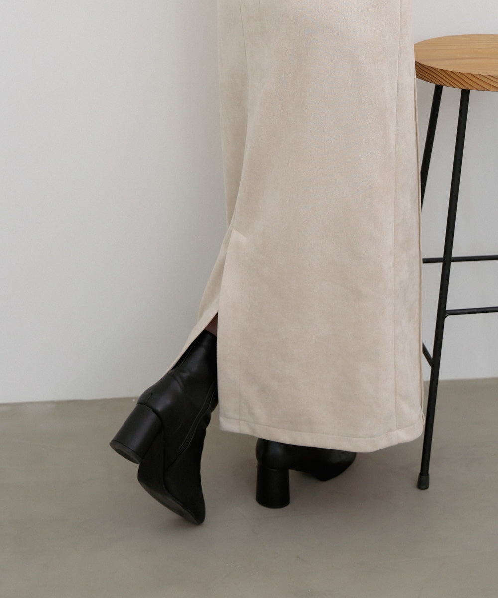 お好きなシルエットを選べるスウェードロングスカートが登場しました!シンプルなデザインになっているので上に、ニットやカットソー、ベストなどどんな形のトップスを持ってきても合うのがポイントです。タイトスカートはカジュアルな一面が、フレアスカートはガーリーな一面が含まれたスカートになっています。表面部分はきちんと感がしっかりとあるのでオンオフ問わずにお使いいただけます。サイズもS/M/Lと幅広くご用意しました。