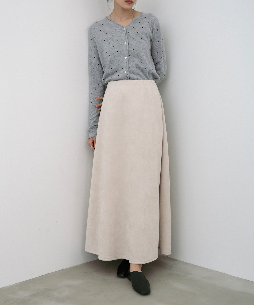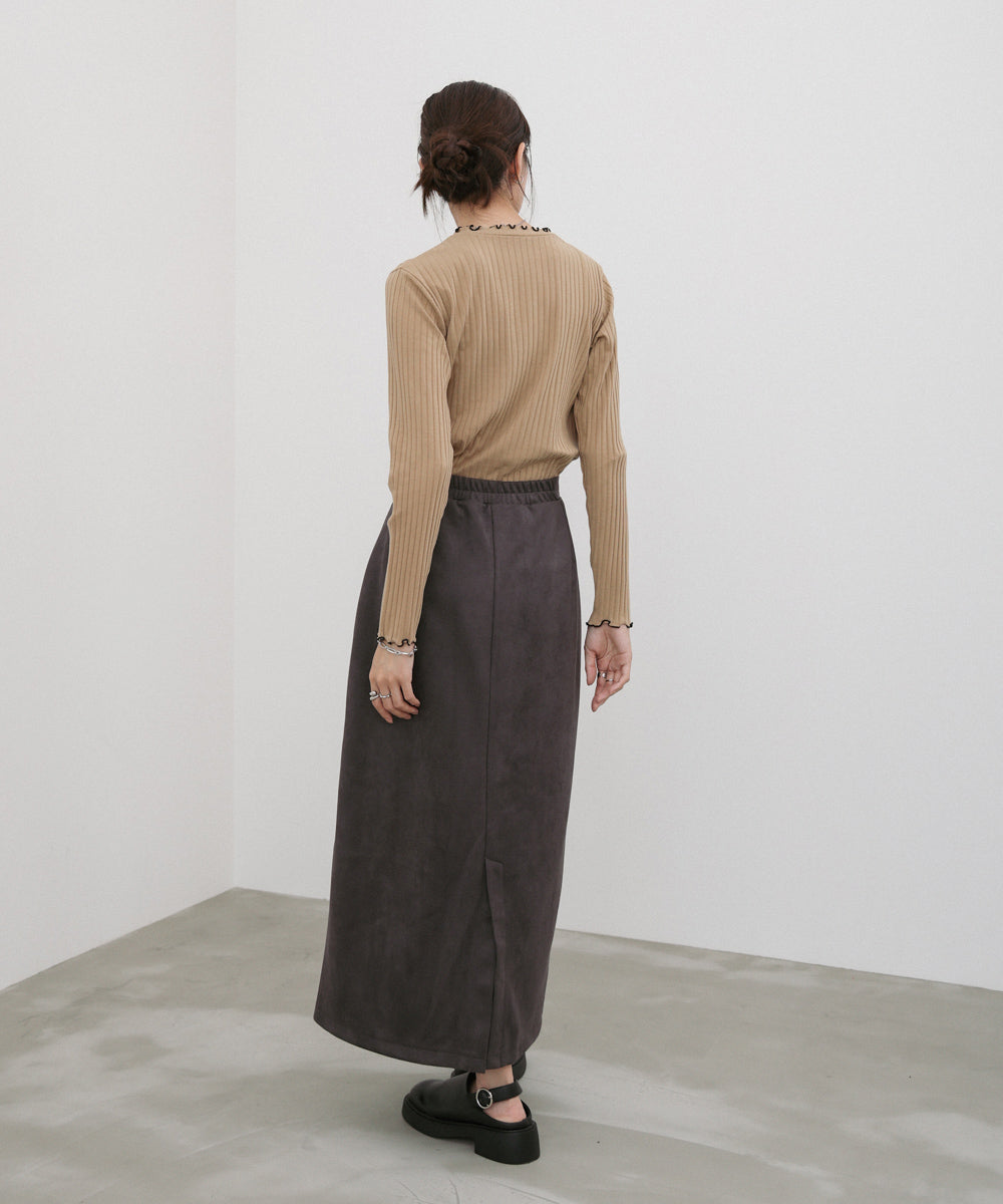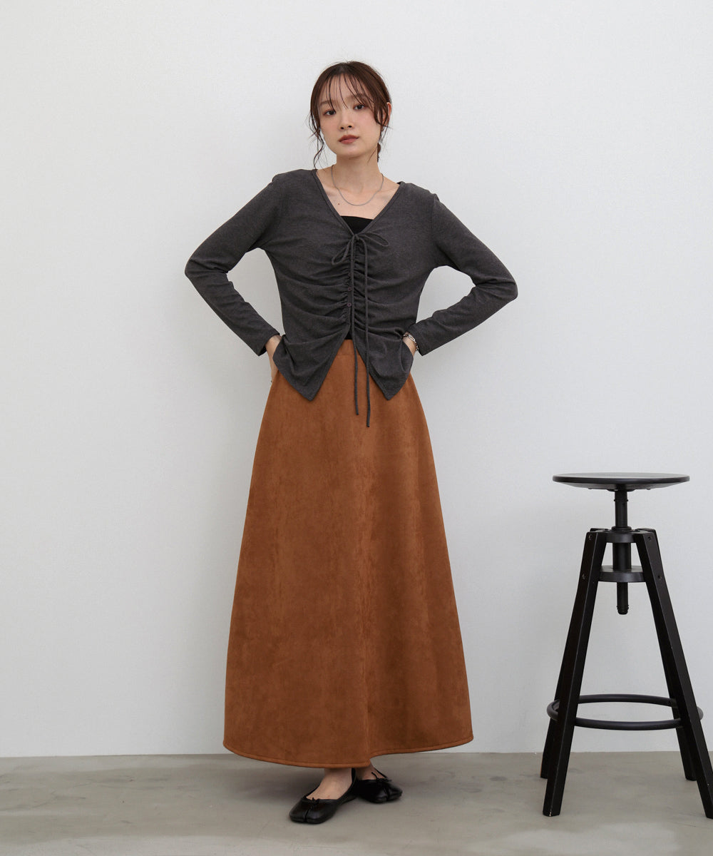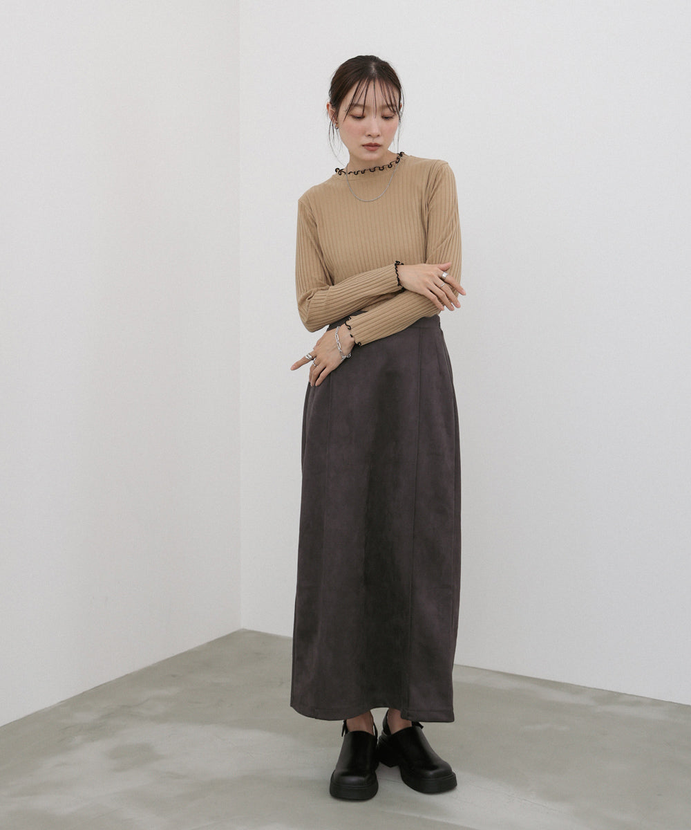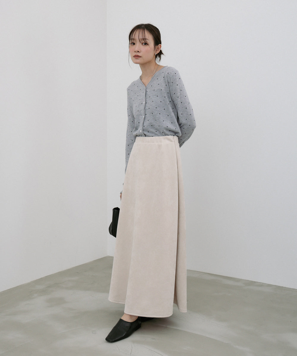 お好きなシルエットを選べるスウェードロングスカートが登場しました!シンプルなデザインになっているので上に、ニットやカットソー、ベストなどどんな形のトップスを持ってきても合うのがポイントです。タイトスカートはカジュアルな一面が、フレアスカートはガーリーな一面が含まれたスカートになっています。表面部分はきちんと感がしっかりとあるのでオンオフ問わずにお使いいただけます。サイズもS/M/Lと幅広くご用意しました。