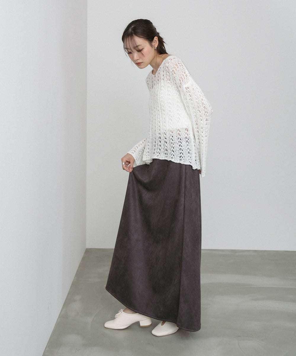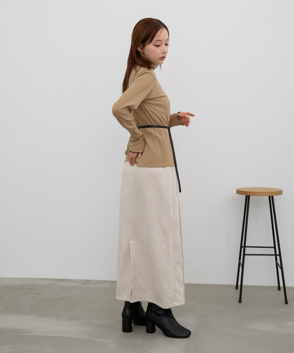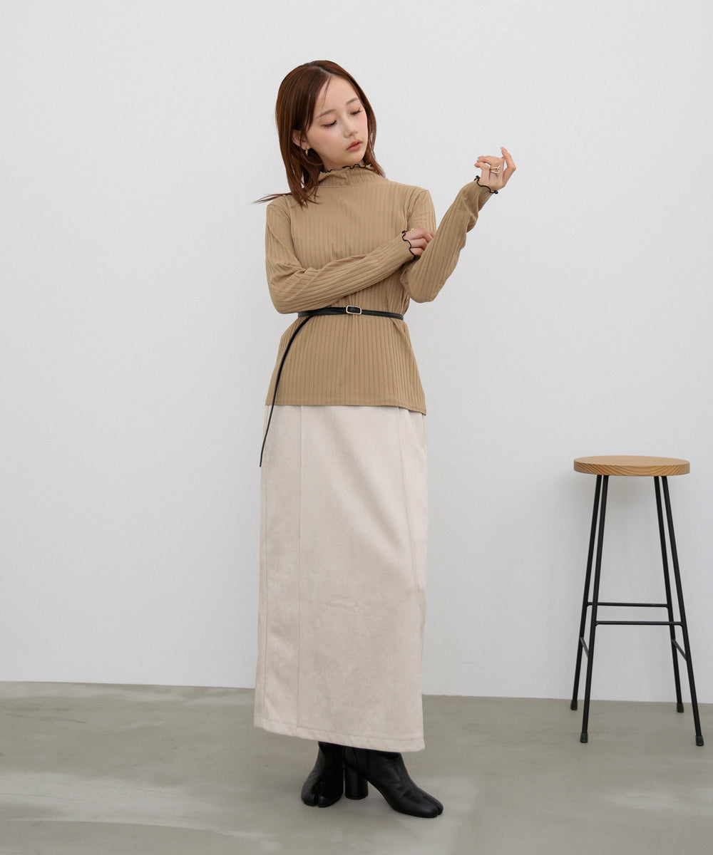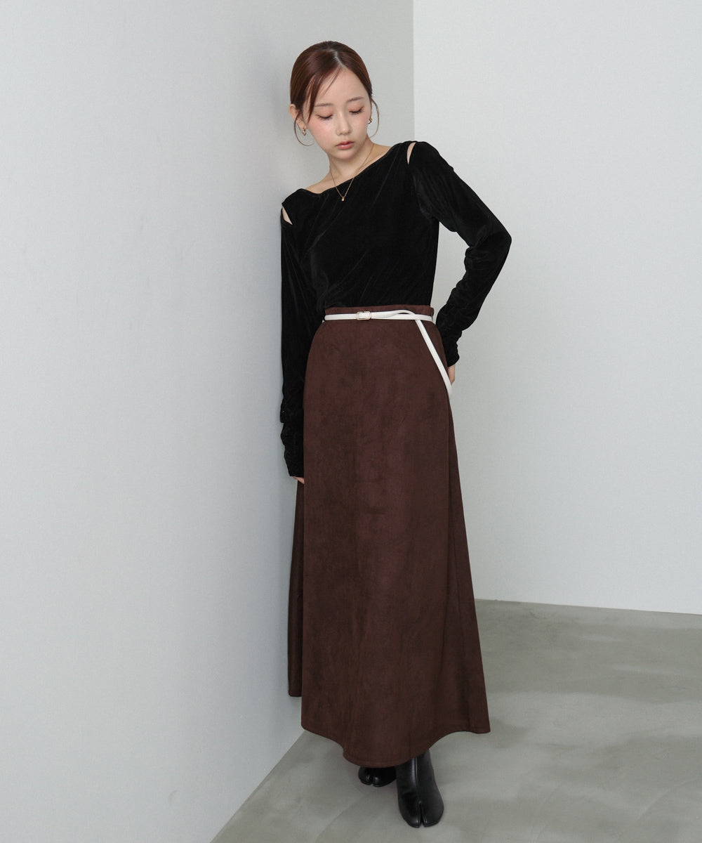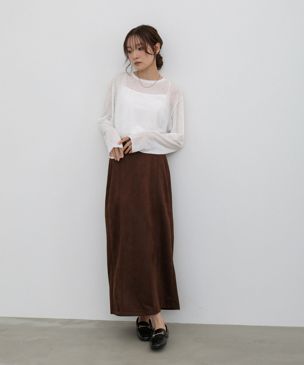 お好きなシルエットを選べるスウェードロングスカートが登場しました!シンプルなデザインになっているので上に、ニットやカットソー、ベストなどどんな形のトップスを持ってきても合うのがポイントです。タイトスカートはカジュアルな一面が、フレアスカートはガーリーな一面が含まれたスカートになっています。表面部分はきちんと感がしっかりとあるのでオンオフ問わずにお使いいただけます。サイズもS/M/Lと幅広くご用意しました。