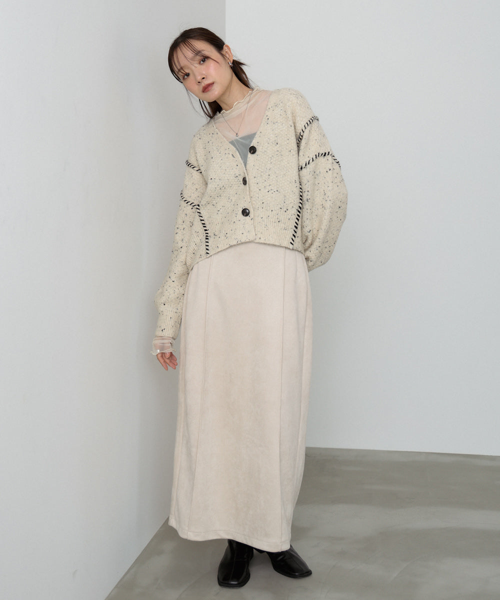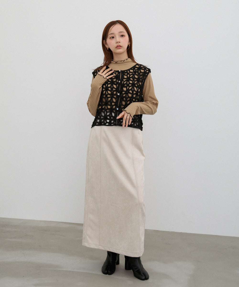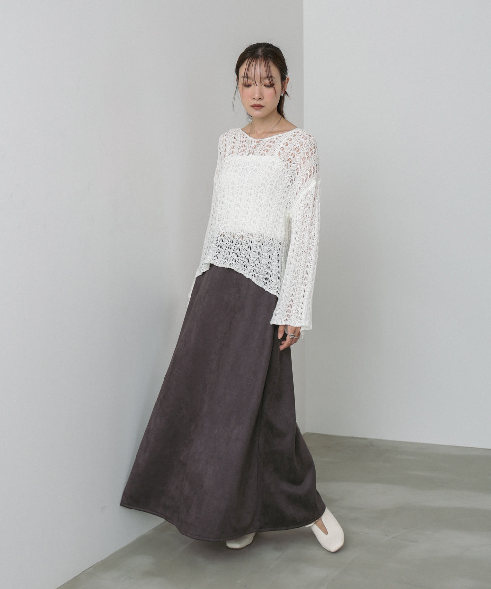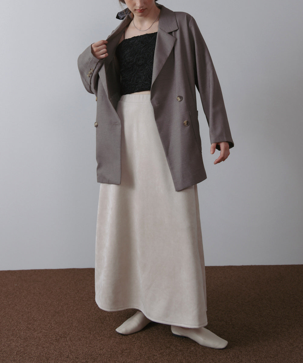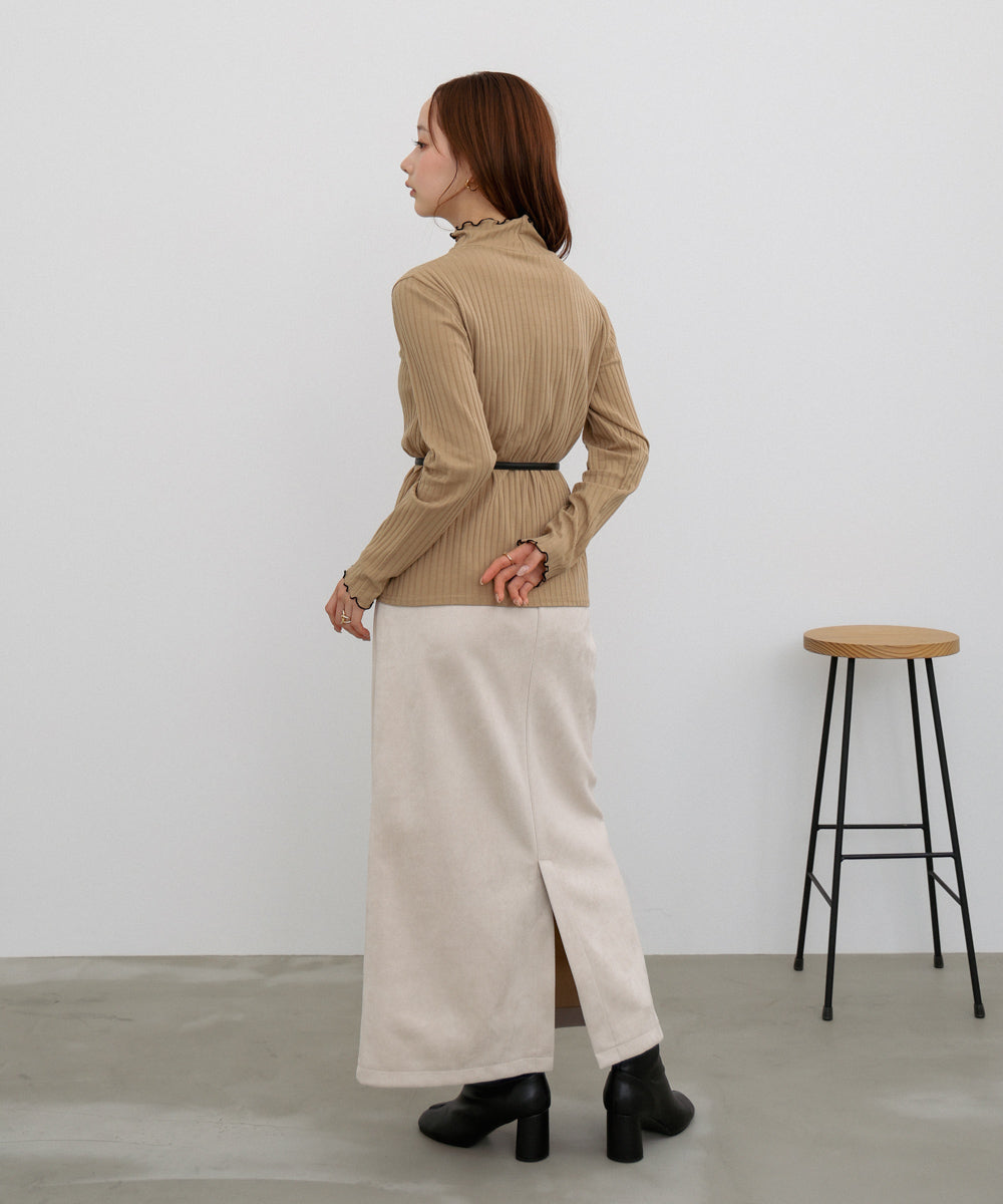 お好きなシルエットを選べるスウェードロングスカートが登場しました!シンプルなデザインになっているので上に、ニットやカットソー、ベストなどどんな形のトップスを持ってきても合うのがポイントです。タイトスカートはカジュアルな一面が、フレアスカートはガーリーな一面が含まれたスカートになっています。表面部分はきちんと感がしっかりとあるのでオンオフ問わずにお使いいただけます。サイズもS/M/Lと幅広くご用意しました。