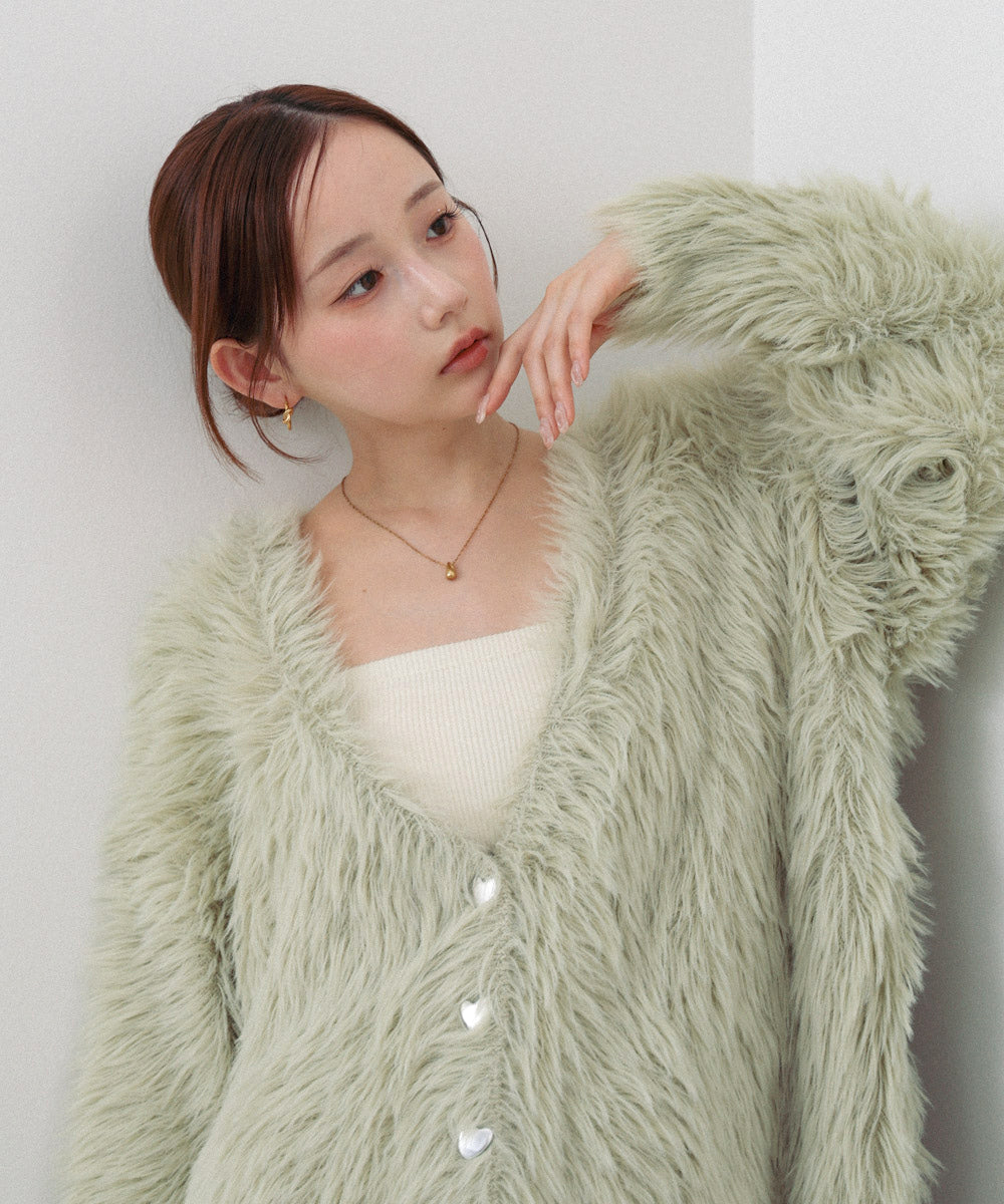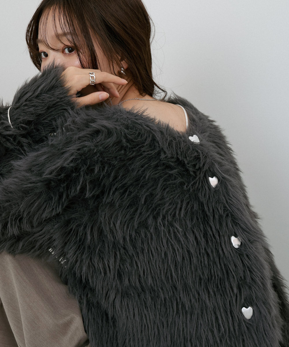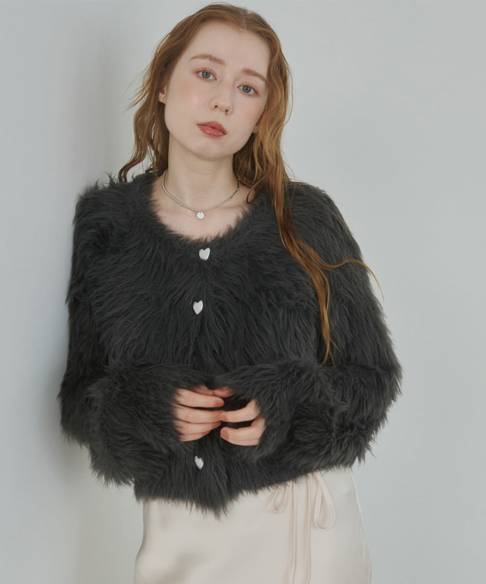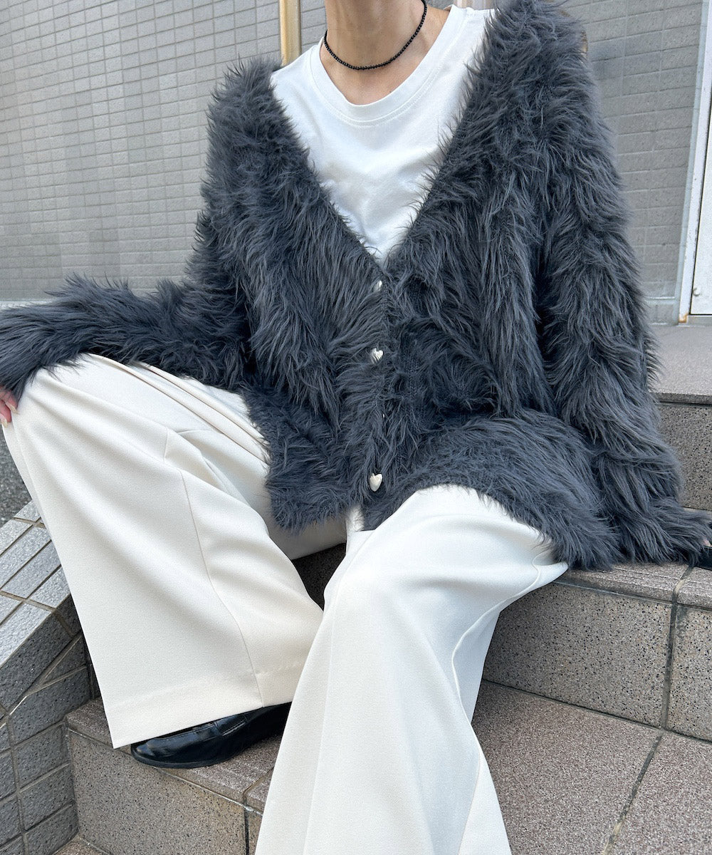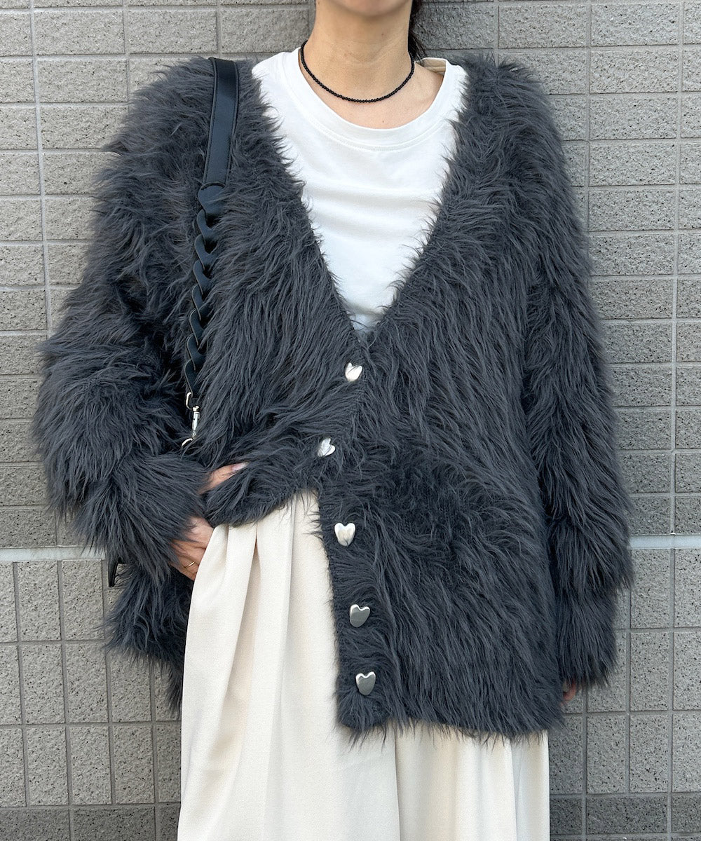 【選べる着丈】前後2WAYハートボタンシャギーニットカーディガン