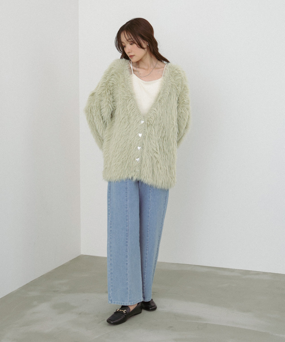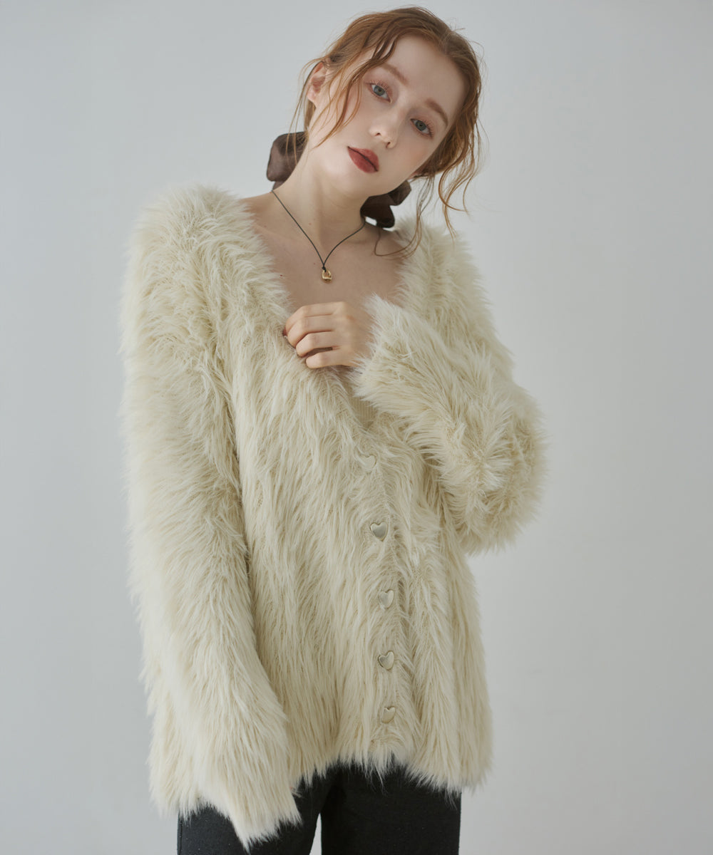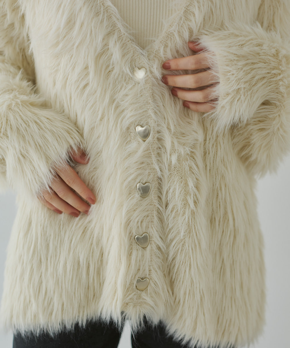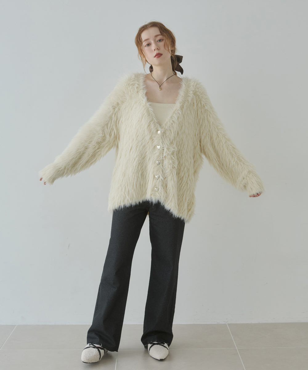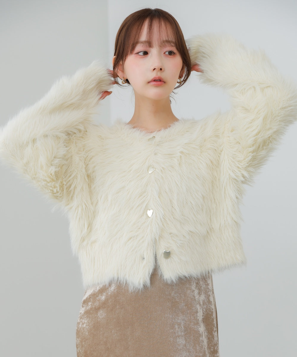 【選べる着丈】前後2WAYハートボタンシャギーニットカーディガン