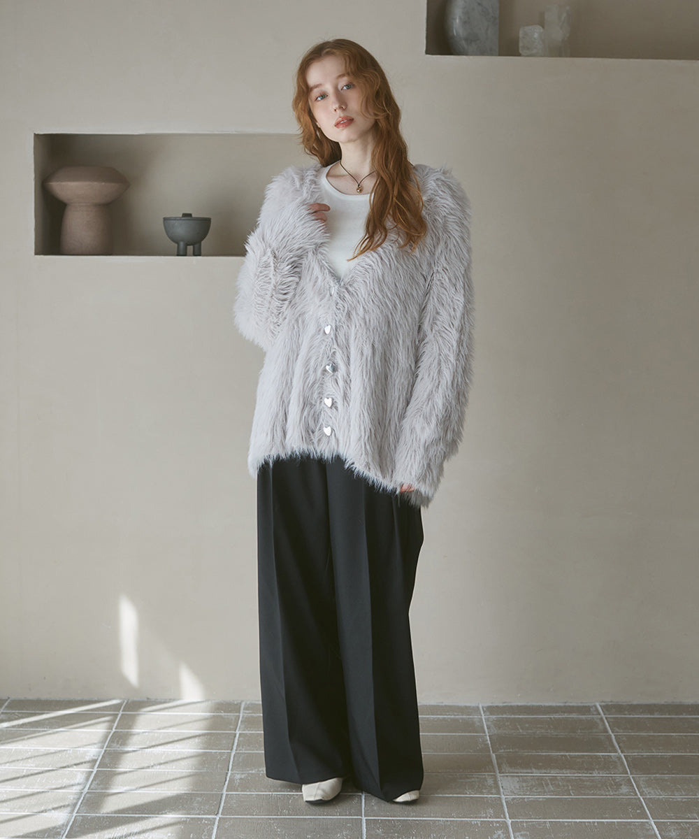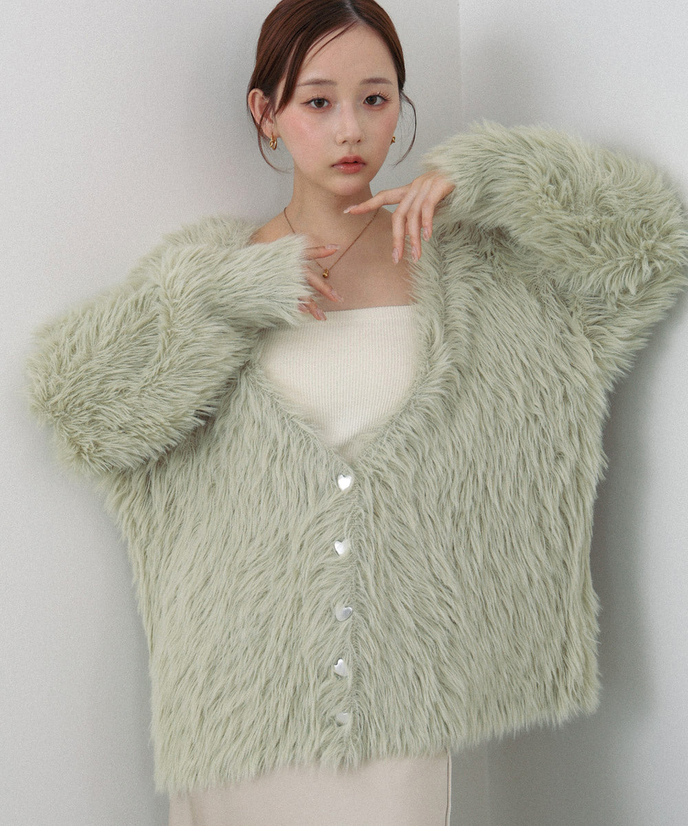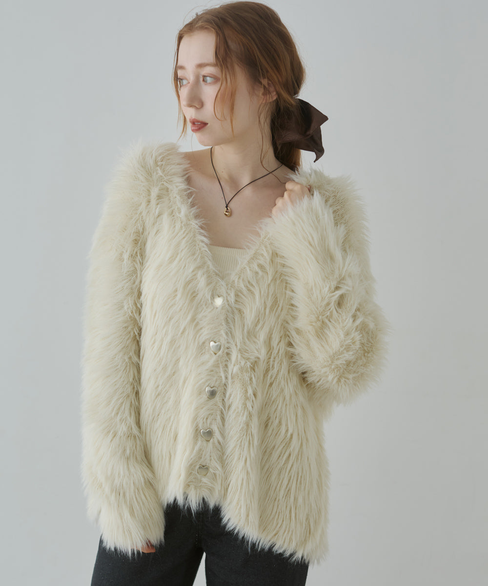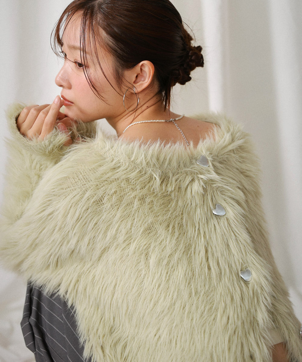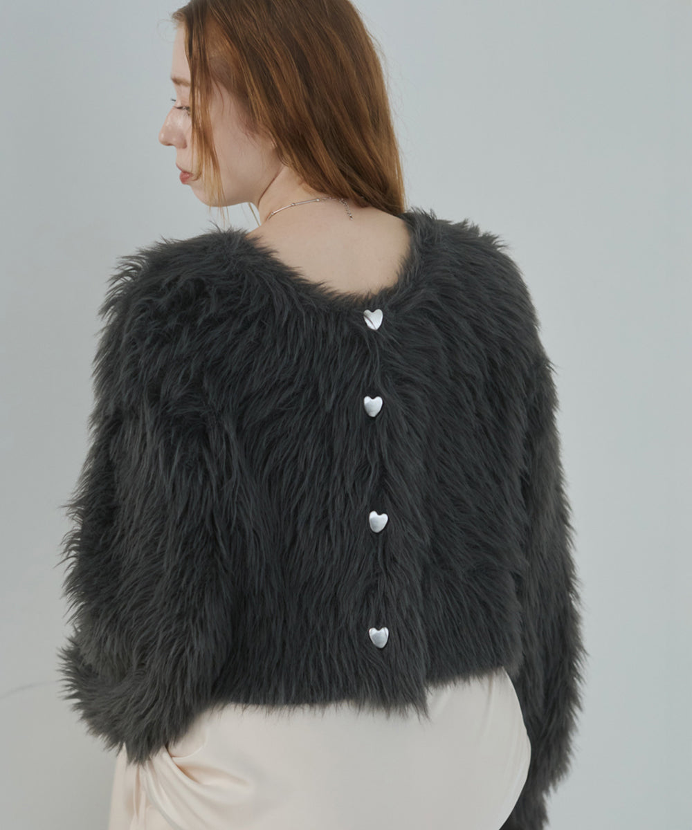 【選べる着丈】前後2WAYハートボタンシャギーニットカーディガン