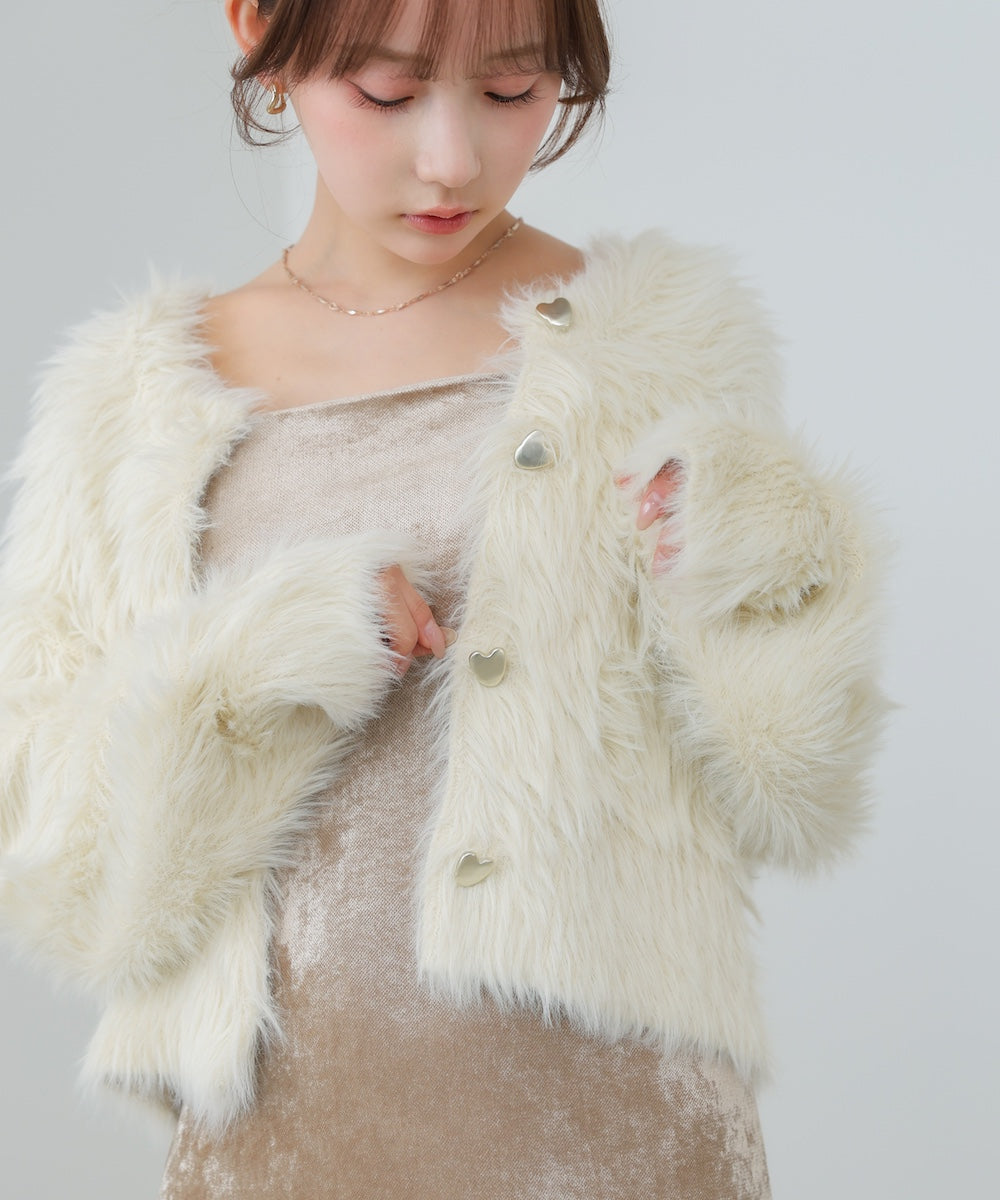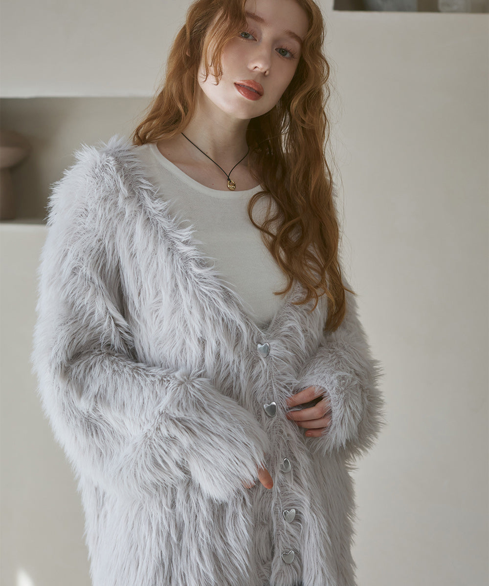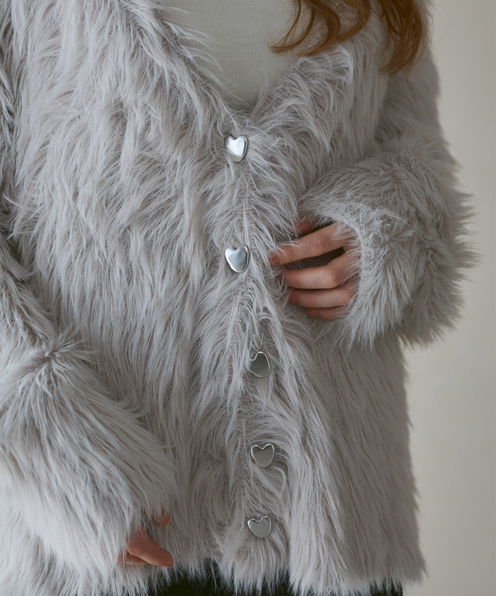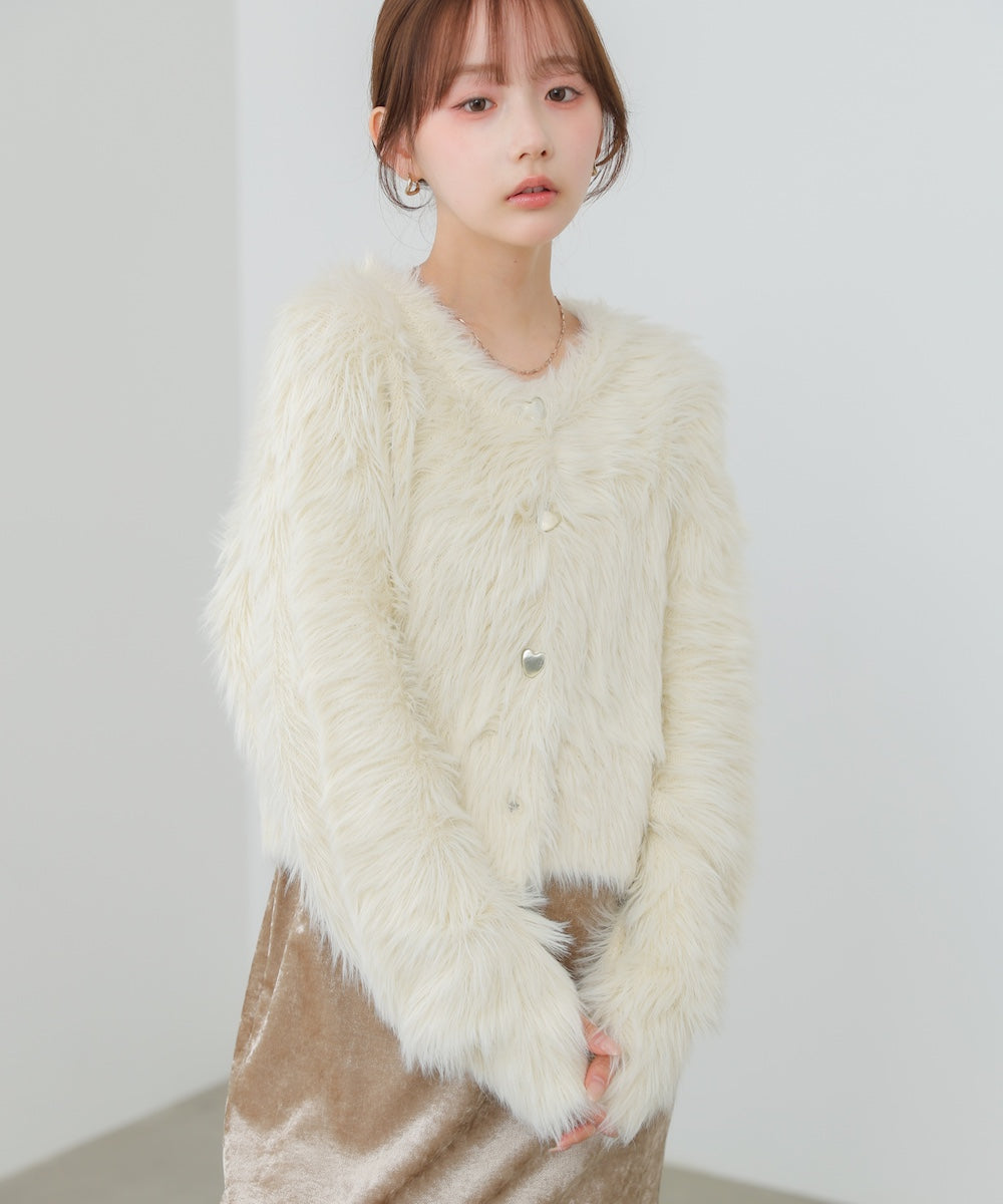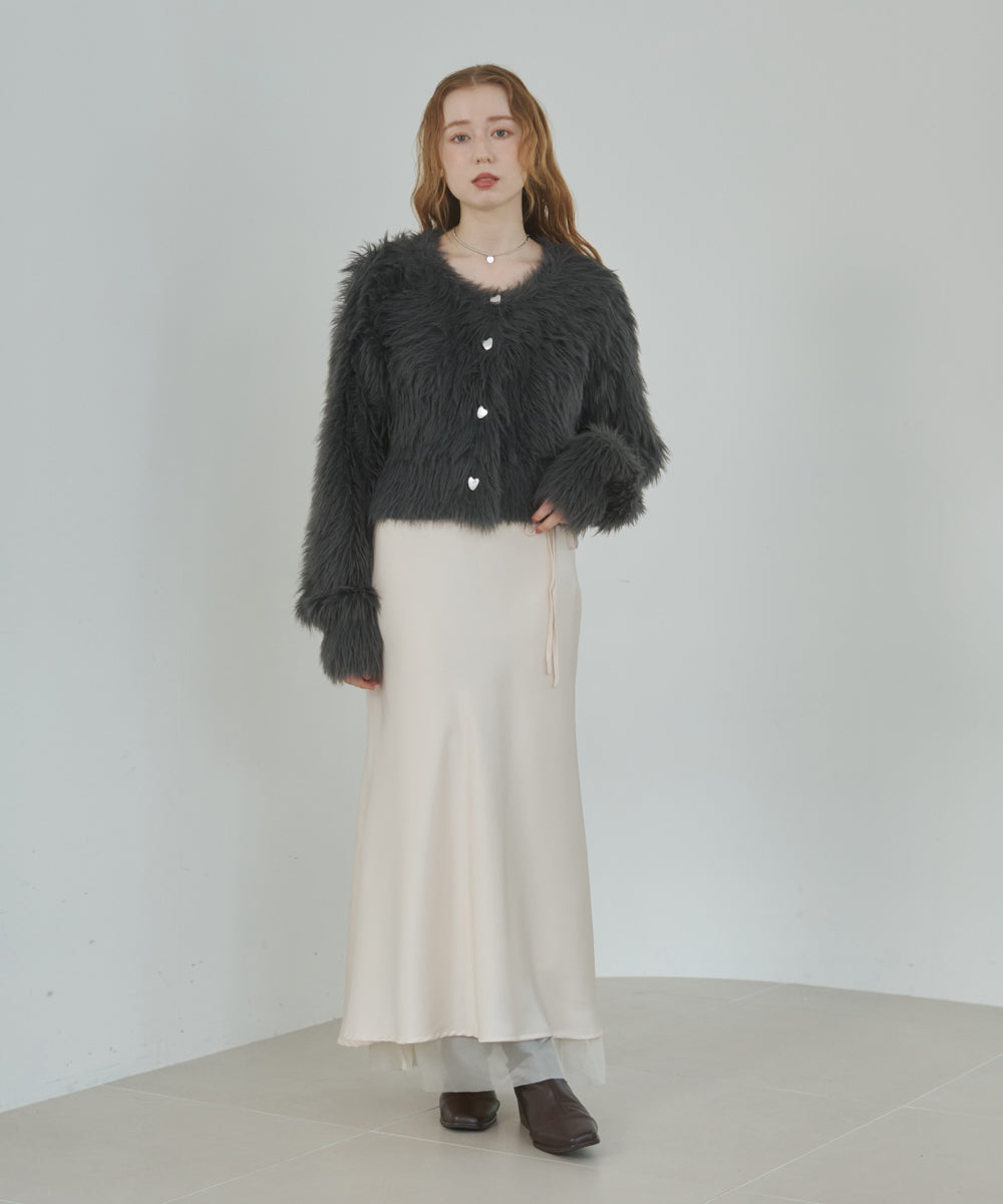 【選べる着丈】前後2WAYハートボタンシャギーニットカーディガン