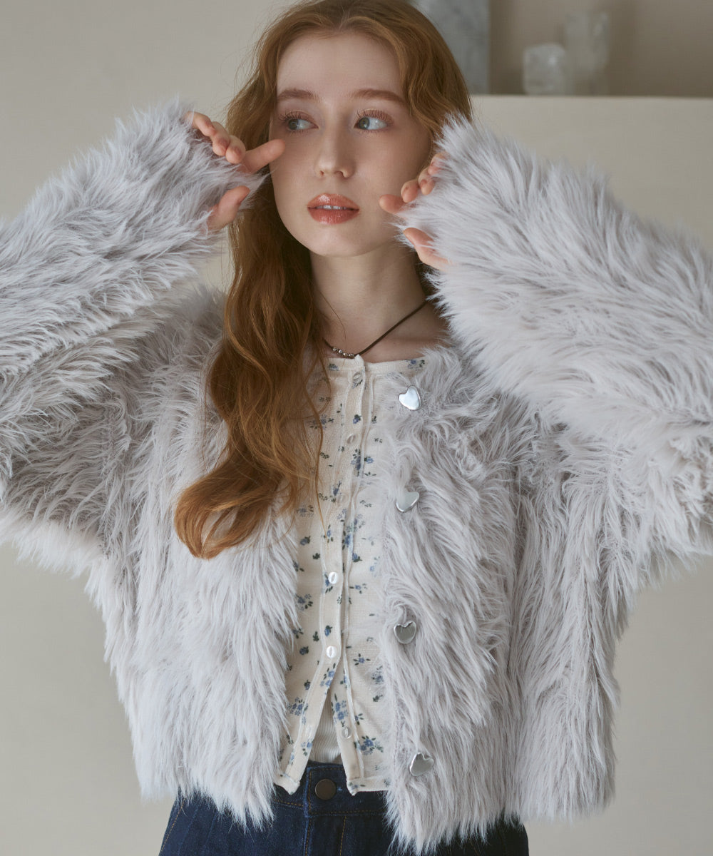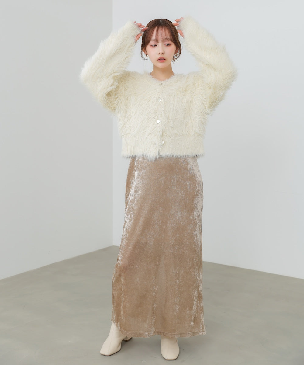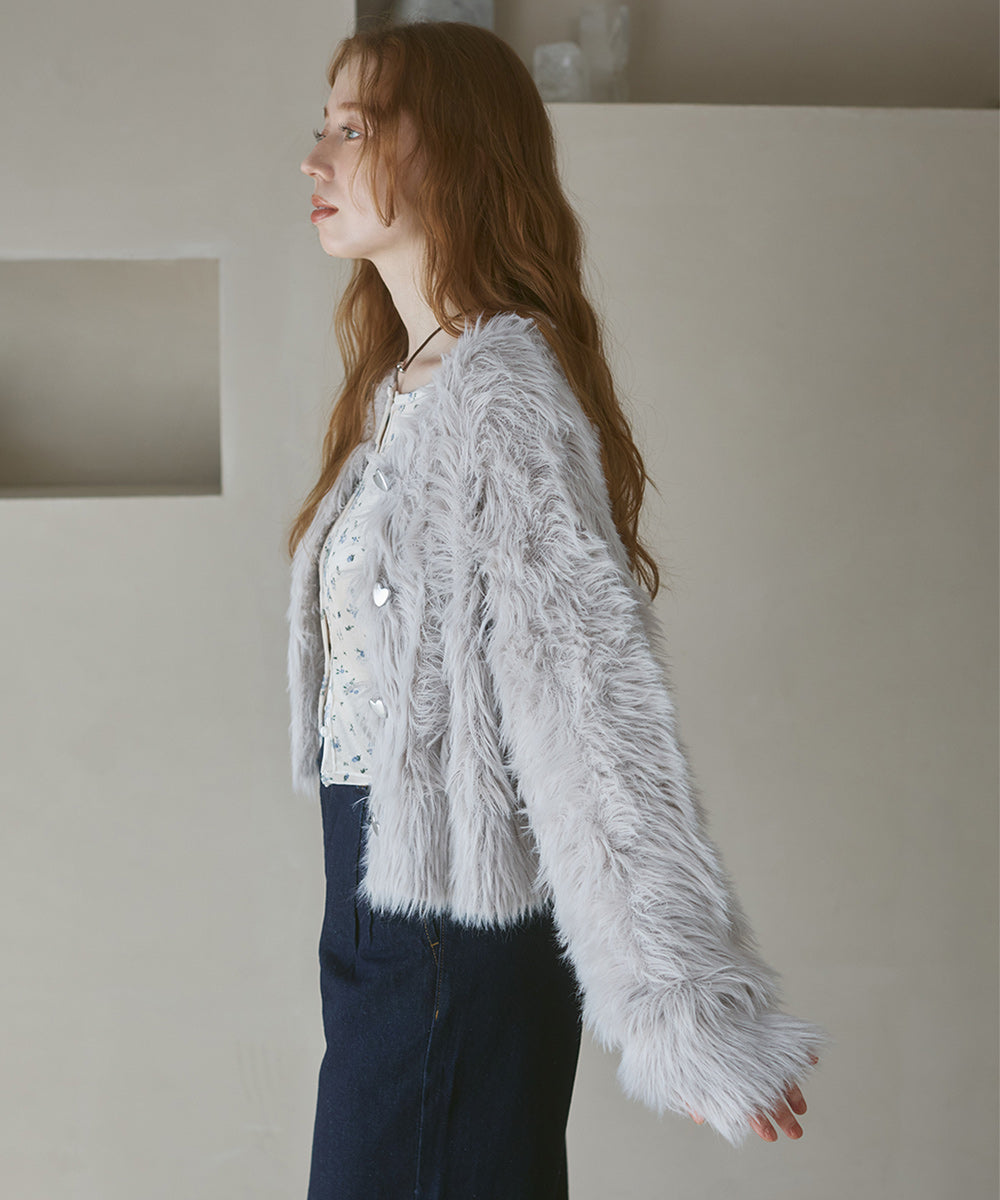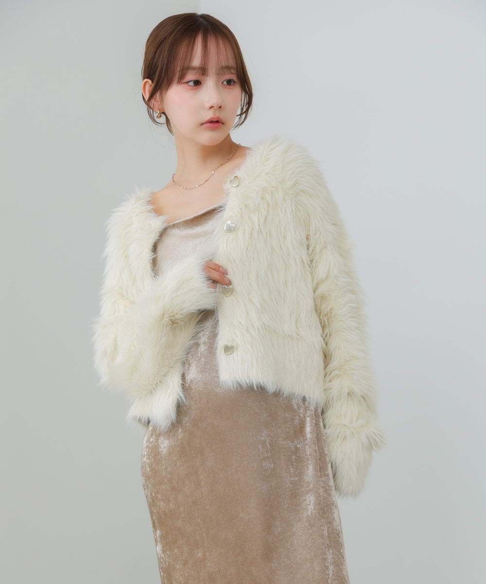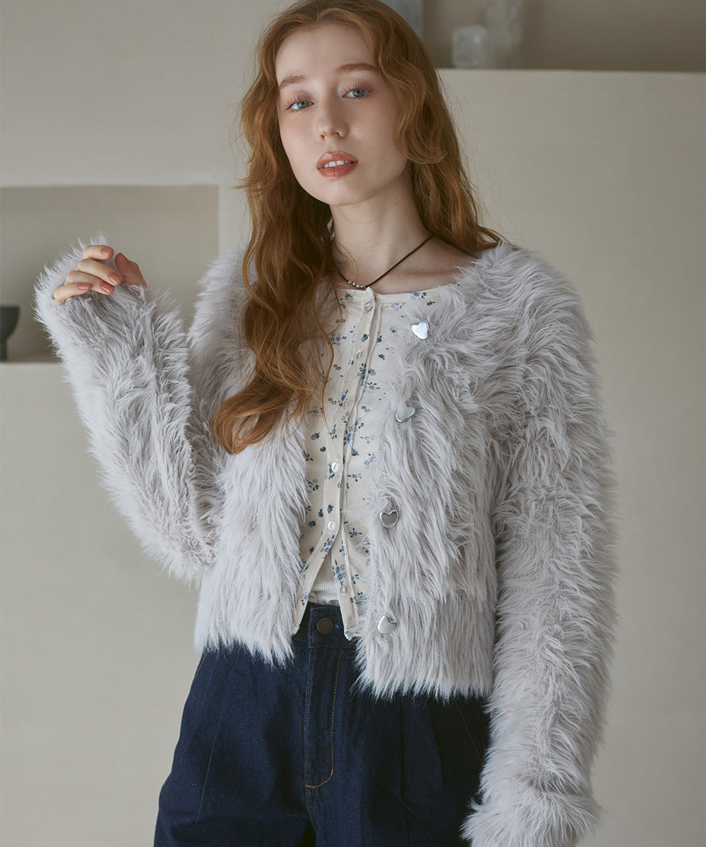 【選べる着丈】前後2WAYハートボタンシャギーニットカーディガン