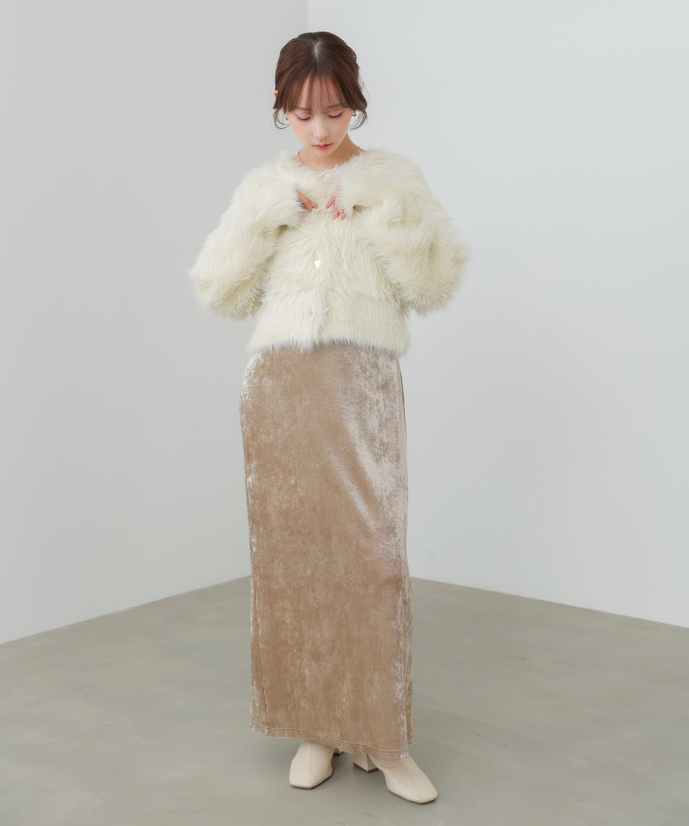 ショート丈はベロアのキャミワンピースやハイウエストのデニムなどがおすすめです。ミドル丈はサテンスカートやニットスカートなどフェミニンな組み合わせ同士が相性◎です。