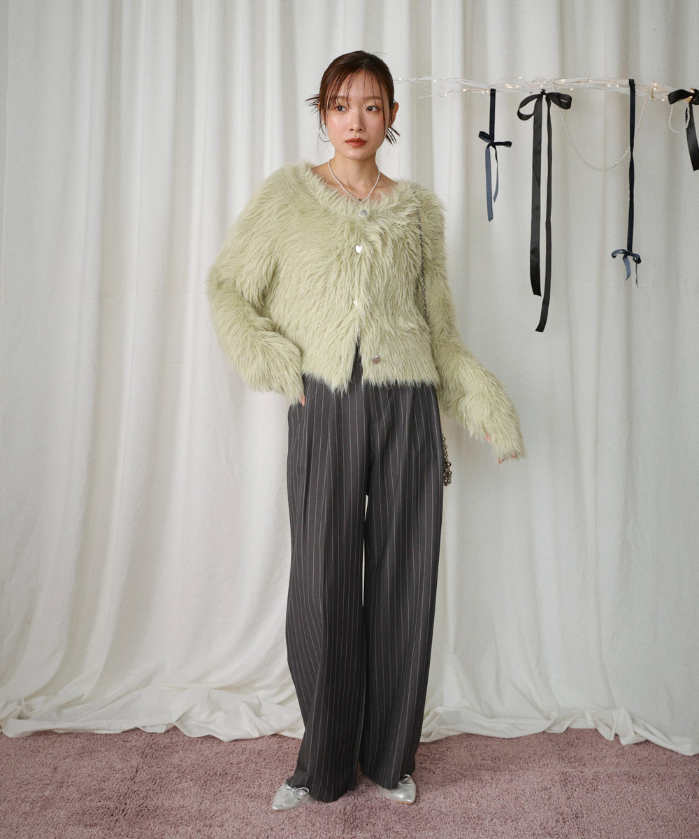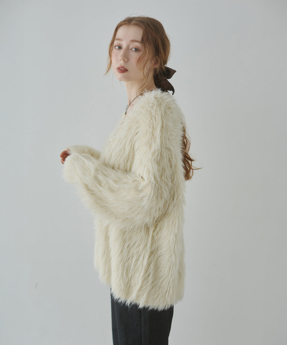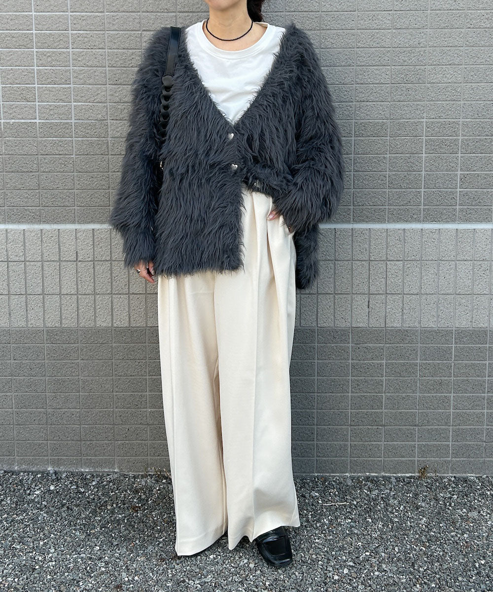 ふわっと柔らかく、高級感のある着心地のいいシャギーカーディガンです。