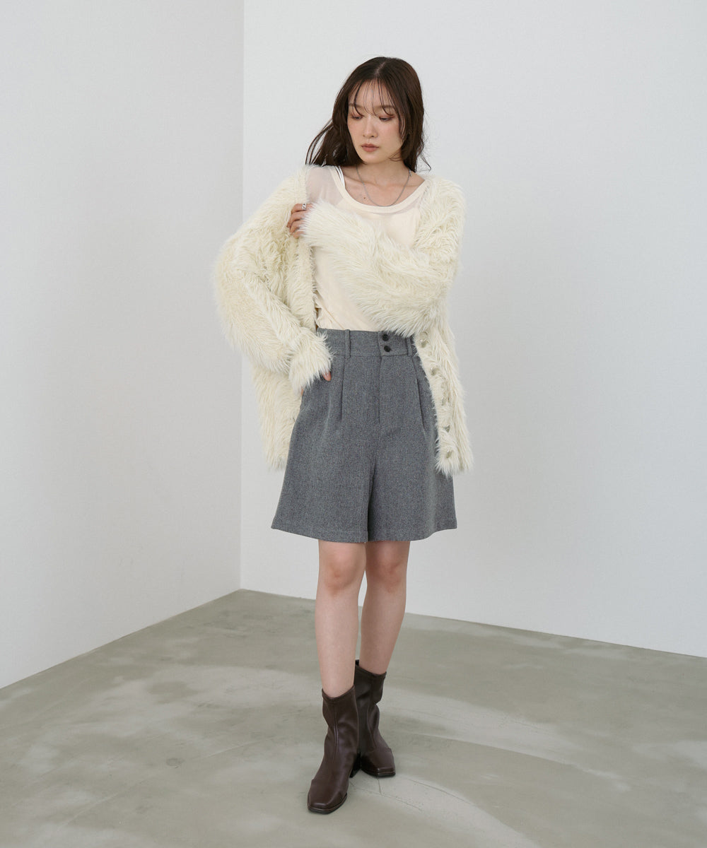 着丈が選べる万能シャギーニットカーディガンが登場です!ボタン部分はハートになっていてガーリーな一面もあるカーディガンは、この秋冬大活躍すること間違いなしです。アイボリーのみボタン部分がゴールドに、そのほかのカラーはシルバーになっています。ふわっとしていて暖かいシャギーが着るだけでフェミニンな印象を与えます。ショート丈はUネックに、ミドル丈はVネックとどちらも華奢見えするようなデザインになっています。また、ショート丈の方はサムホールがついているため袖が長すぎる問題を解消してくれます。