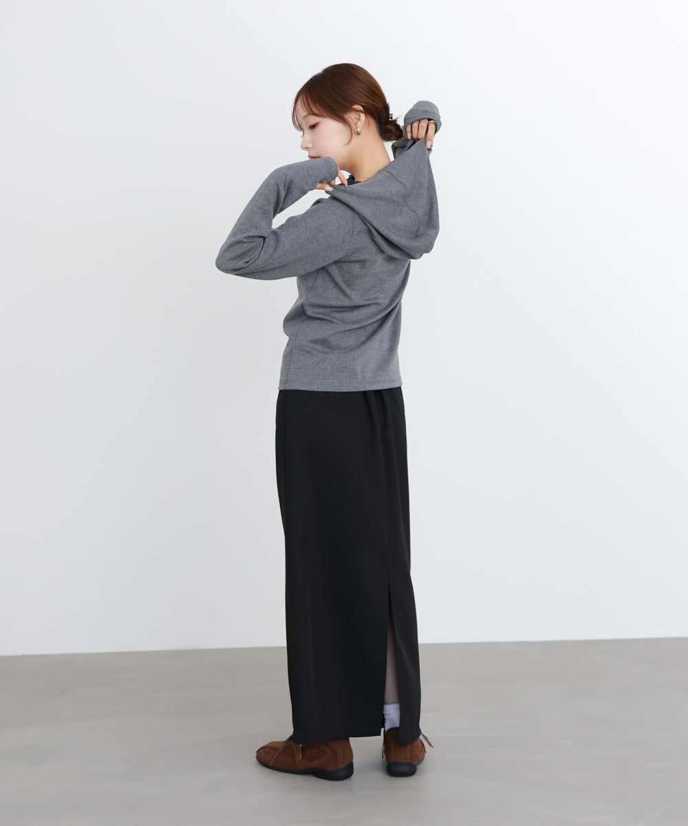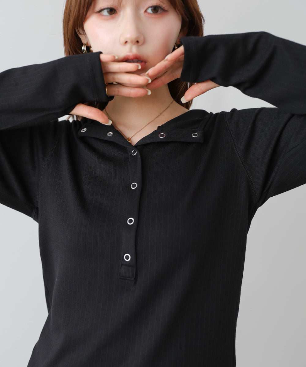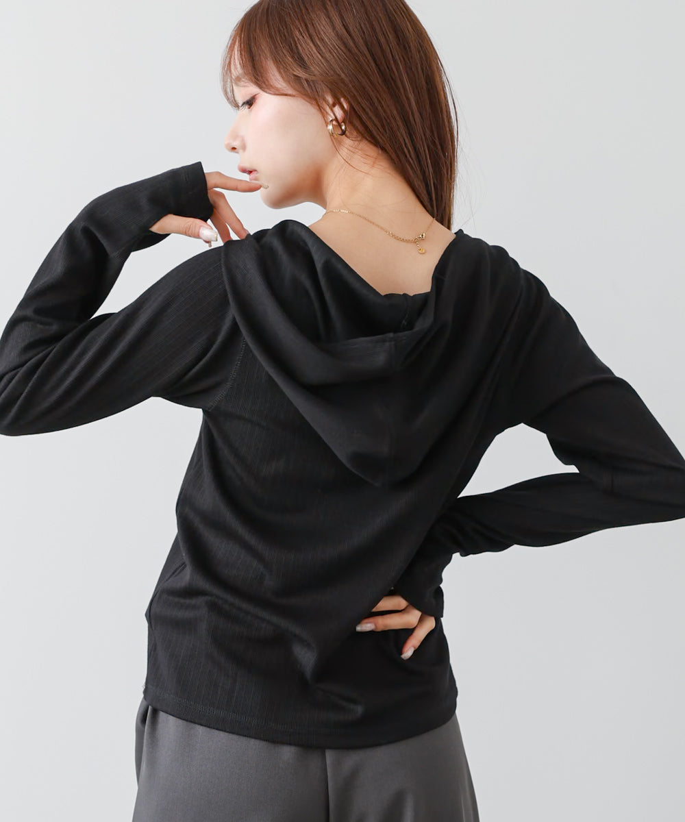 リブフーディーサムホール付カットトップス