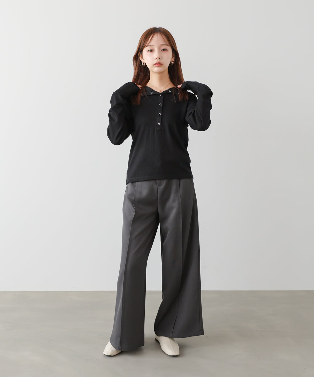 襟付きリブ切替サイドドロストニットトップス