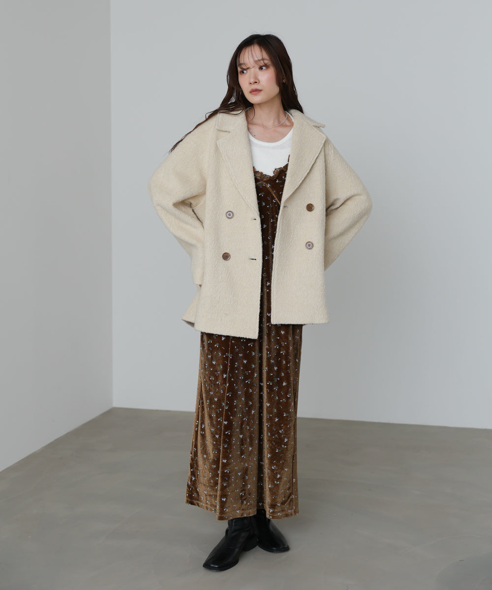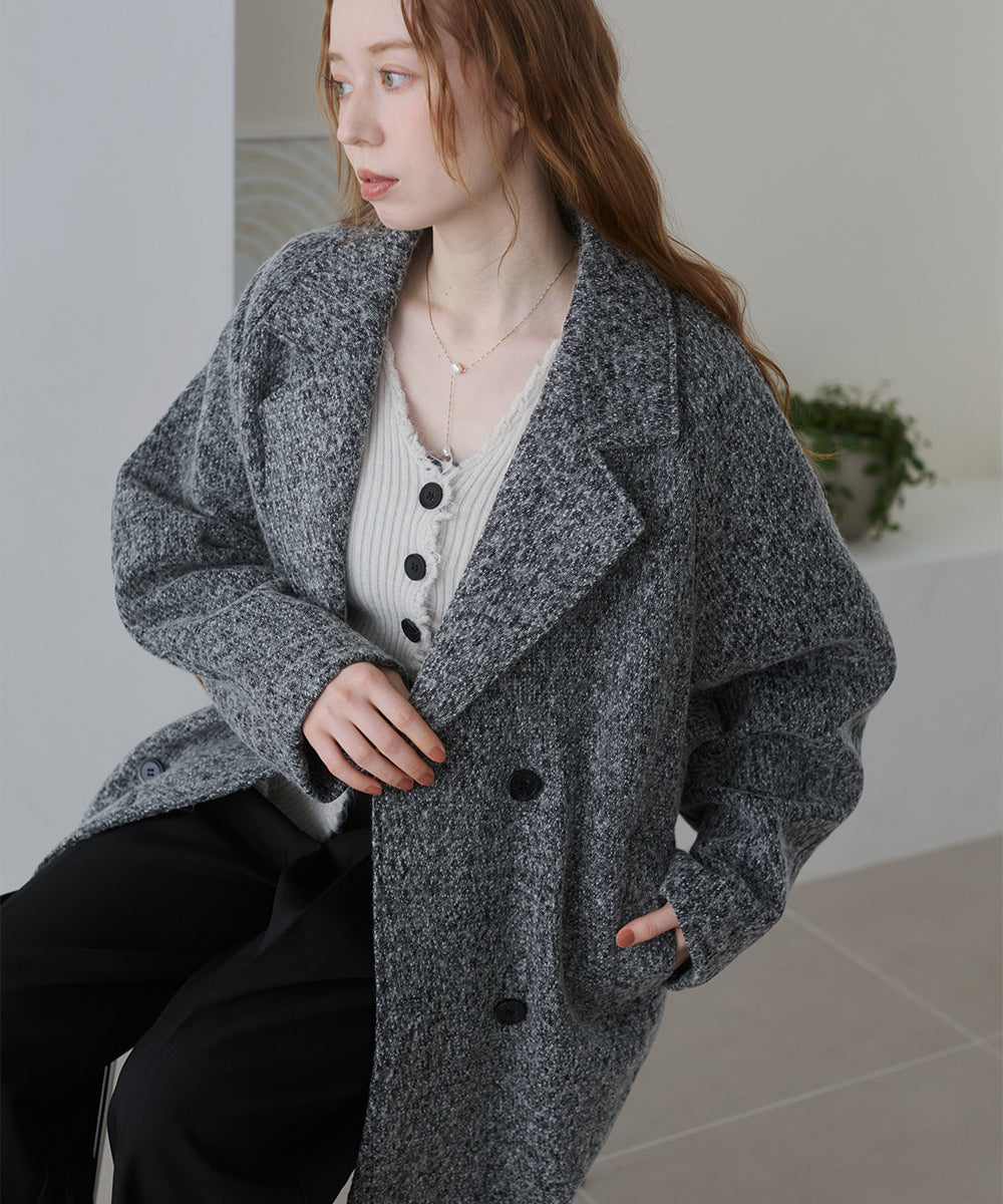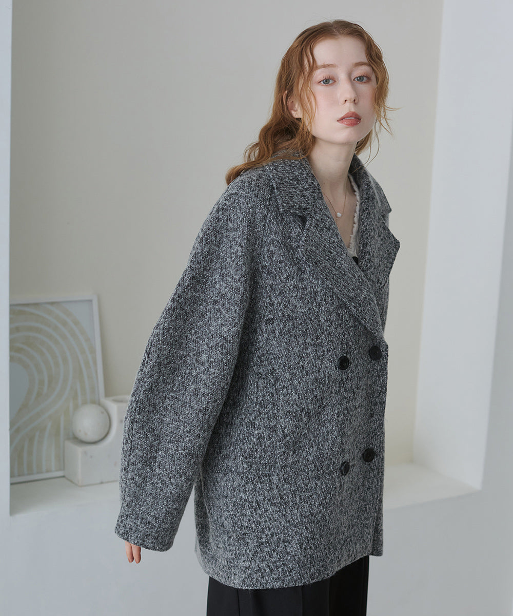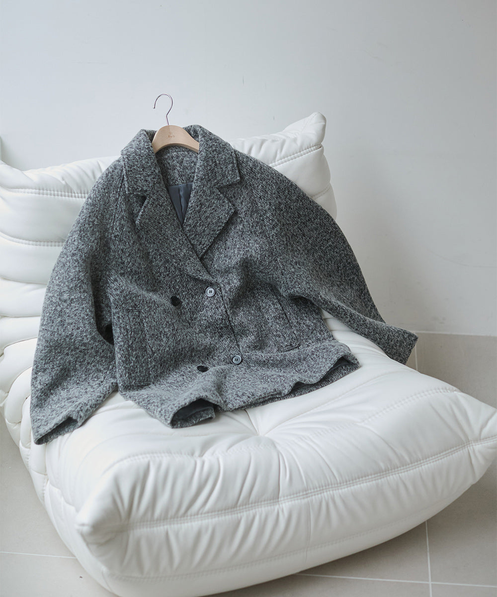 ゆったりとしたシルエットに、袖のデザインがアクセントになったハーフ丈コート。ざっくりと開いたVネックが顔まわりをすっきり見せ、女性らしい抜け感をプラスします。左右対称に並んだ4つのボタンがクラシカルな印象を引き立て、上品さと可愛らしさを両立。通勤にも休日のお出かけにも活躍する、秋冬の万能アウターです。