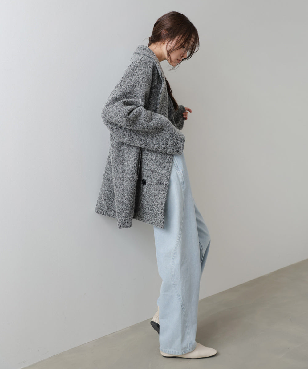 【選べる着丈】前後2WAYハートボタンシャギーニットカーディガン