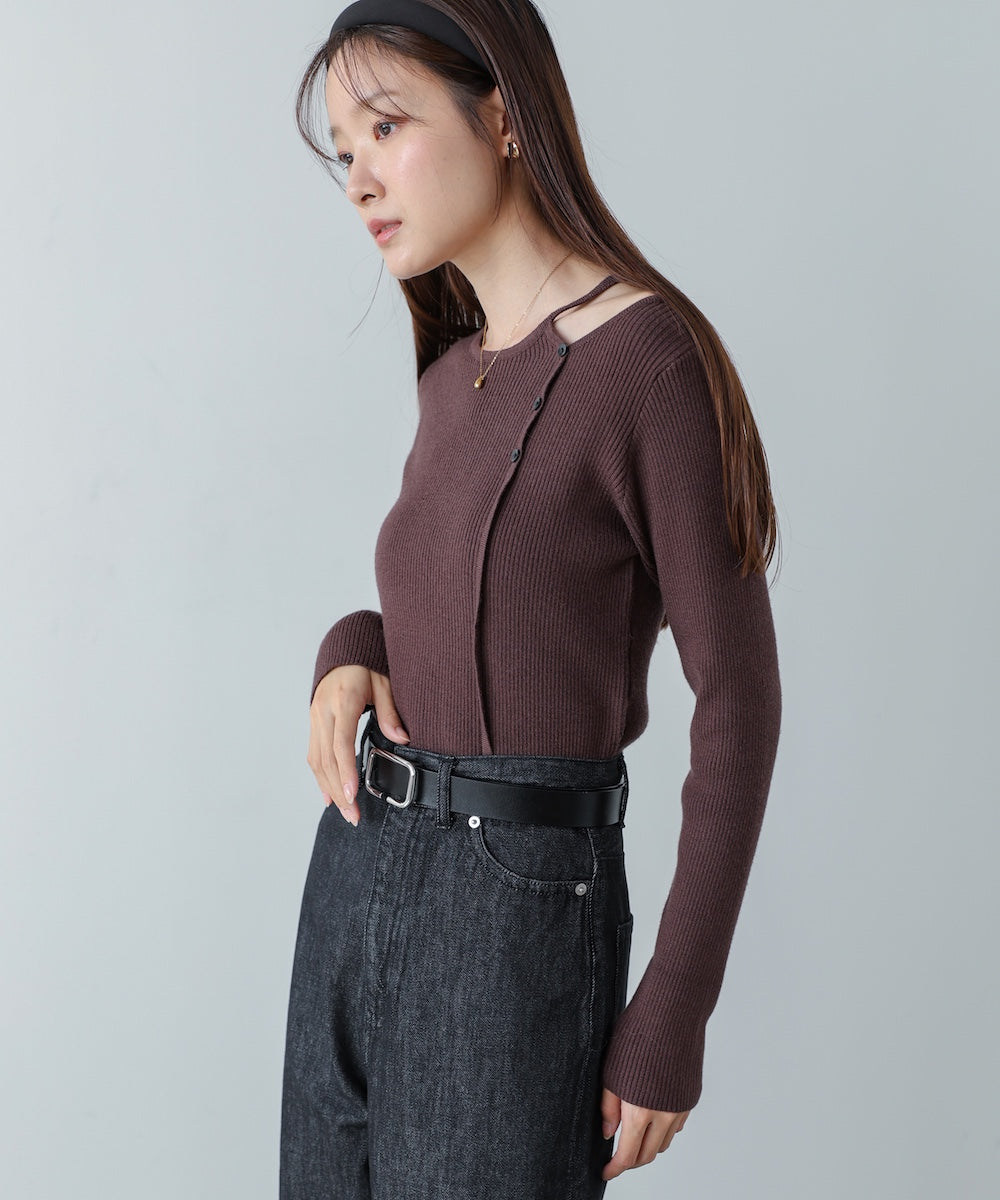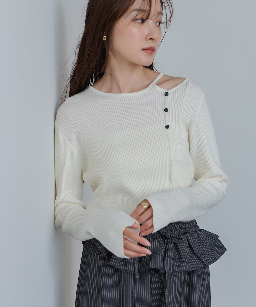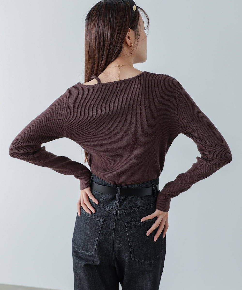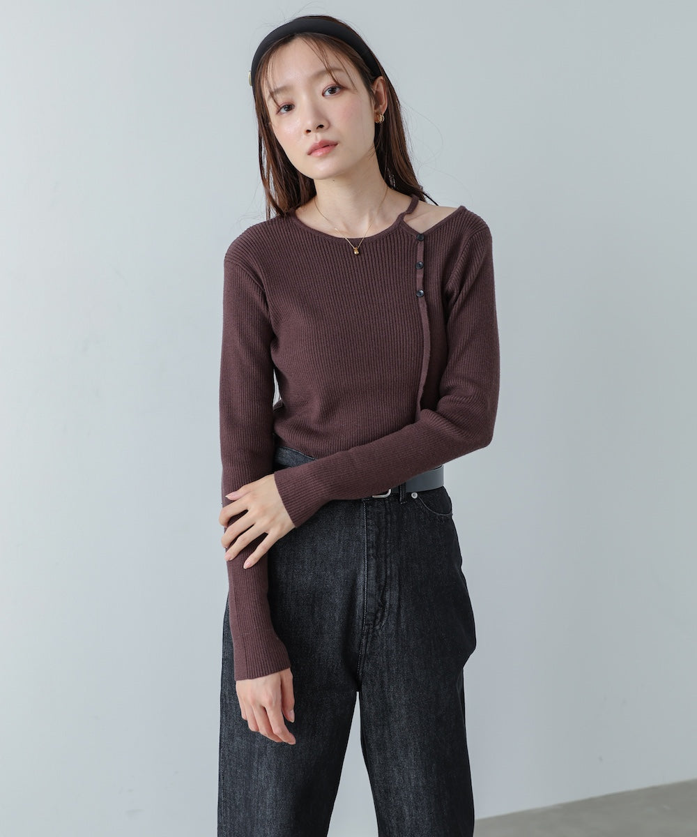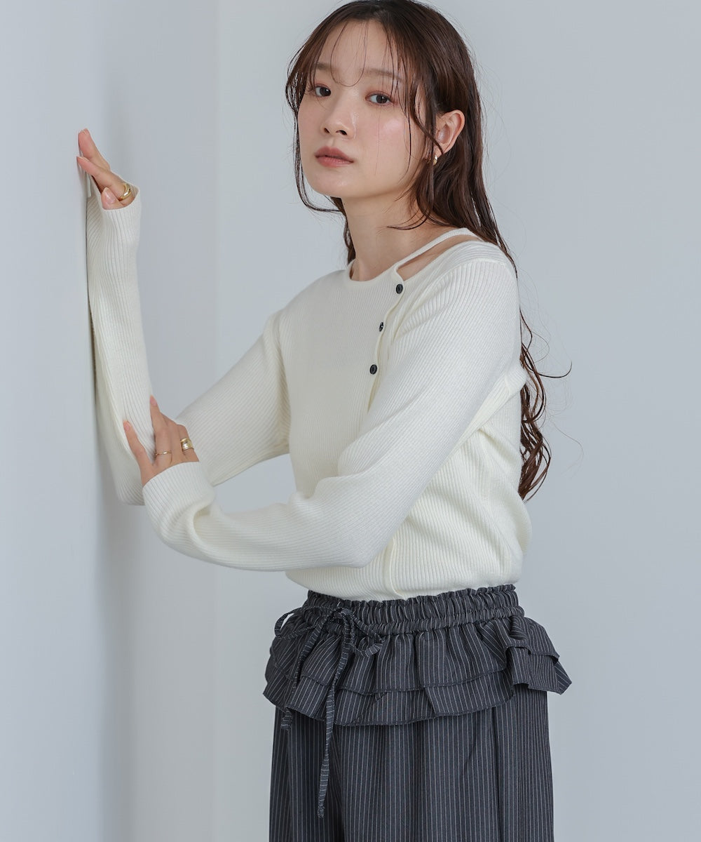 ショルダースリットニットトップス