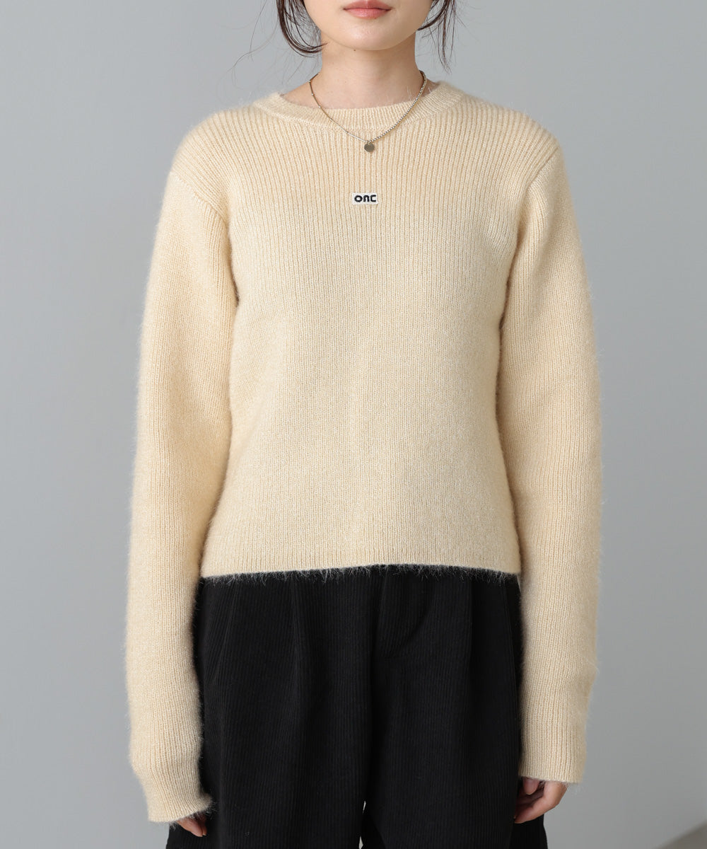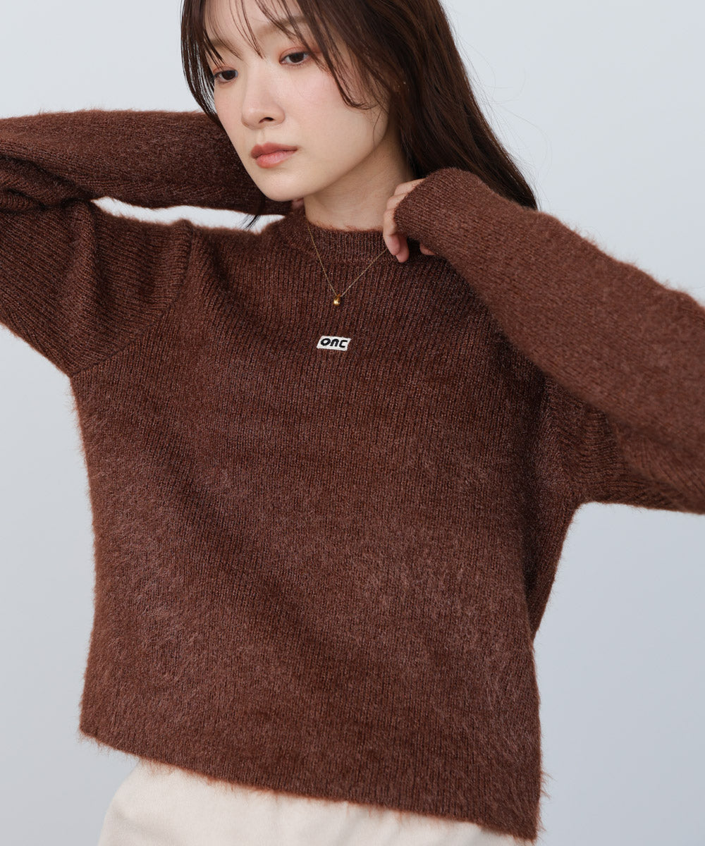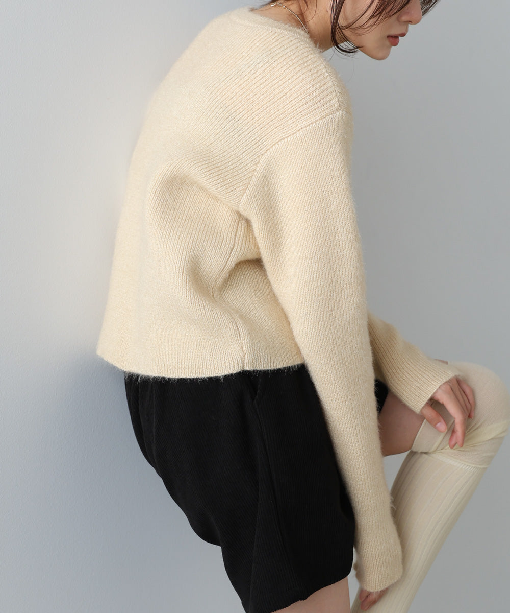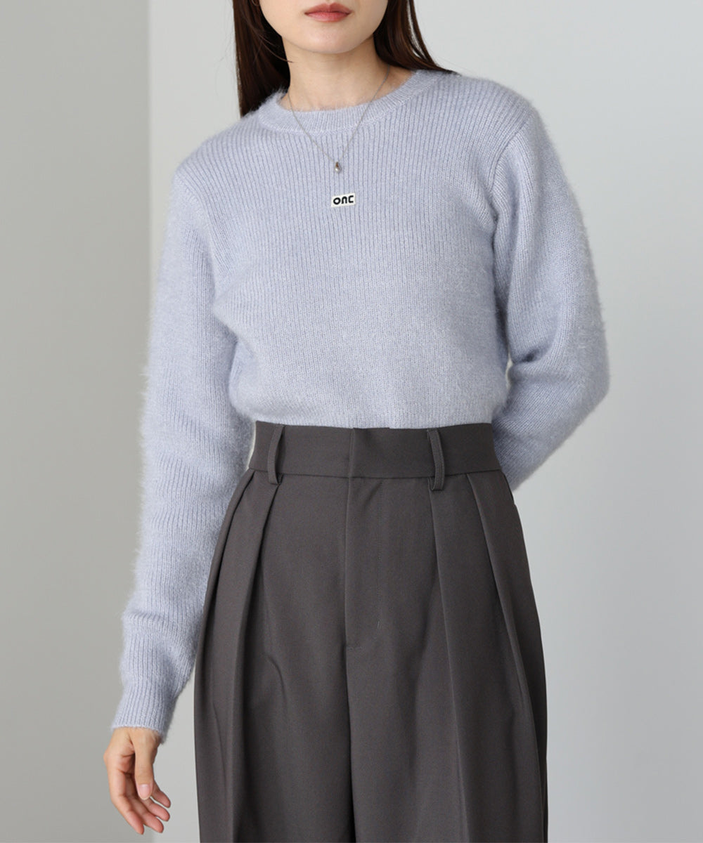 ふわっとしたシャギーの質感に、さりげないラメ感が映えるシャイニーニット。光の角度でほのかにきらめく素材が、顔まわりを明るく見せてくれます。短めの丈感でどんなボトムにもバランスよく合わせやすく、大人の抜け感と華やかさを両立した映えニットです。