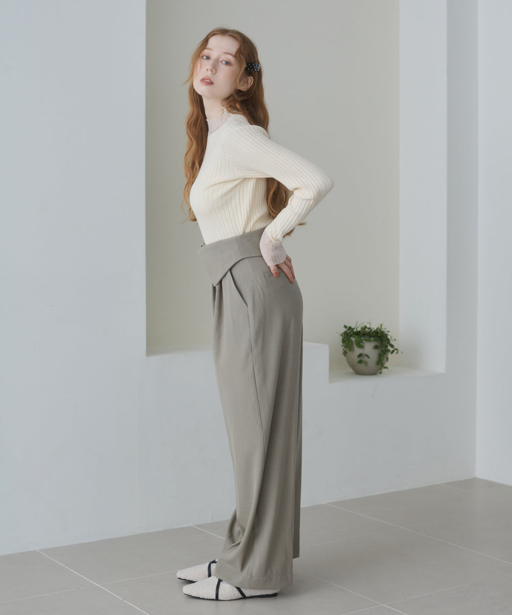 ブラウスやショート丈ニットを合わせて、女性らしいバランスのきれいめコーデに。ジャケットを羽織ればオフィススタイルに、カーディガンを合わせればやわらかいフェミニンムードに。シンプルながらもデザイン性があり、着こなしの主役になるパンツです。