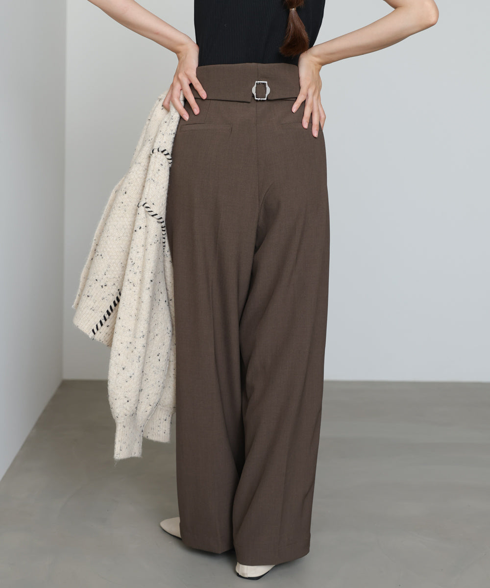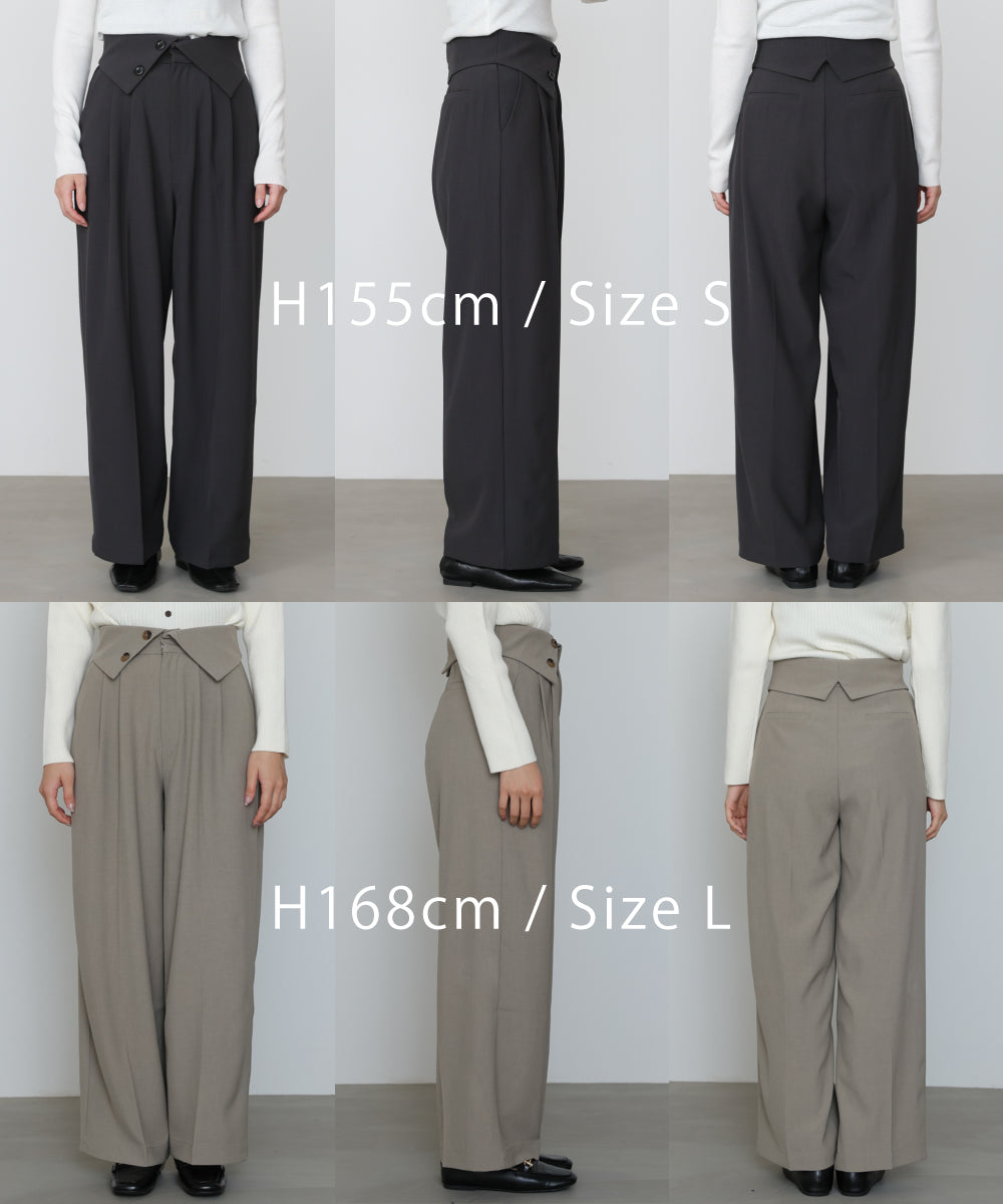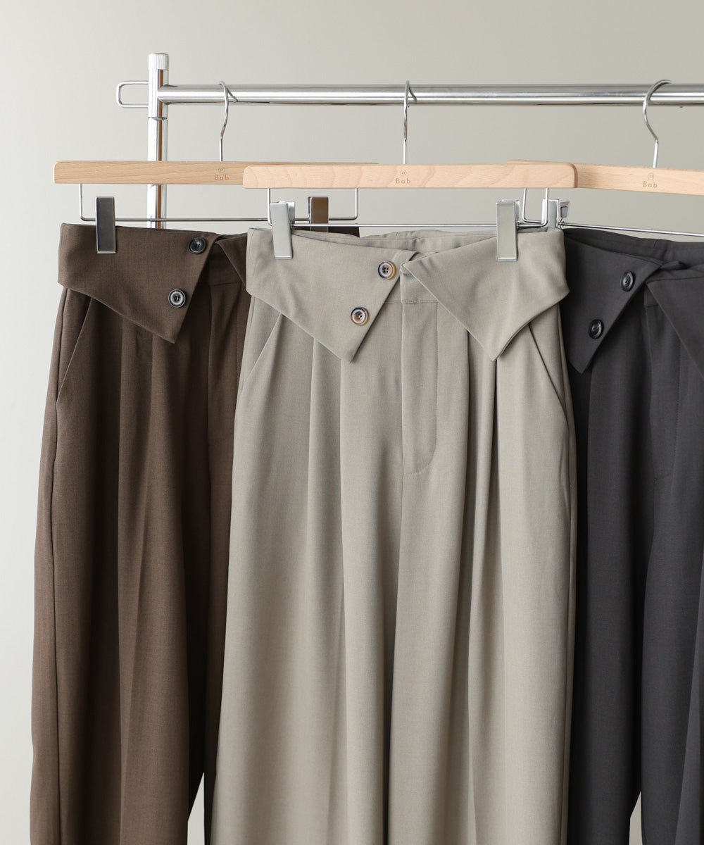 【選べるサイズ展開】ウエストフラップ釦ワイドタックパンツ