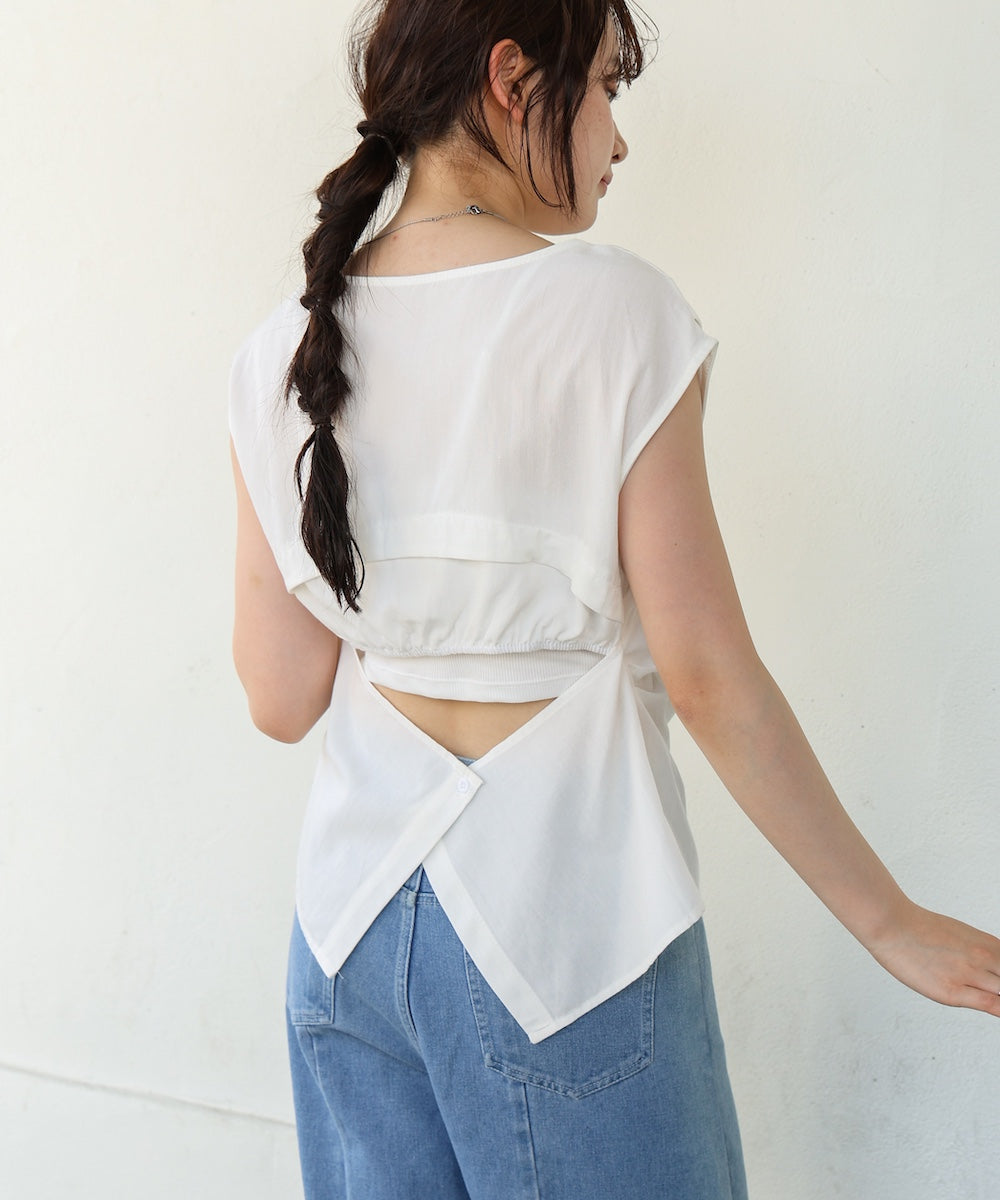バックデザインノースリーブブラウス