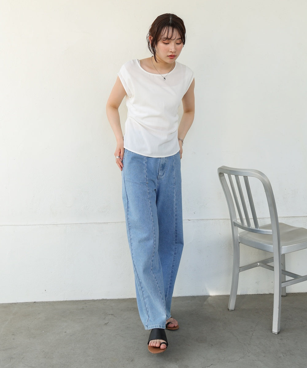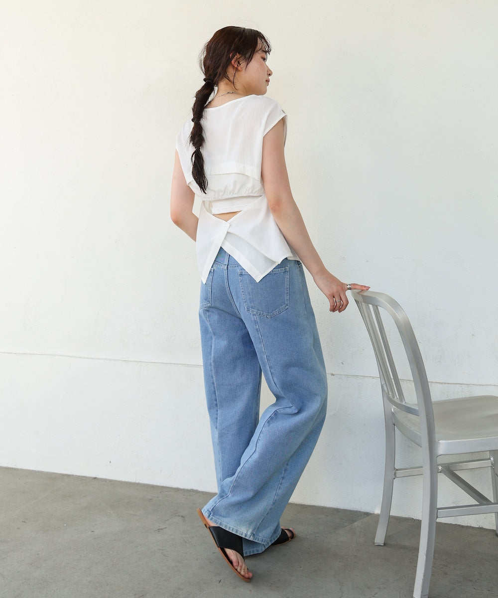 一枚でのデニムやスラックス合わせははもちろん、インナーにキャミやシアートップスを重ねたり、カーディガンのインナーとして着てもさりげないバックデザインが映えるので、レイヤードにもおすすめです。