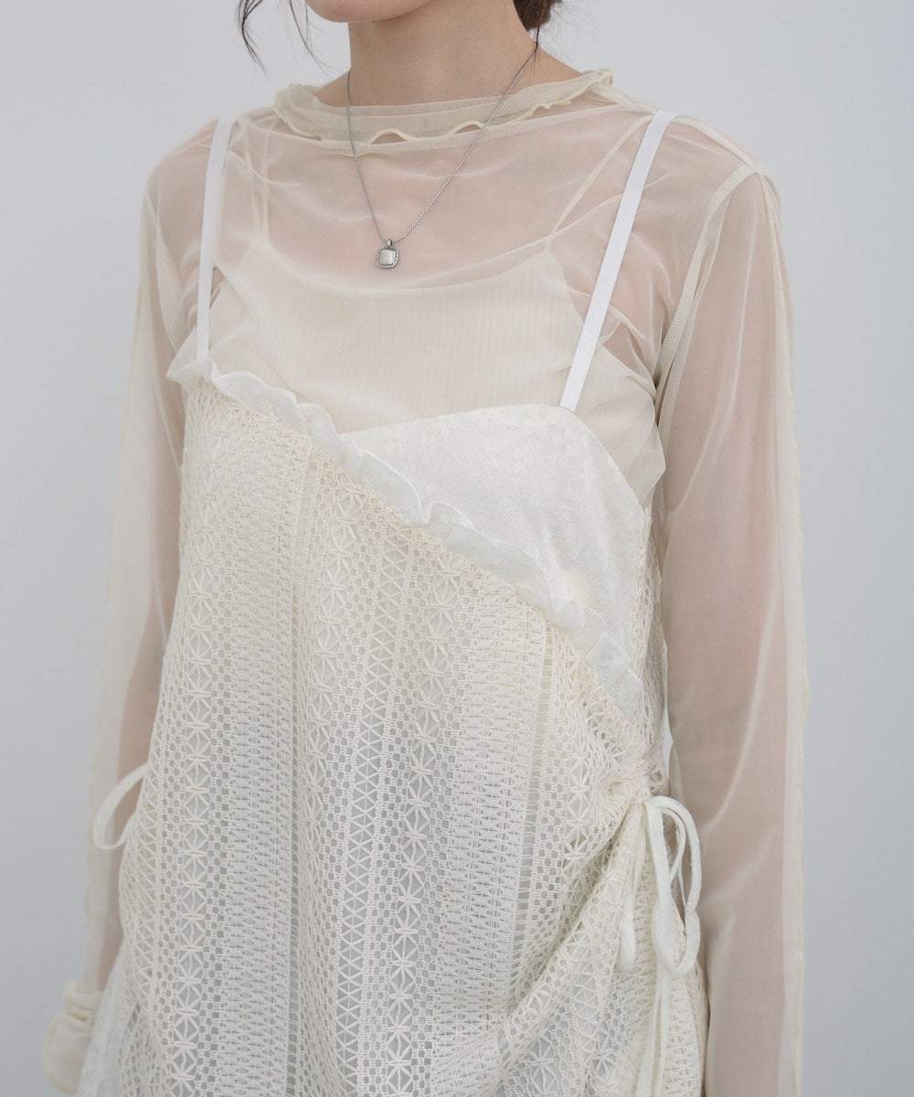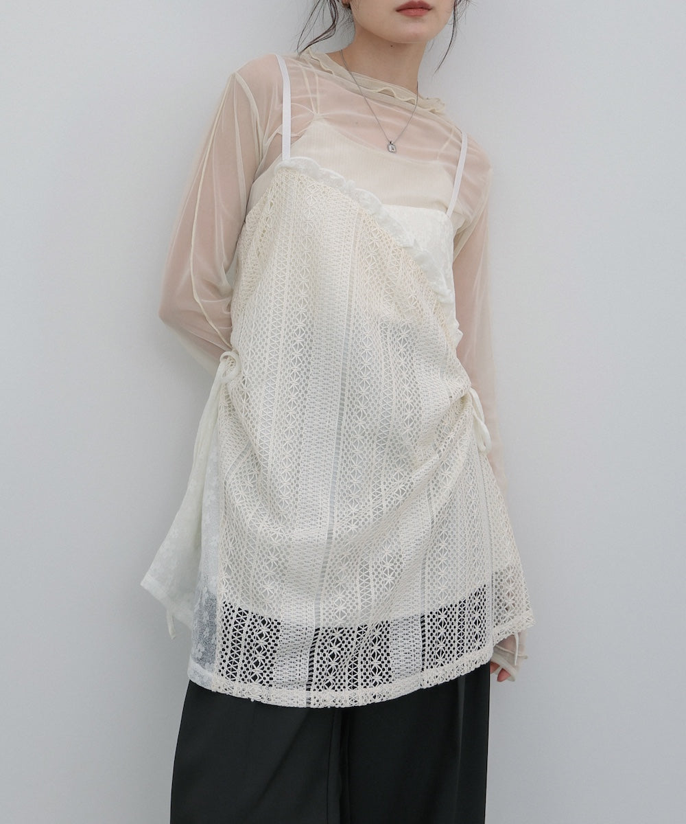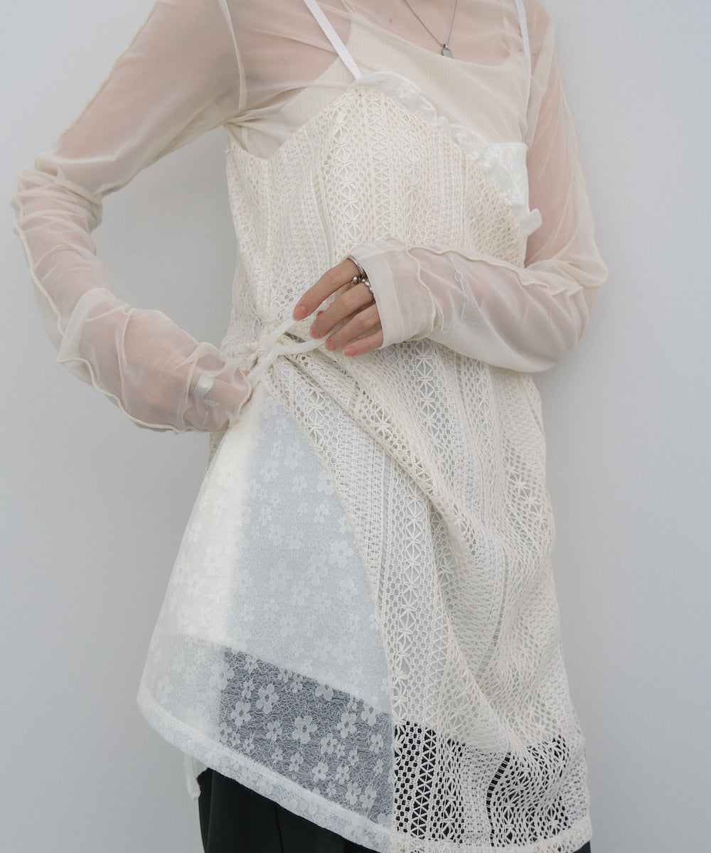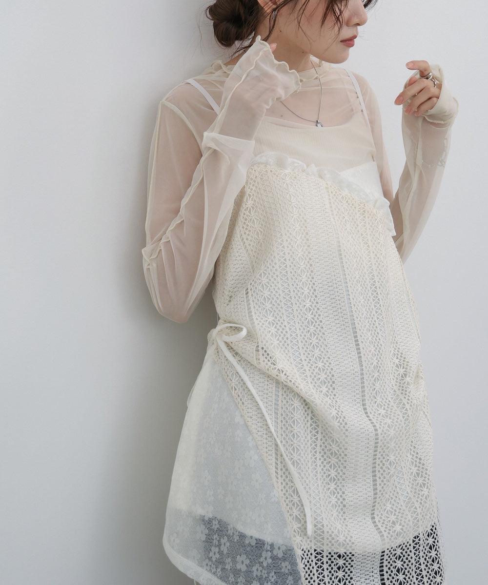 レースミニワンピが登場です!お花柄模様が部分部分で違っていながらも全体的にまとまり感のあるフェミニンなワンピースになっています。デニムと合わせてチュニックとしてもお使いいただけます。サイドはシャーリングになっているのでリボンでお好きな具合に調整していただけます。上部分にはレースもついていてよりトレンドライクなワンピに仕上がりました。生地感も含めて年中使っていただけるタイムレスなアイテムです。