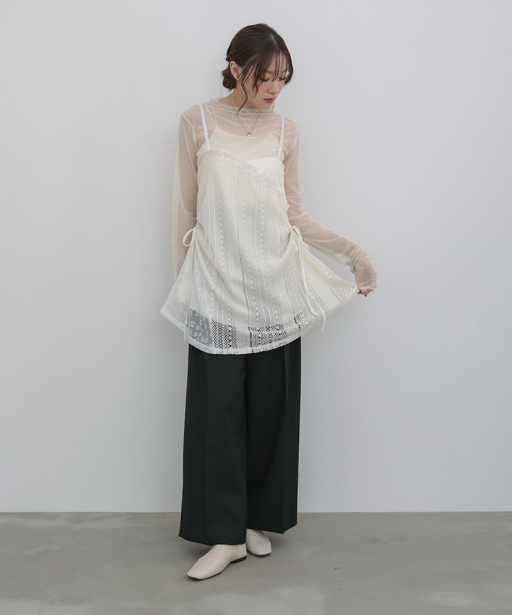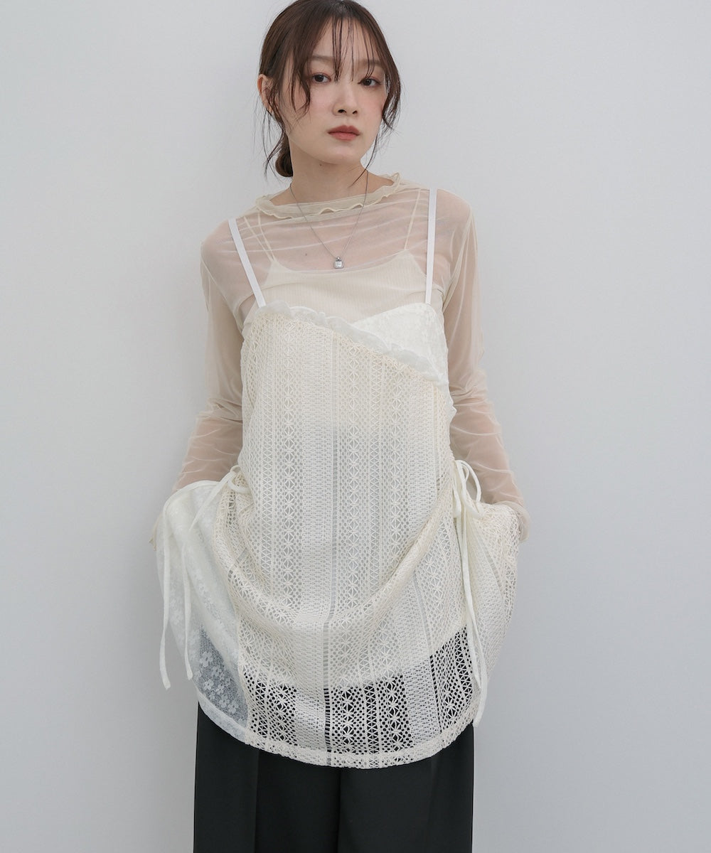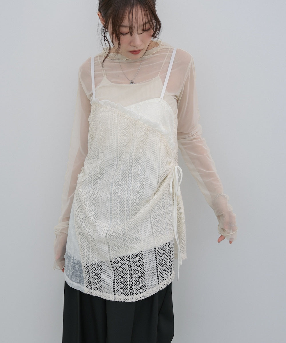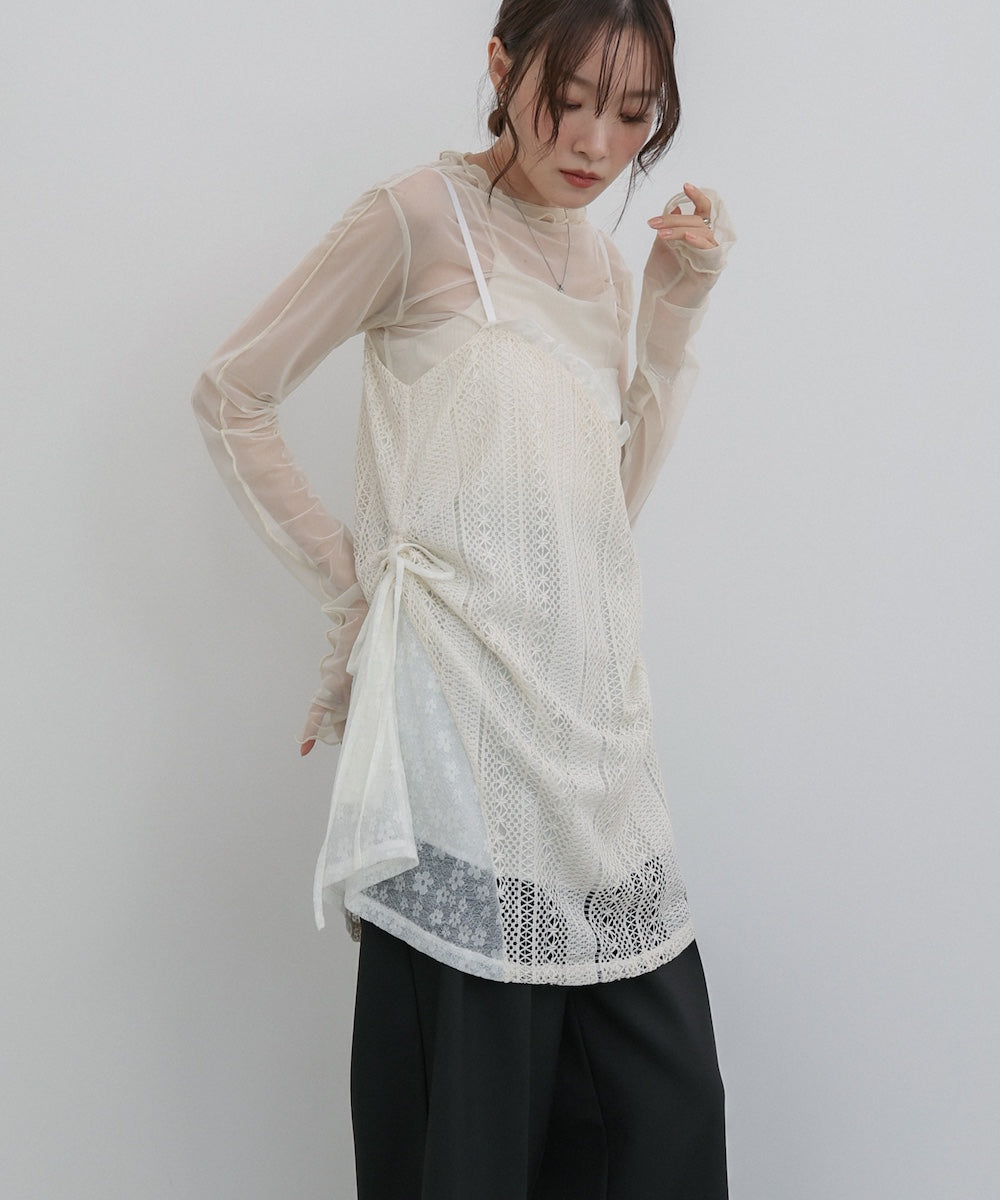 レースミニワンピが登場です!お花柄模様が部分部分で違っていながらも全体的にまとまり感のあるフェミニンなワンピースになっています。デニムと合わせてチュニックとしてもお使いいただけます。サイドはシャーリングになっているのでリボンでお好きな具合に調整していただけます。上部分にはレースもついていてよりトレンドライクなワンピに仕上がりました。生地感も含めて年中使っていただけるタイムレスなアイテムです。