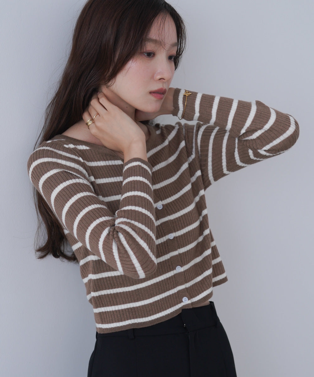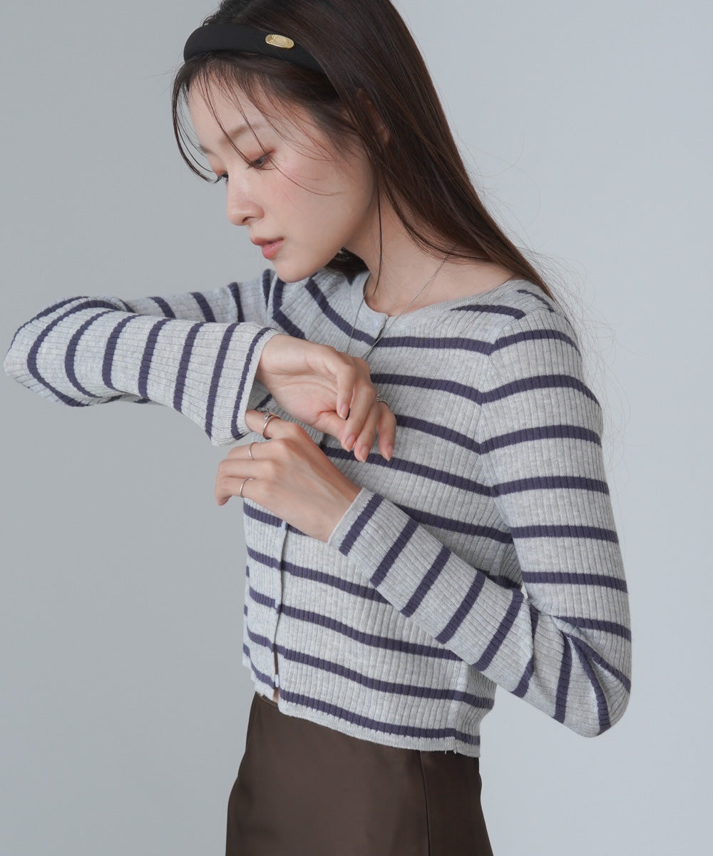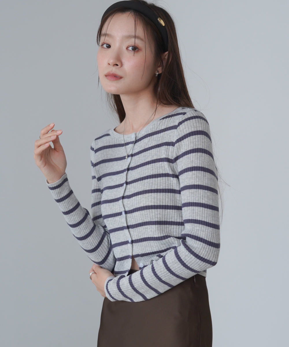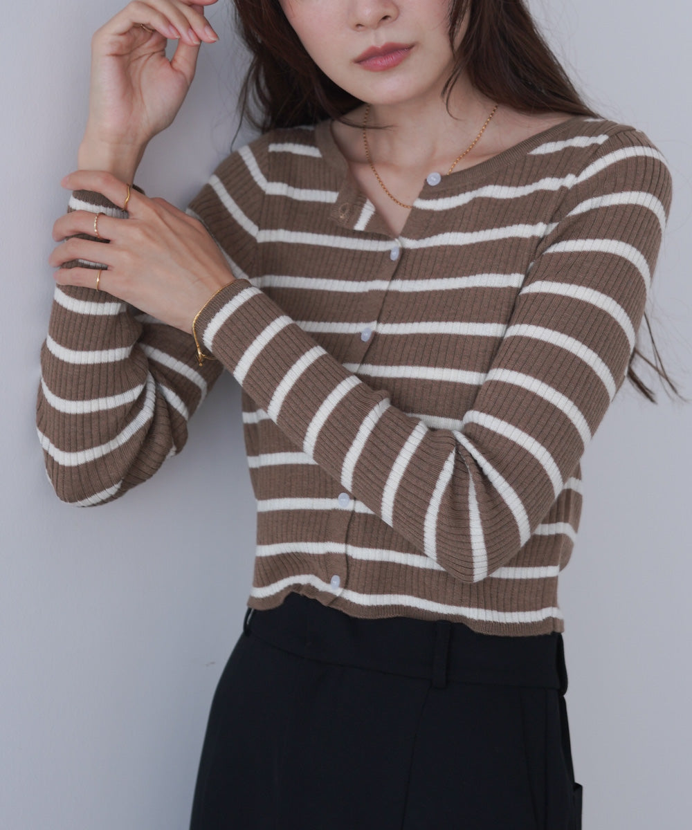 軽やかな透け感が魅力のシアーボーダーニットカーディガン。ショート丈のバランス感がトレンドライクで、自然とスタイルアップ効果を演出してくれます。シアーなボーダー編地が女性らしい抜け感をプラスし、羽織るだけでこなれた印象に。カラーは柔らかい雰囲気のグレー、落ち着きのあるチャコール、上品なベージュの3色展開。季節の変わり目やレイヤードスタイルにぴったりの一枚です。