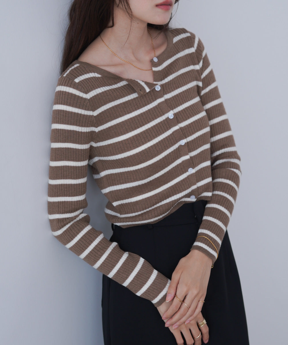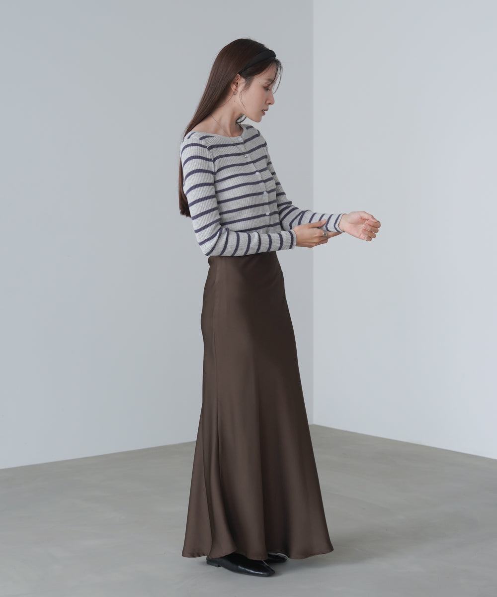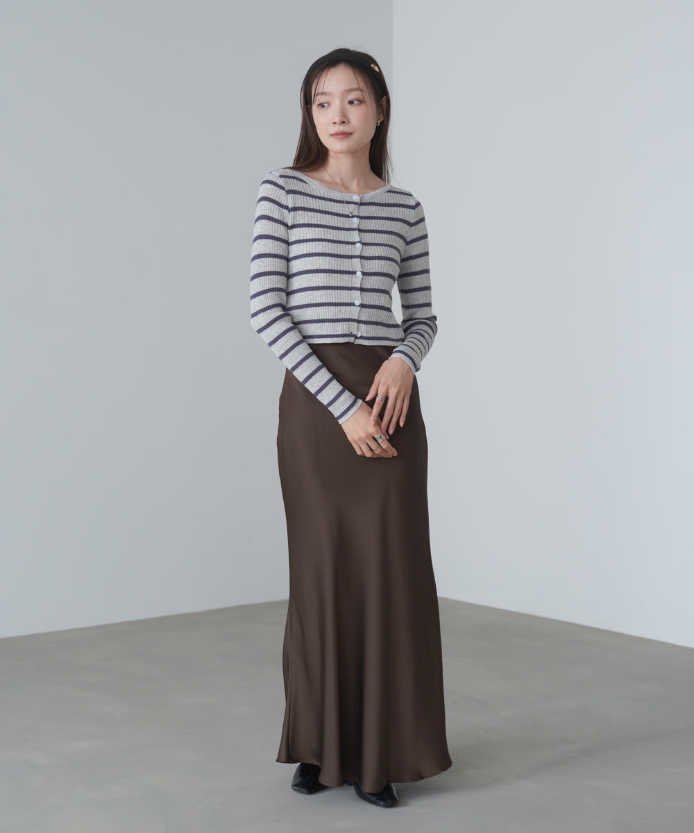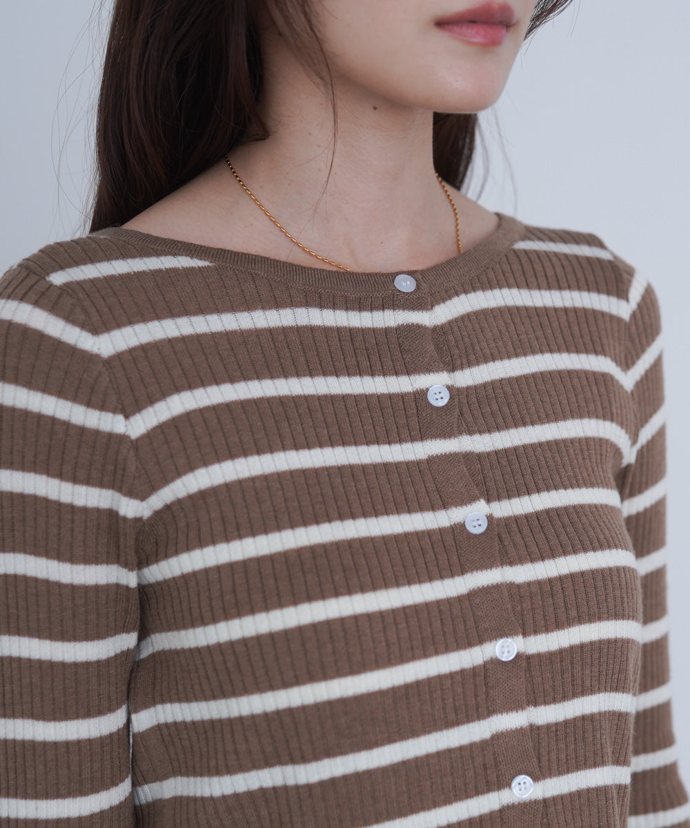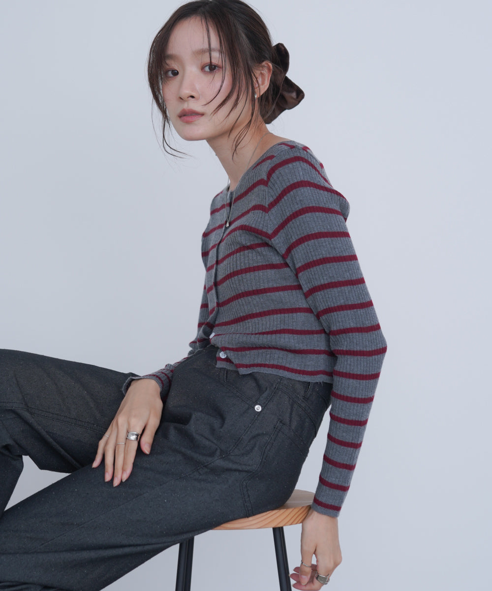 軽やかな透け感が魅力のシアーボーダーニットカーディガン。ショート丈のバランス感がトレンドライクで、自然とスタイルアップ効果を演出してくれます。シアーなボーダー編地が女性らしい抜け感をプラスし、羽織るだけでこなれた印象に。カラーは柔らかい雰囲気のグレー、落ち着きのあるチャコール、上品なベージュの3色展開。季節の変わり目やレイヤードスタイルにぴったりの一枚です。