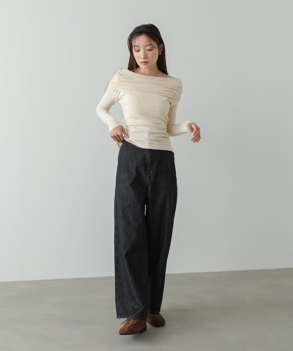 【選べるネック】シアー使いリブニットトップス