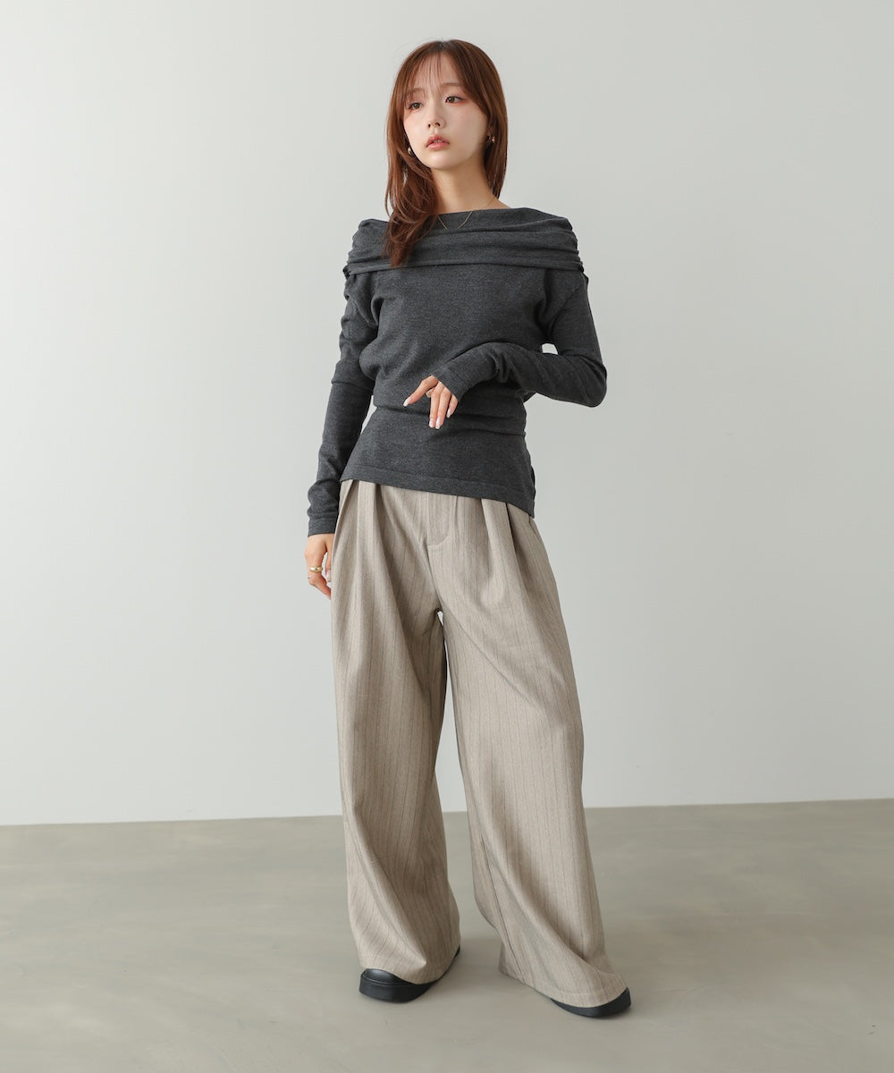 襟付きリブ切替サイドドロストニットトップス