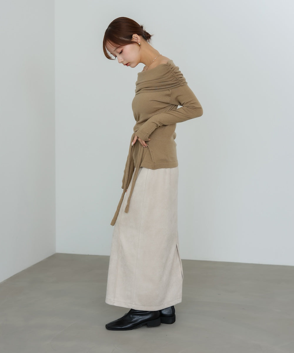 柔らかさとあたたかみを兼ね備えており、秋冬シーズンの装いにぴったりです。しなやかな質感で、女性らしいフォルムを美しく表現してくれます。