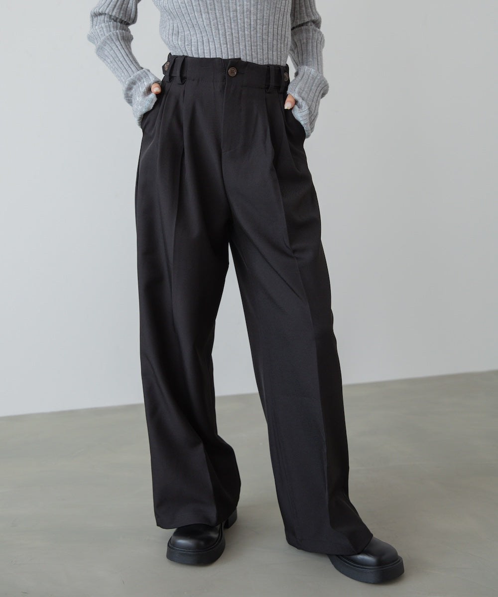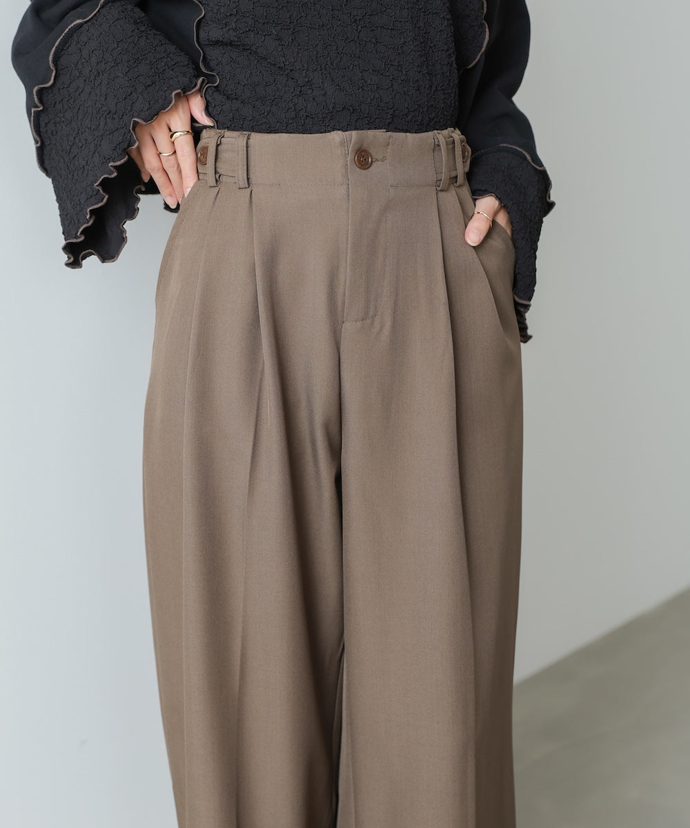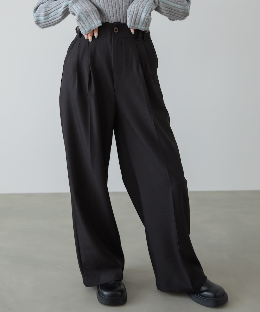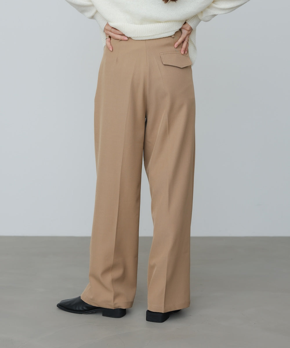 ほどよくゆとりを持たせたシルエットが魅力のツータックパンツ。フロントのタックが立体感を生み出し、腰まわりをすっきりと見せながら美しいラインを演出します。S・Mの2サイズ展開で、自分に合ったフィット感を選べるのも嬉しいポイント。ベージュ・ブラック・ブラウンの落ち着いたカラー展開で、オンオフ問わず活躍するアイテムです。