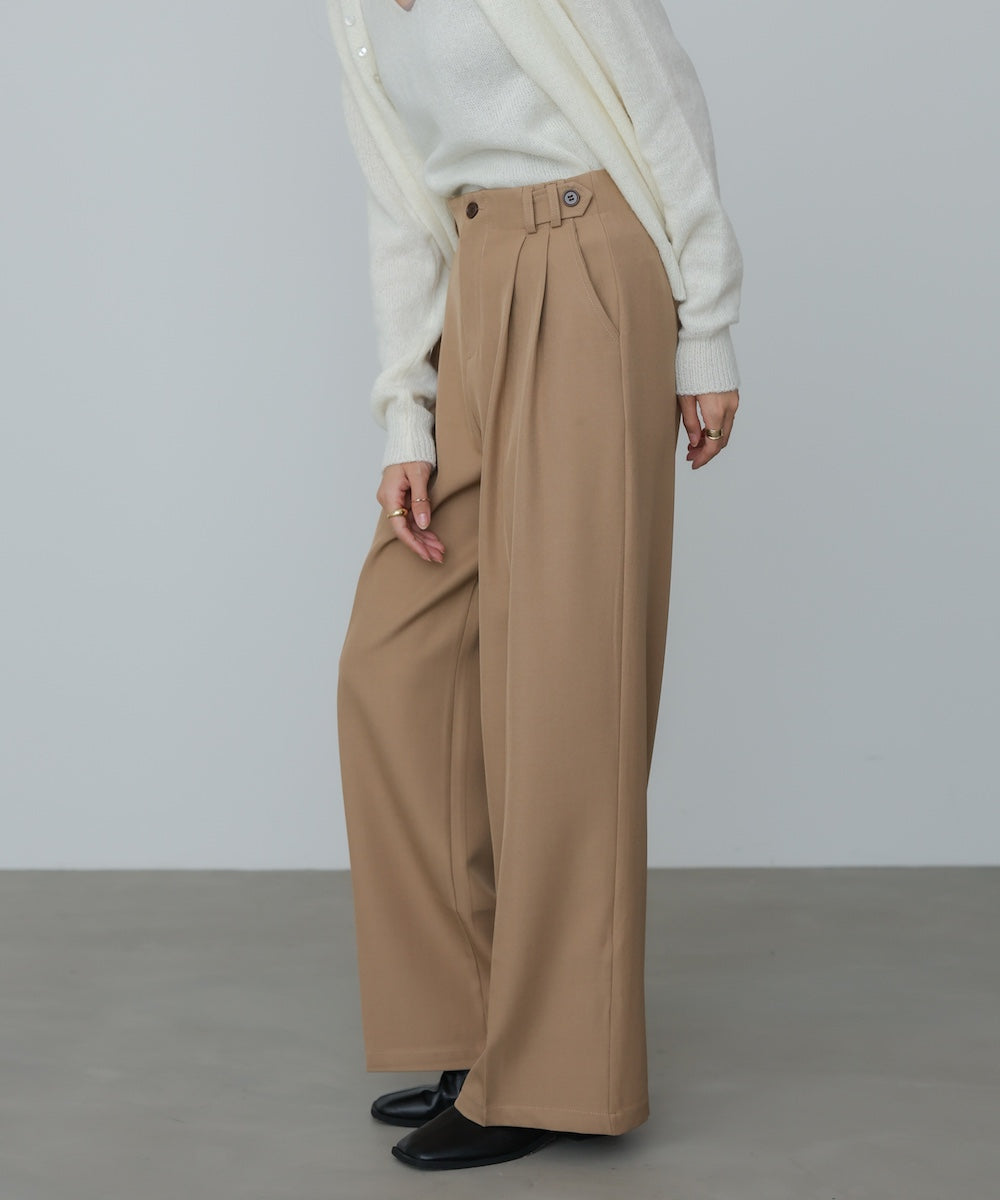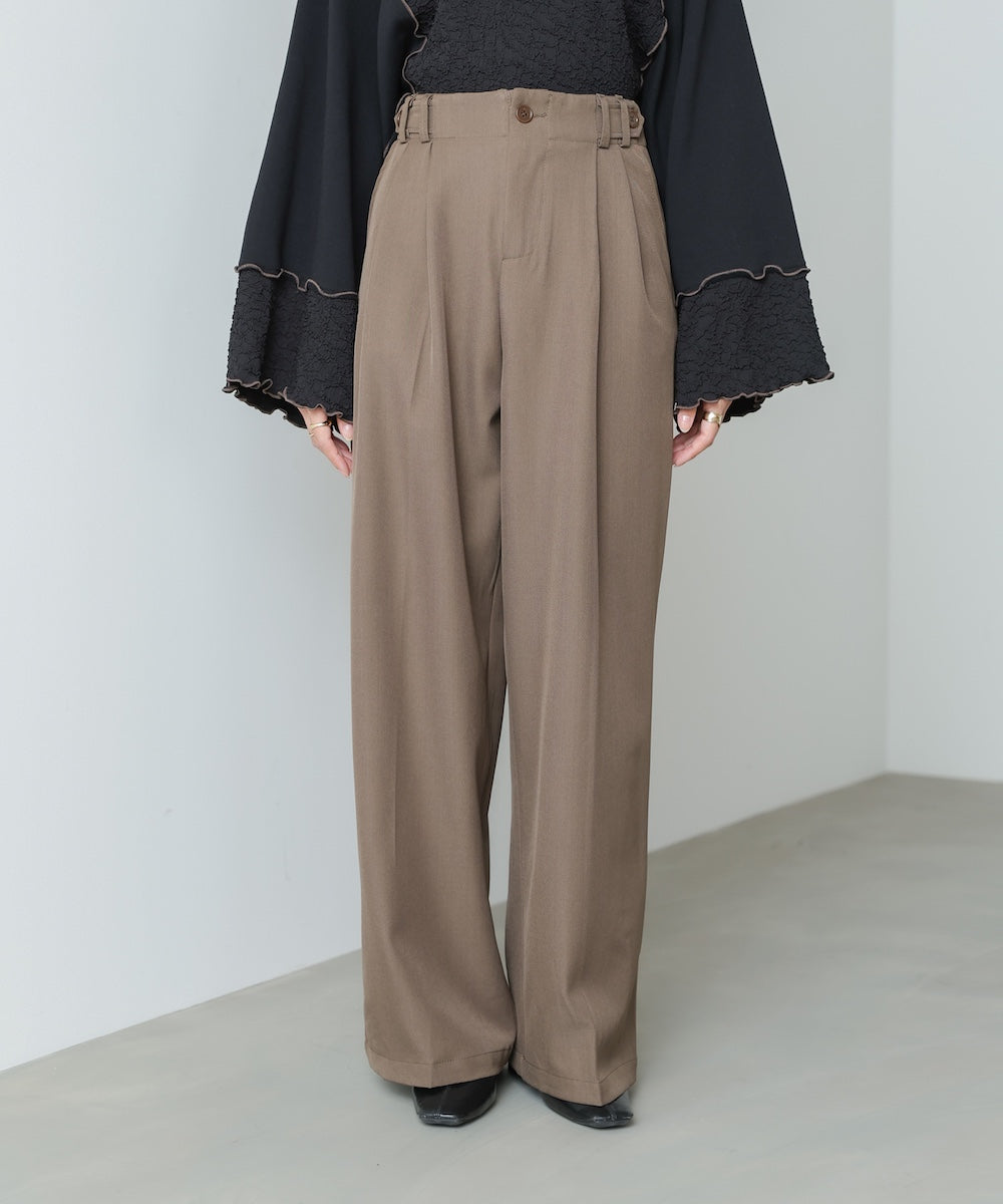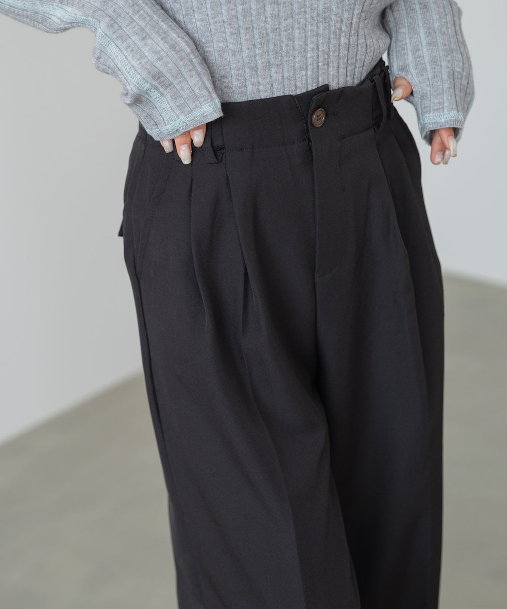 ほどよくゆとりを持たせたシルエットが魅力のツータックパンツ。フロントのタックが立体感を生み出し、腰まわりをすっきりと見せながら美しいラインを演出します。S・Mの2サイズ展開で、自分に合ったフィット感を選べるのも嬉しいポイント。ベージュ・ブラック・ブラウンの落ち着いたカラー展開で、オンオフ問わず活躍するアイテムです。