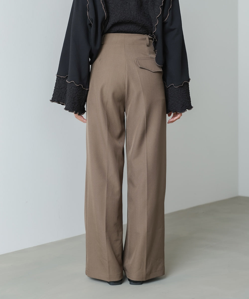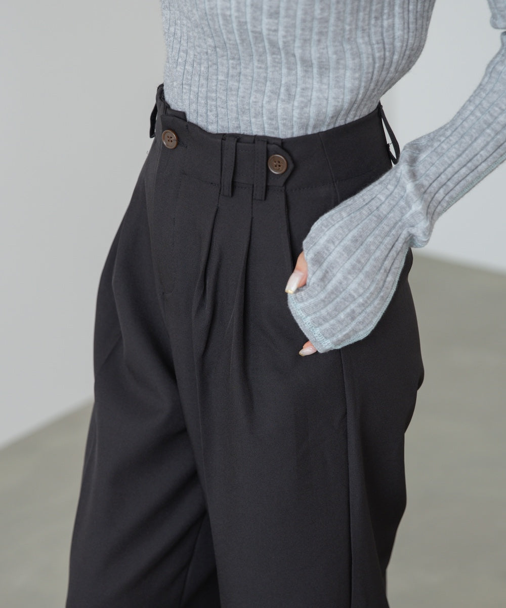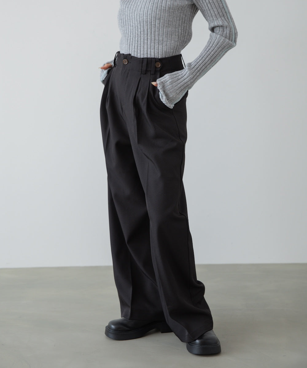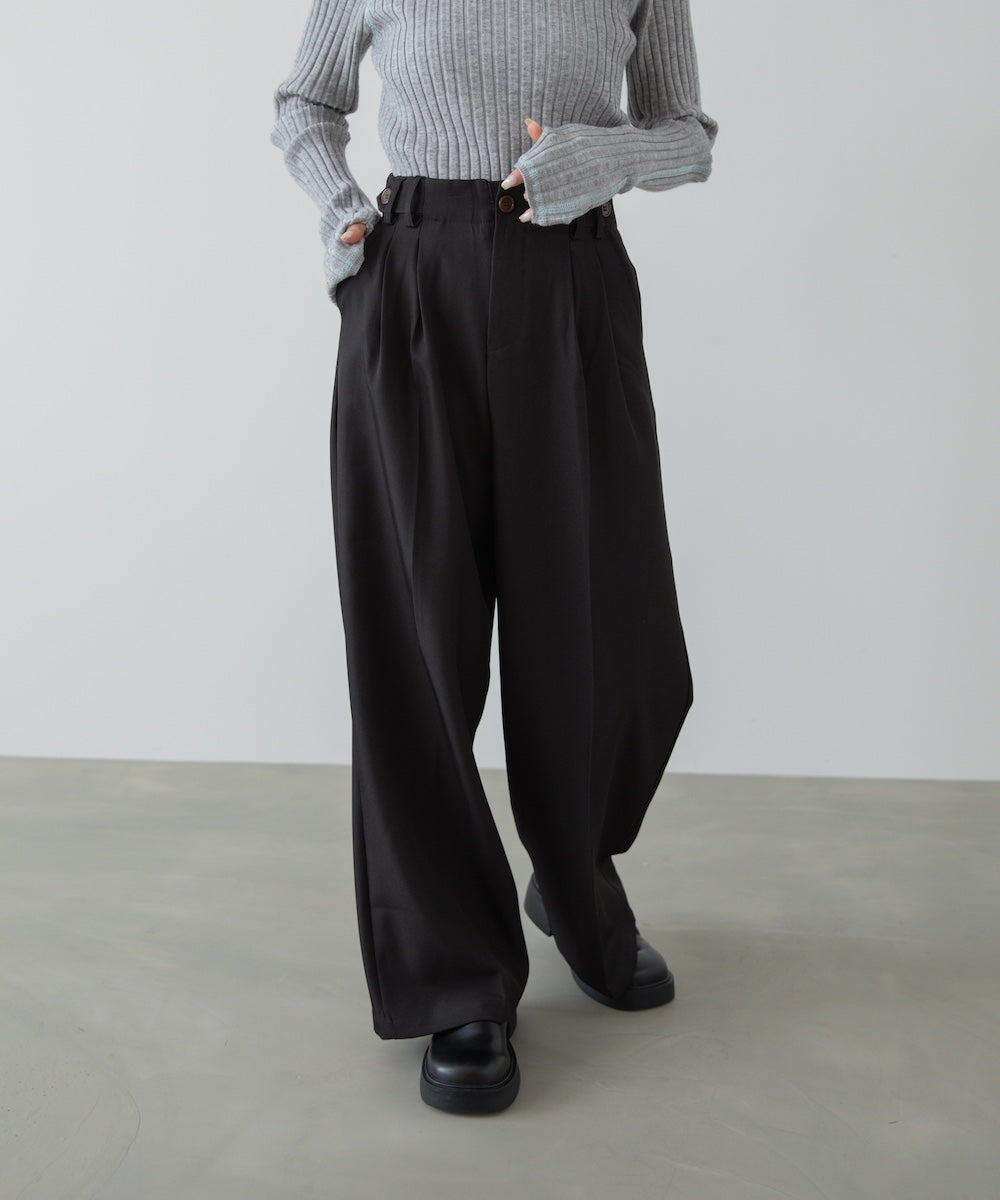 ほどよくゆとりを持たせたシルエットが魅力のツータックパンツ。フロントのタックが立体感を生み出し、腰まわりをすっきりと見せながら美しいラインを演出します。S・Mの2サイズ展開で、自分に合ったフィット感を選べるのも嬉しいポイント。ベージュ・ブラック・ブラウンの落ち着いたカラー展開で、オンオフ問わず活躍するアイテムです。